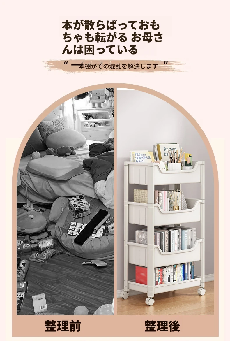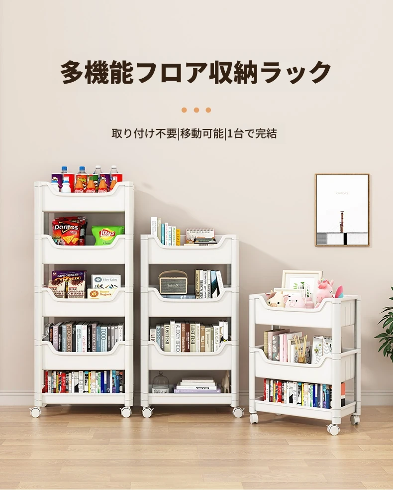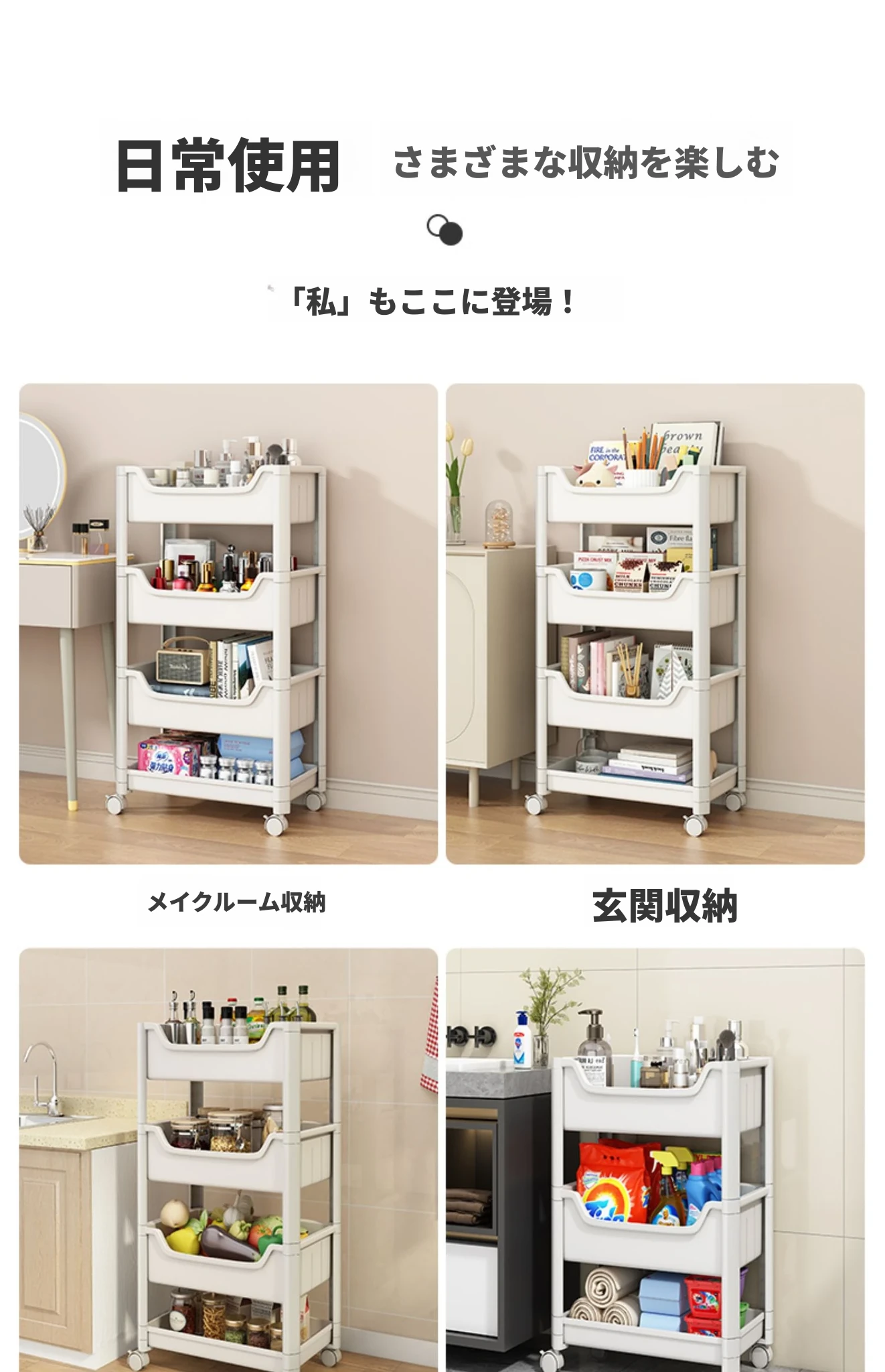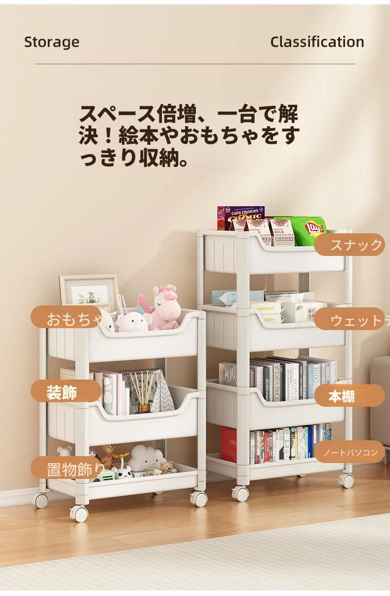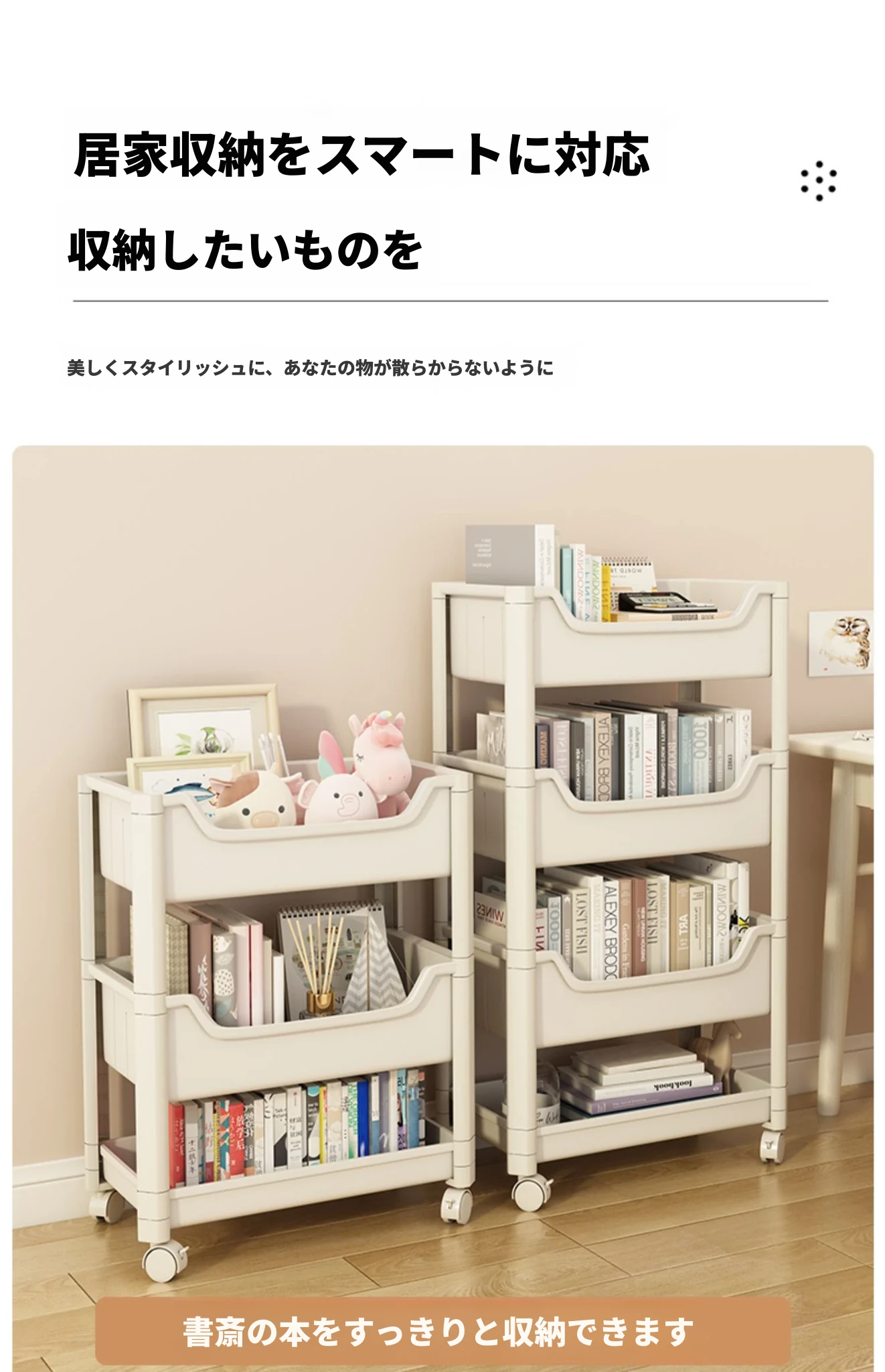 移動式多段ラック!おしゃれなデザインで、デスク周りをスッキリ整理。隙間にぴったりフィットし、収納力抜群。高さ調整可能で、どんな場所でも活躍するマルチ収納ラック!