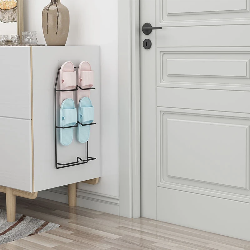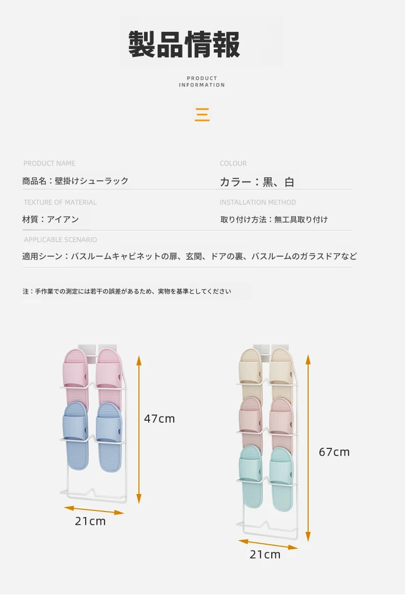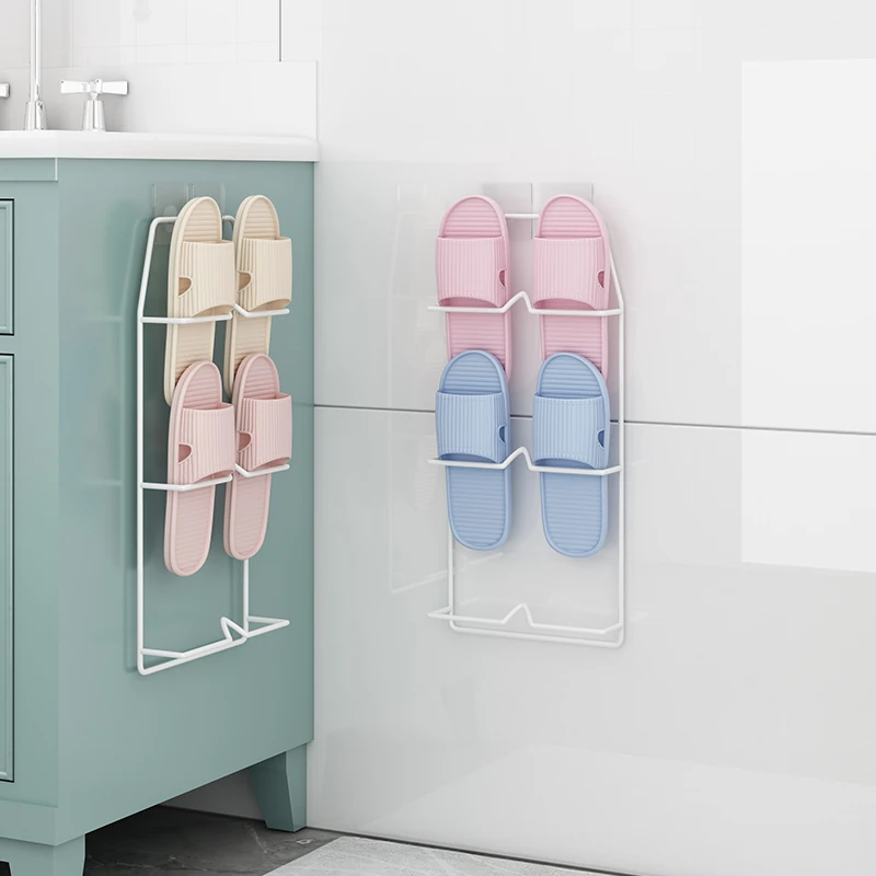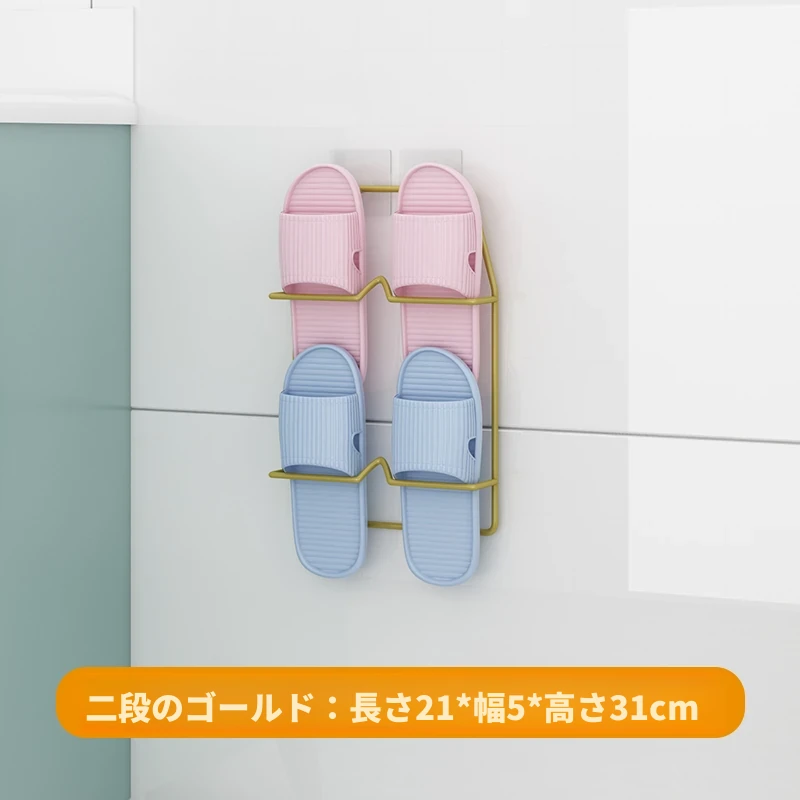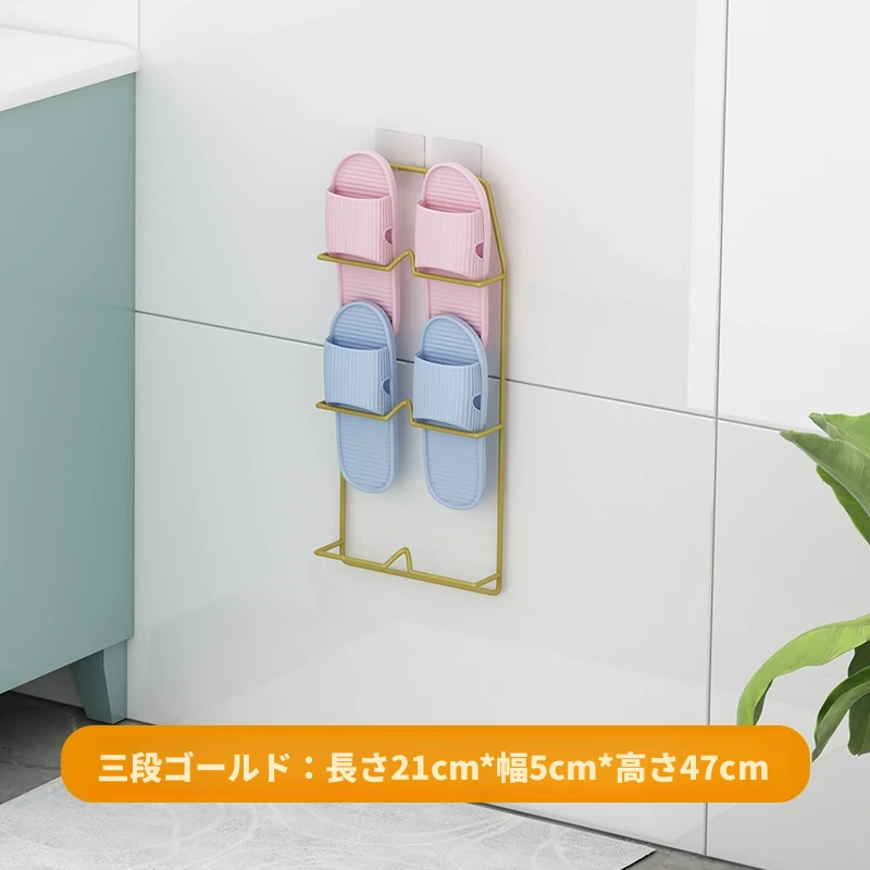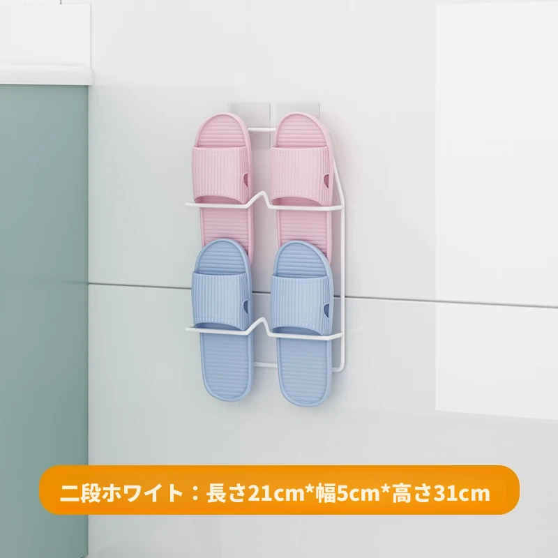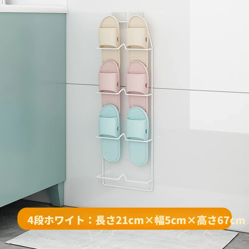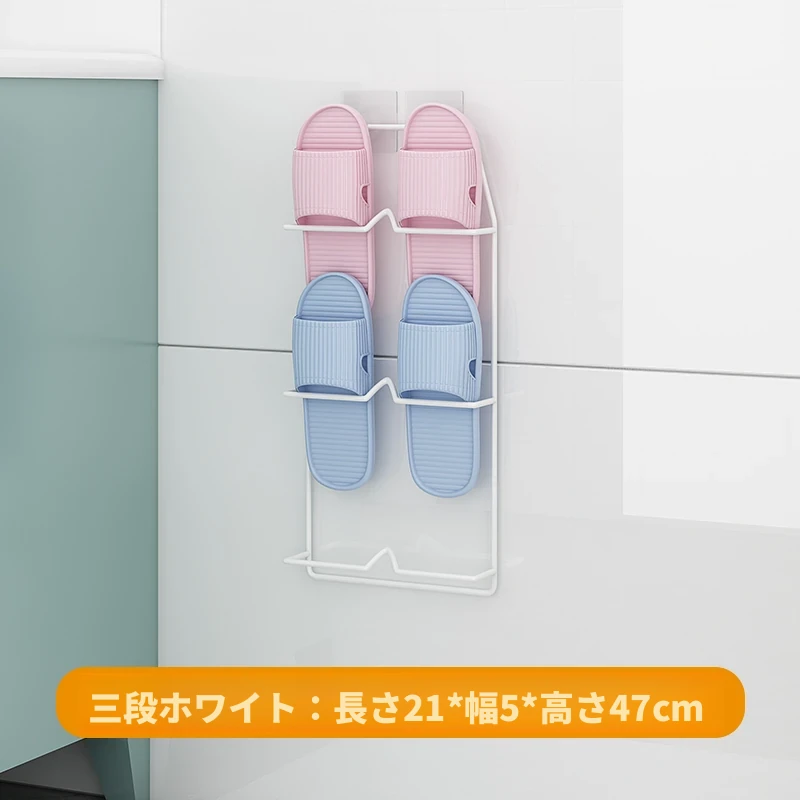 壁掛け式のバスルームスリッパラック - 穴を開けずに取り付け可能!水切り機能付きで、トイレの整理整頓を実現する靴収納の必需品!ドア裏にぴったりフィットし、スペースを有効活用します。