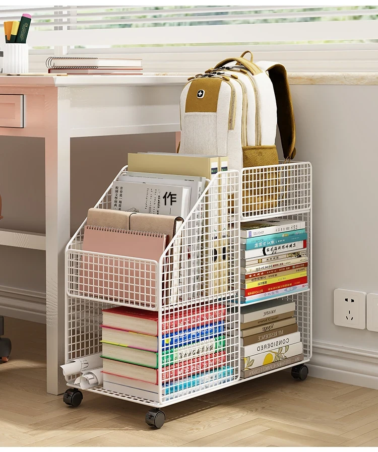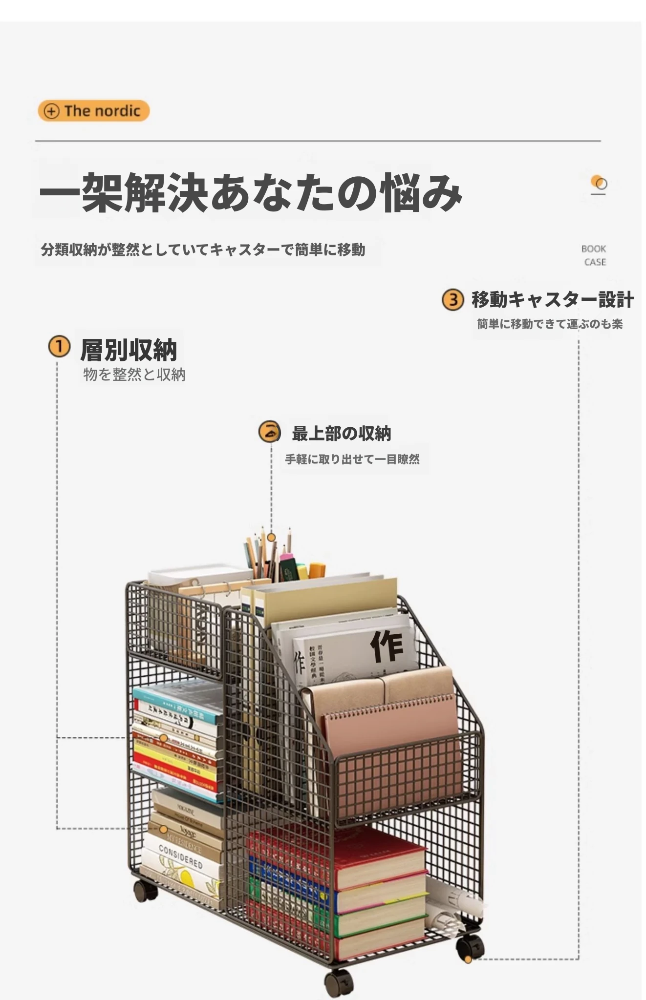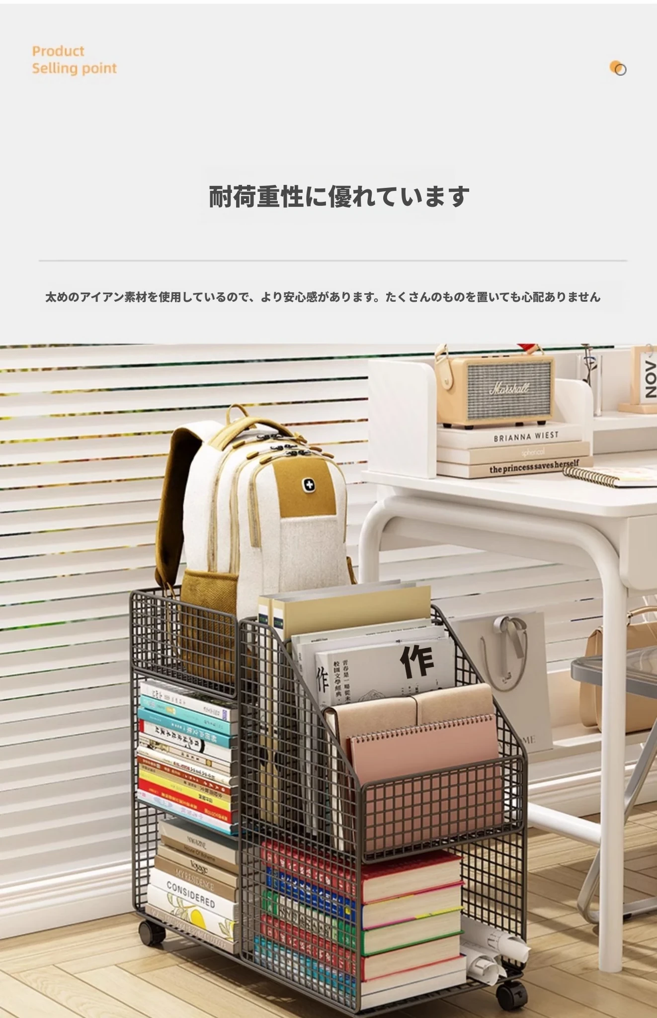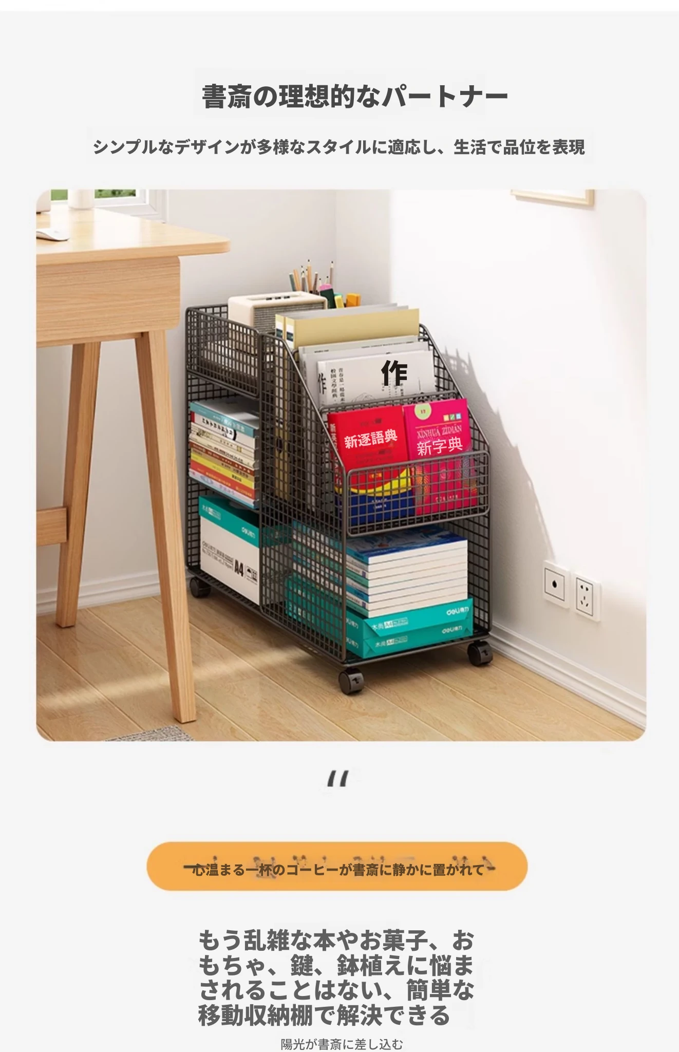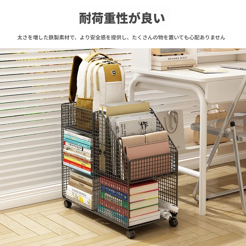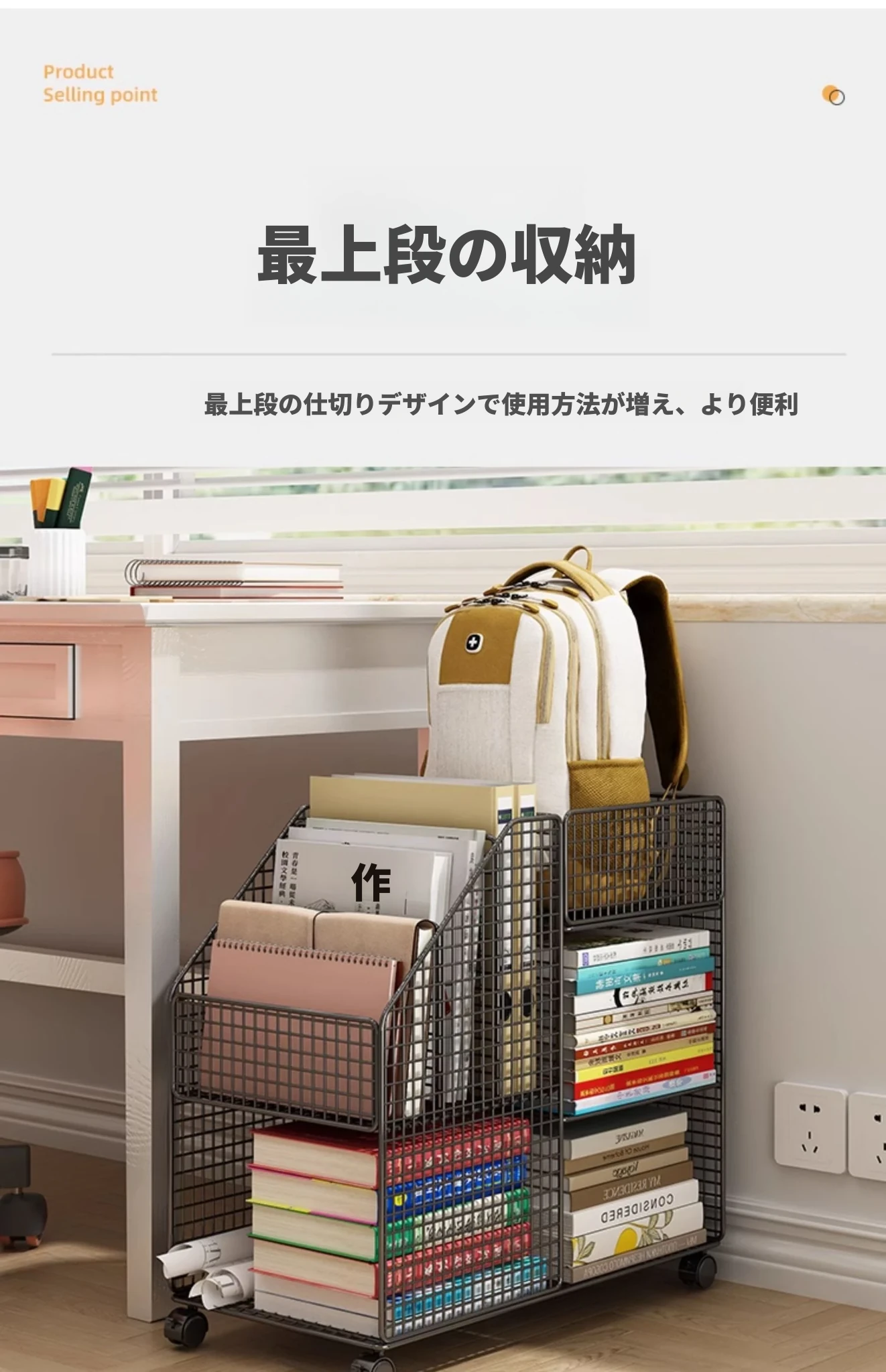 子供向けの簡易移動式ブックシェルフ!オフィスや学習スペースに最適なスタンド式収納ラック。ファイルや本をすっきり整理!おしゃれで実用的なデザインで、どこにでも置ける便利さを実感!