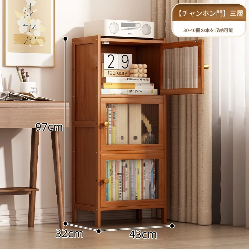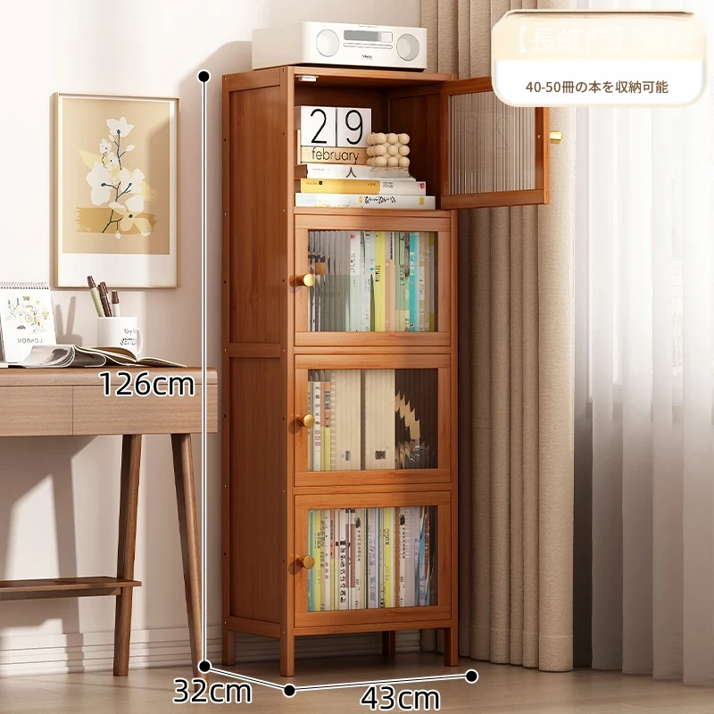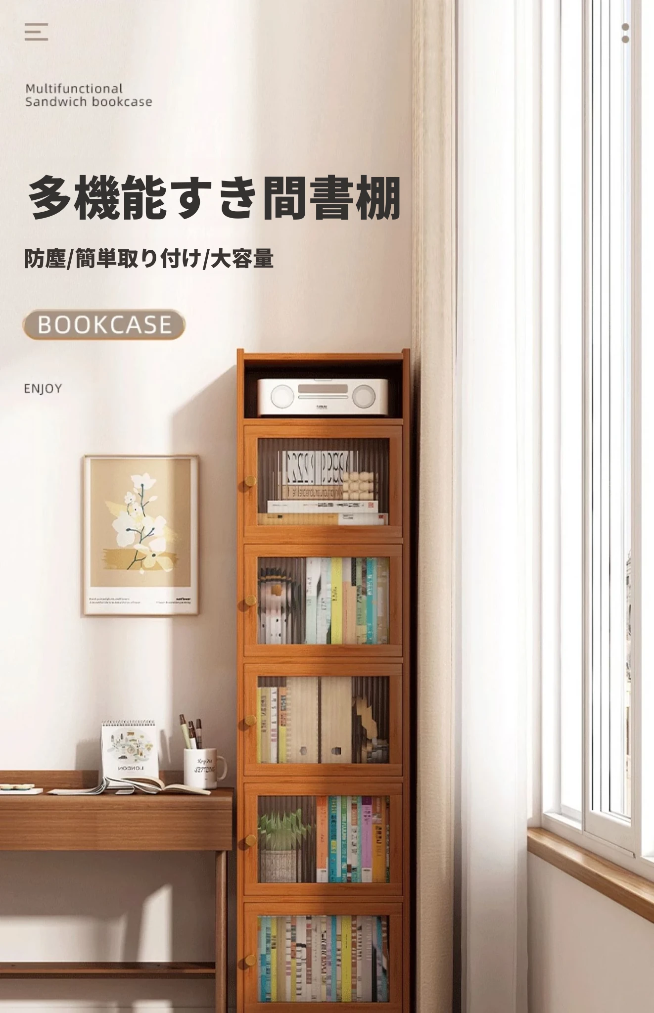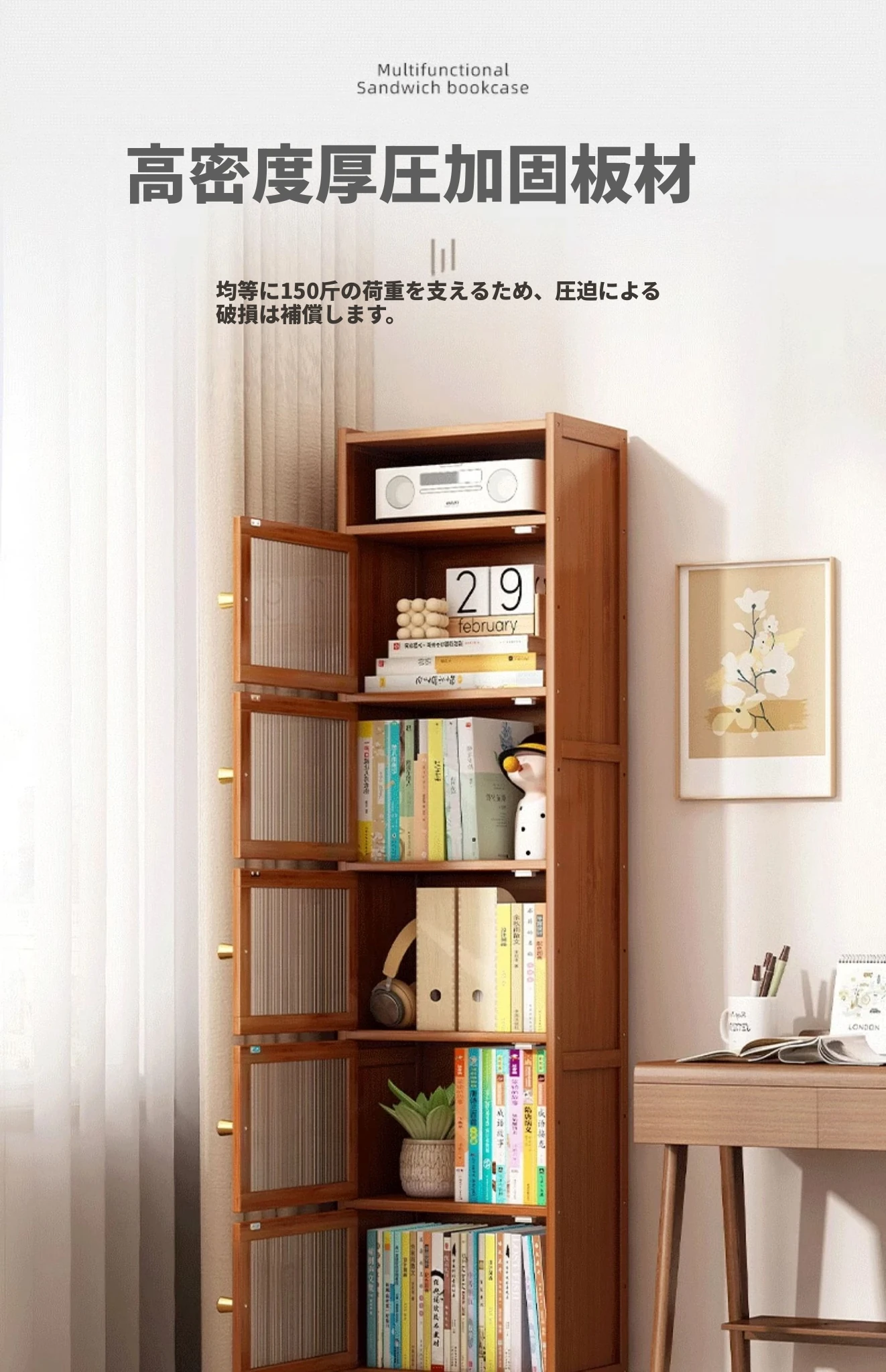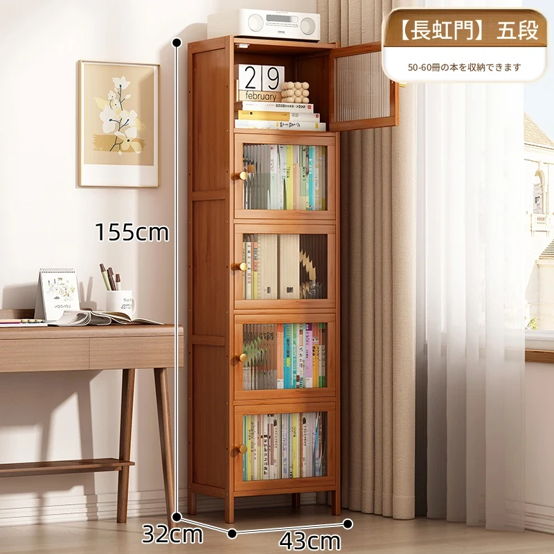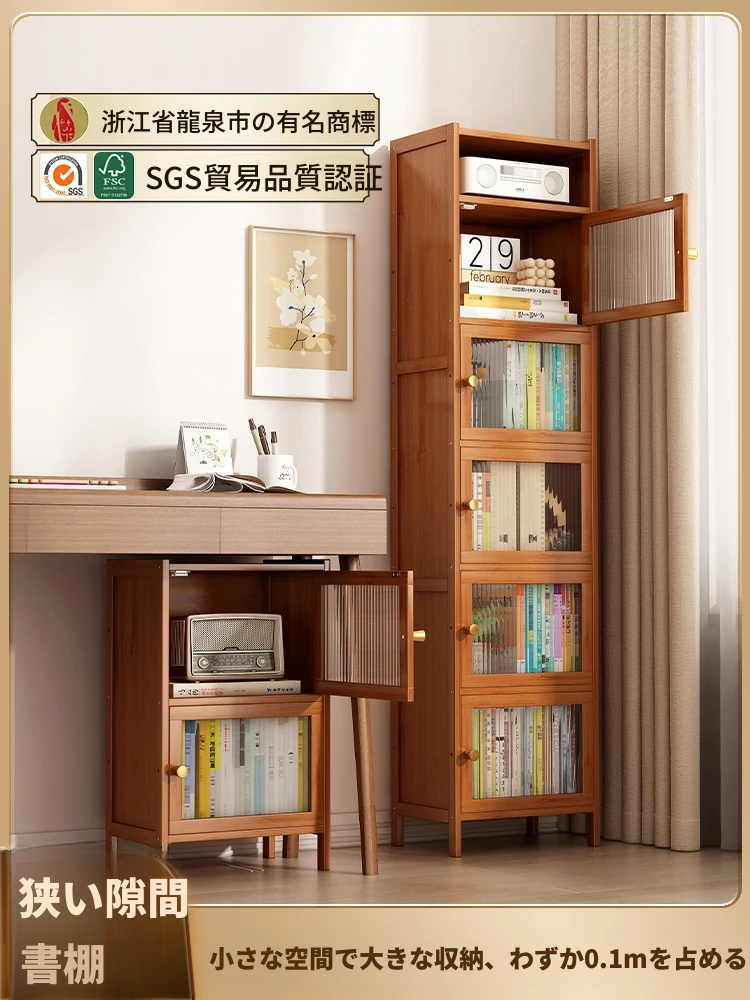 壁際コーナー立て棚 書棚 扉付き 防塵 高さのあるスリムな木製書架 収納キャビネット 一体型フロア置き棚 - スペースを有効活用し、おしゃれなインテリアを実現!