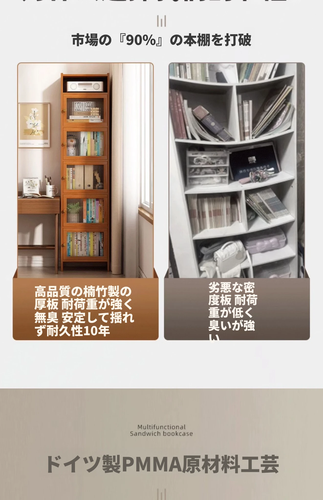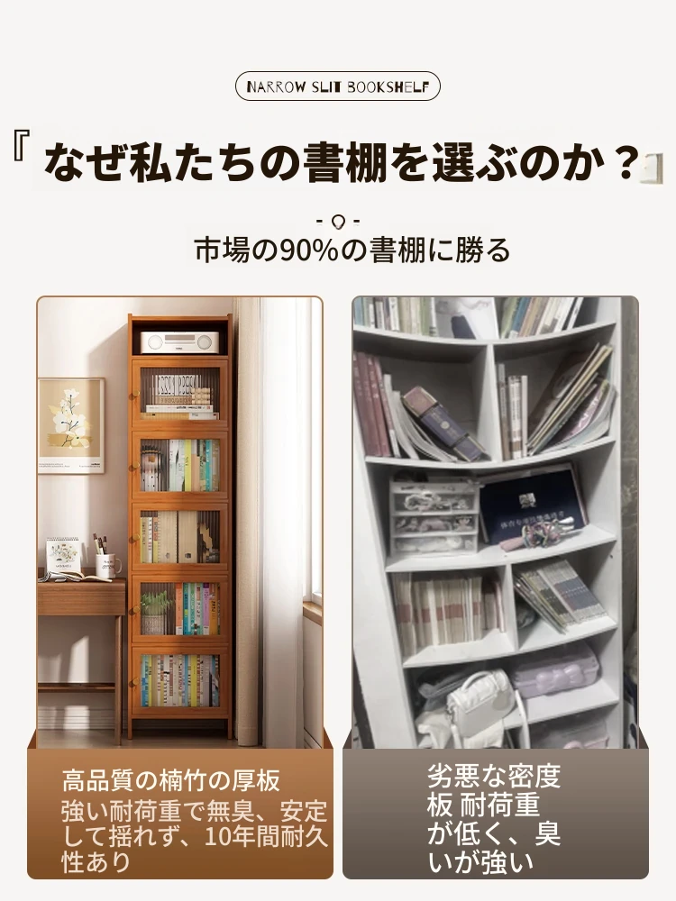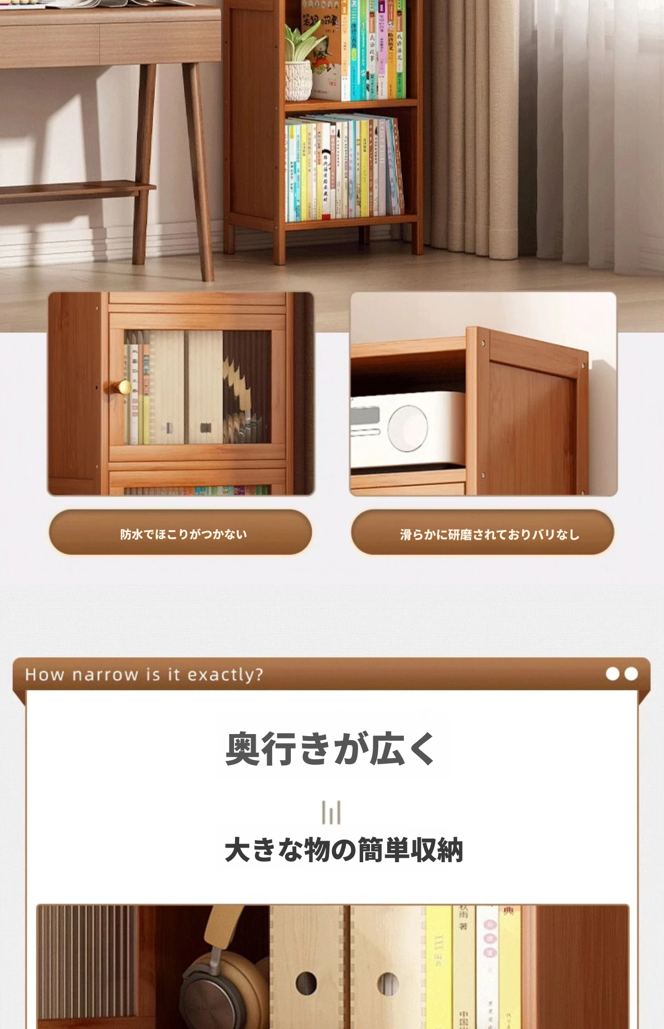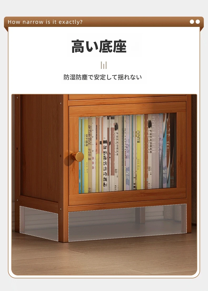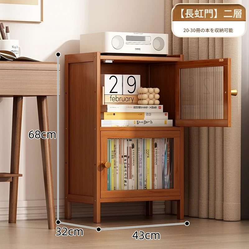 壁際コーナー立て棚 書棚 扉付き 防塵 高さのあるスリムな木製書架 収納キャビネット 一体型フロア置き棚 - スペースを有効活用し、おしゃれなインテリアを実現!