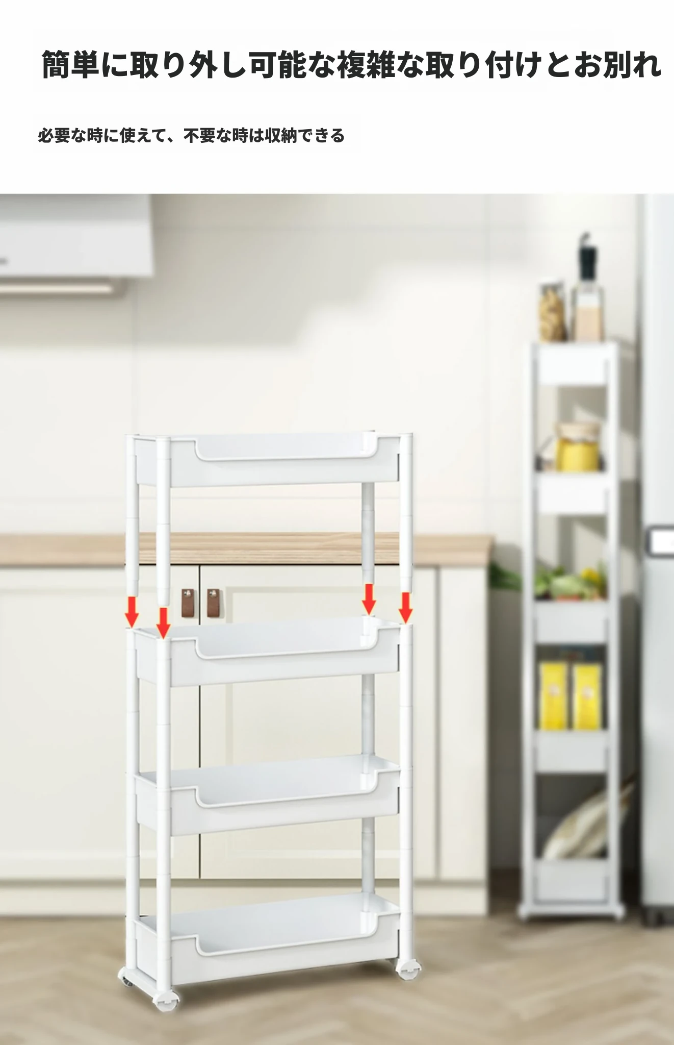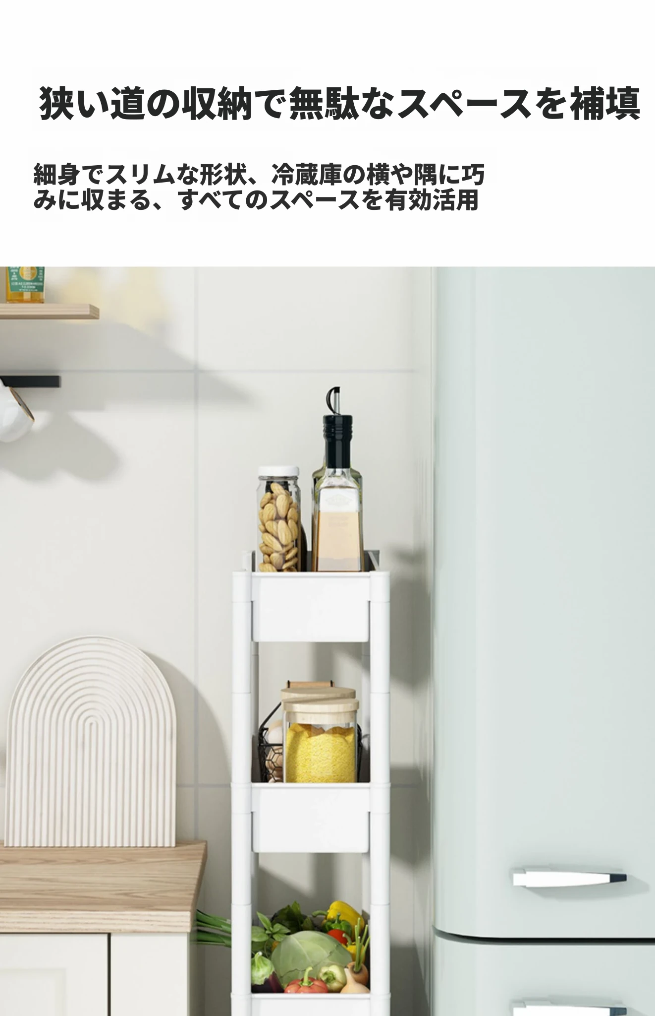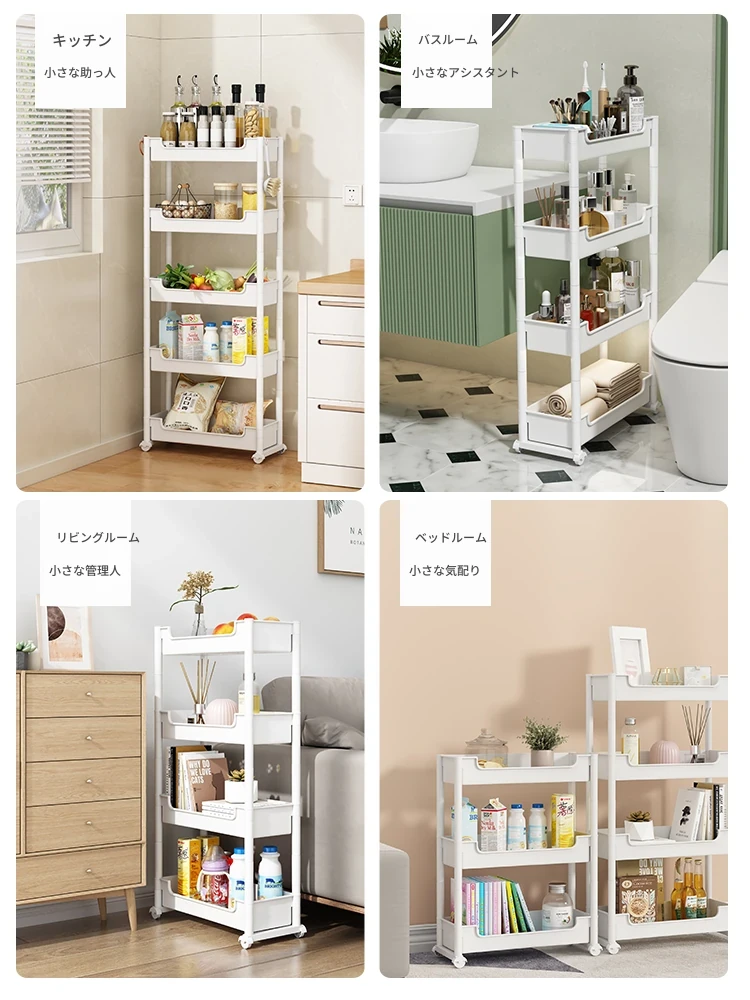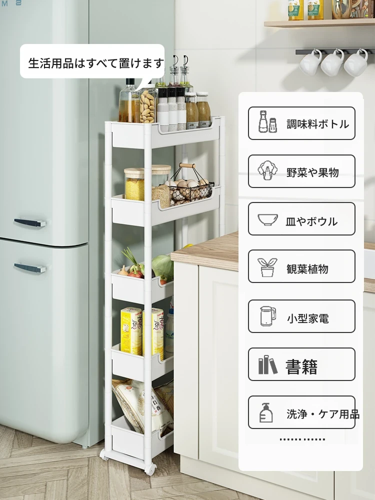 キッチンの隙間にぴったり!超スリムな収納ラック - 冷蔵庫やトイレの隙間を有効活用して、すっきり整理整頓!使い勝手抜群のキャスター付き収納ワゴンで、狭い場所でも使いやすい!