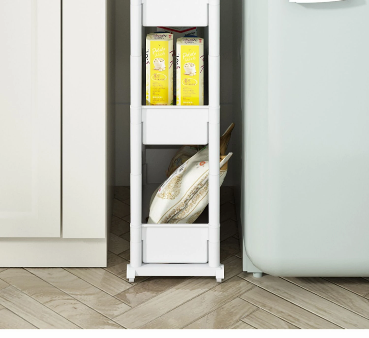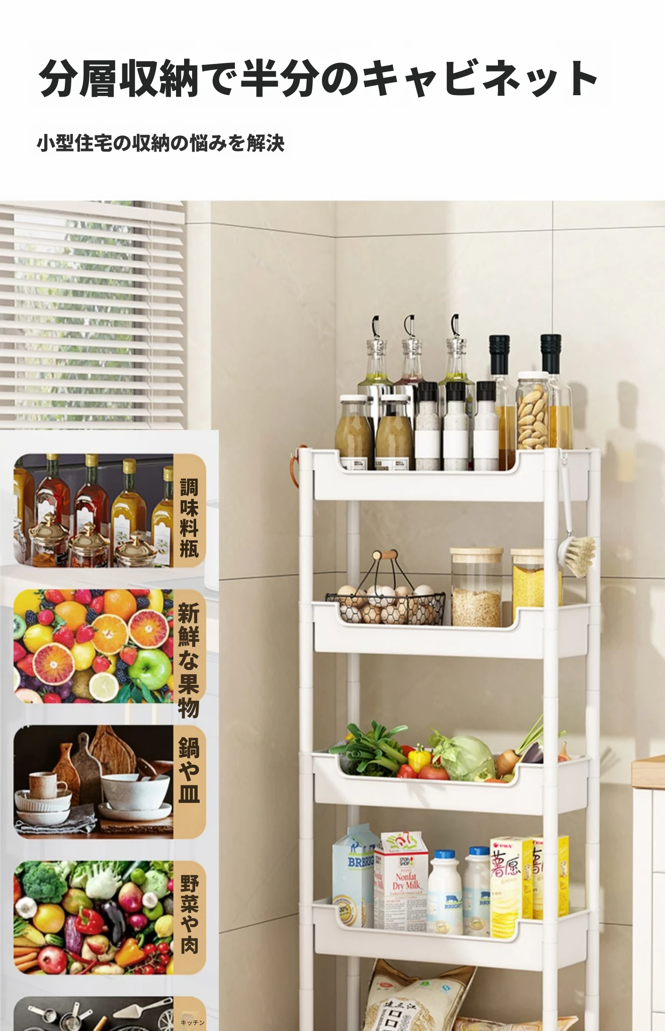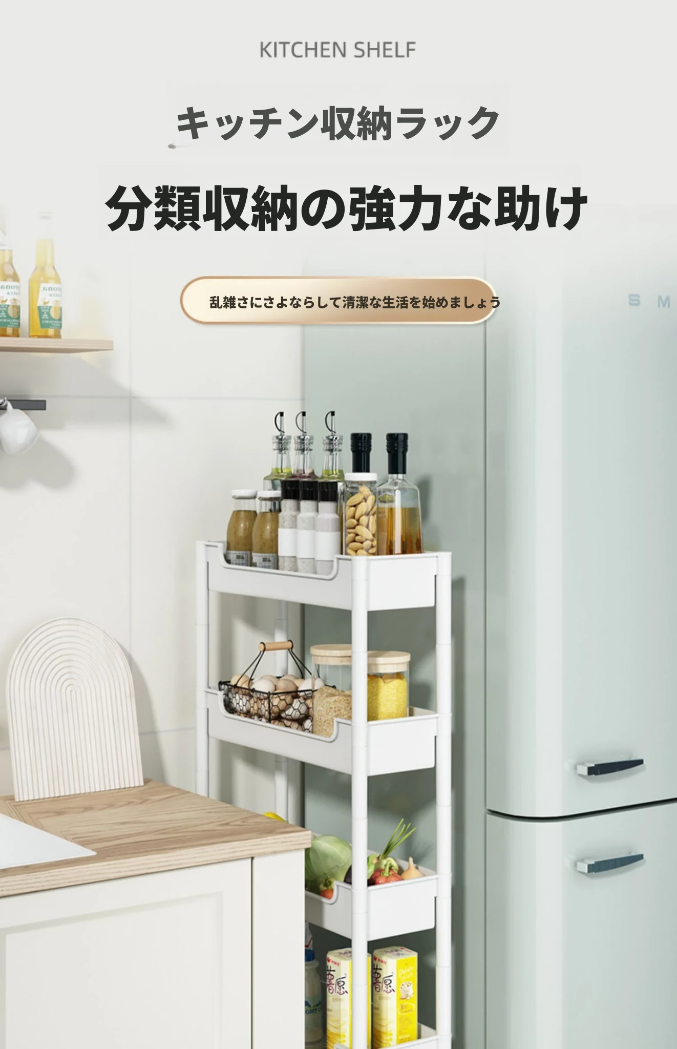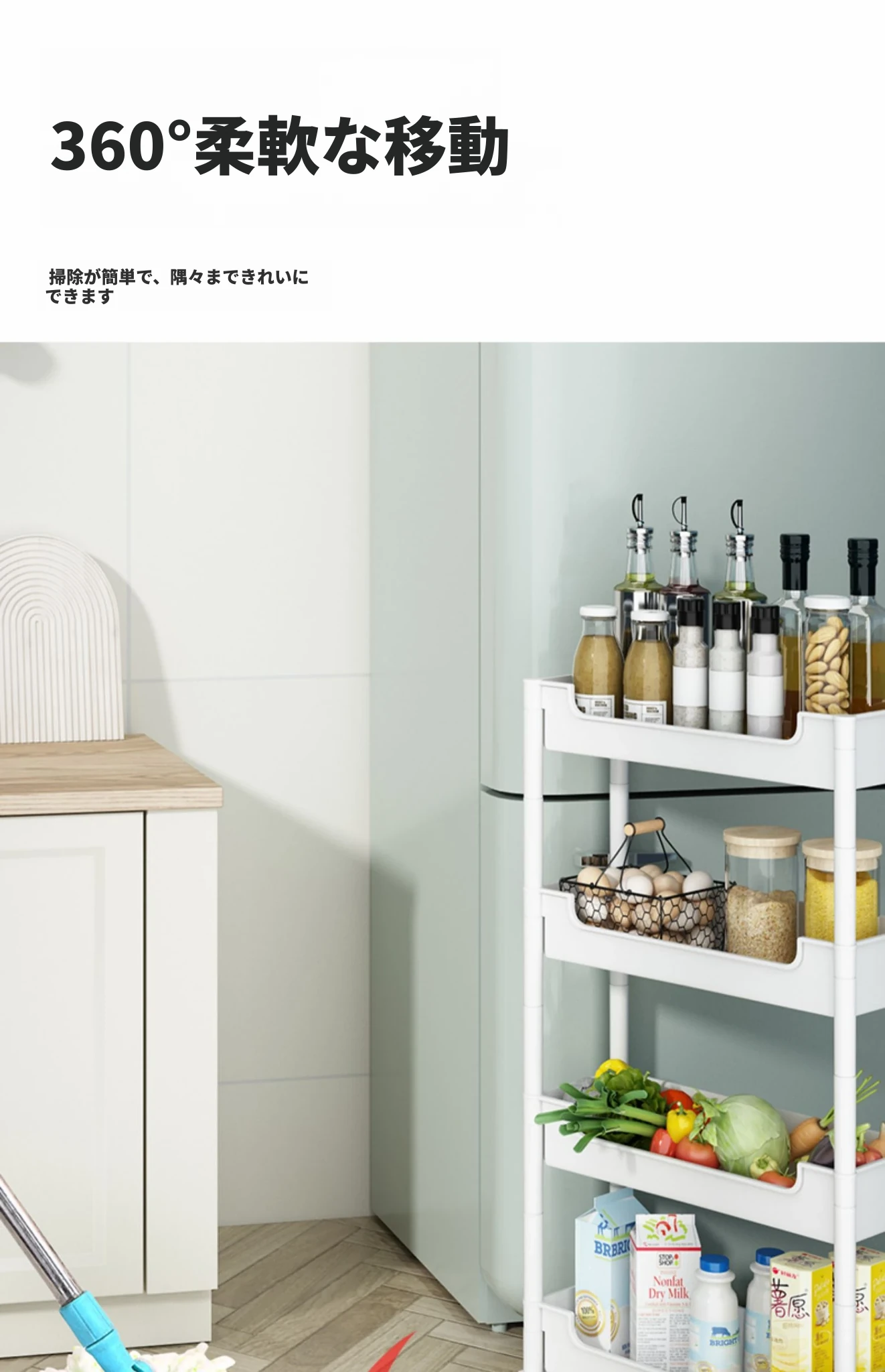 キッチンの隙間にぴったり!超スリムな収納ラック - 冷蔵庫やトイレの隙間を有効活用して、すっきり整理整頓!使い勝手抜群のキャスター付き収納ワゴンで、狭い場所でも使いやすい!