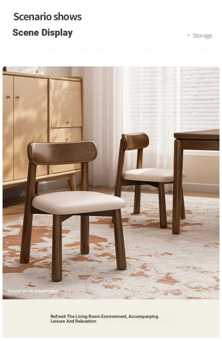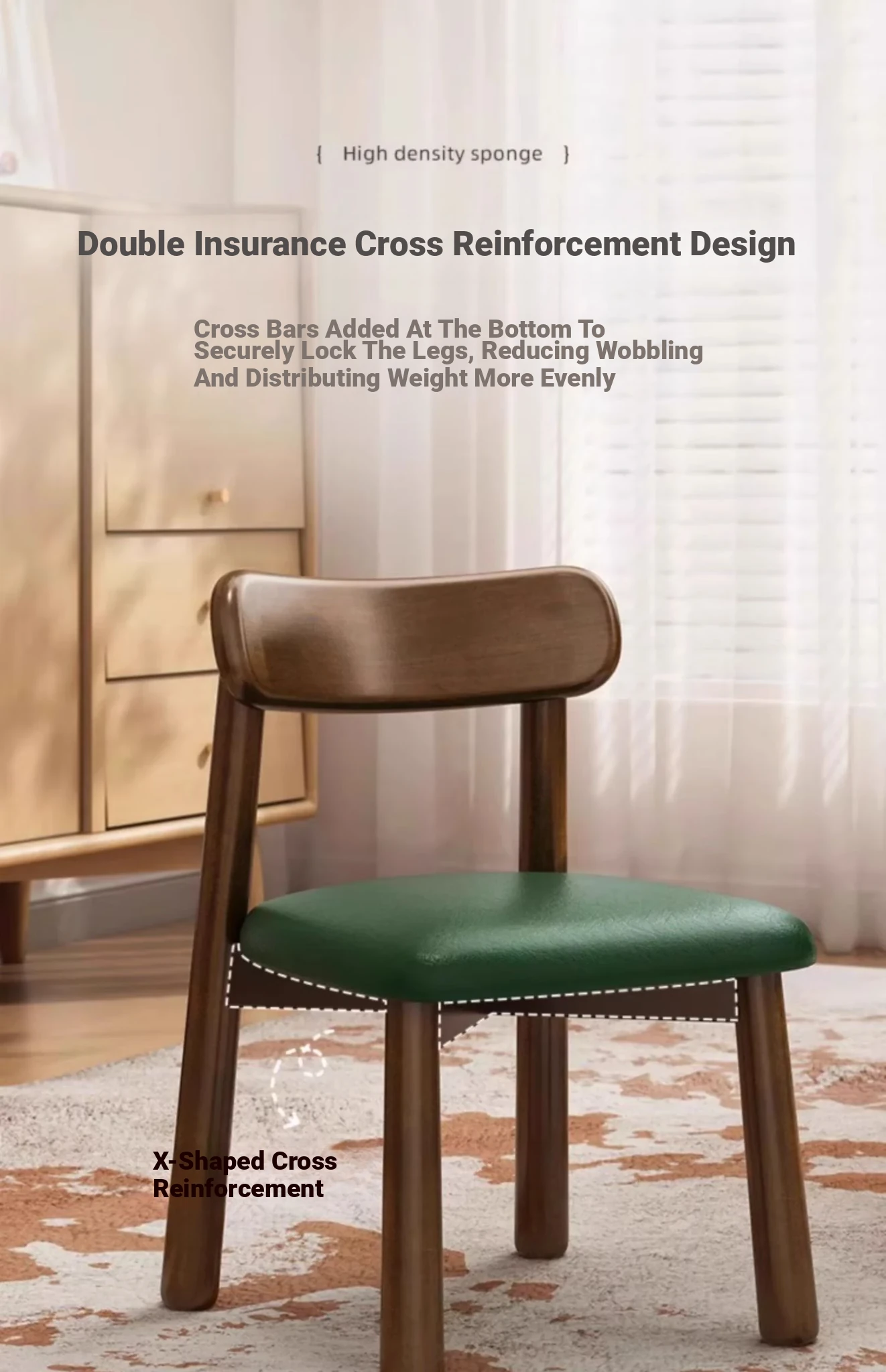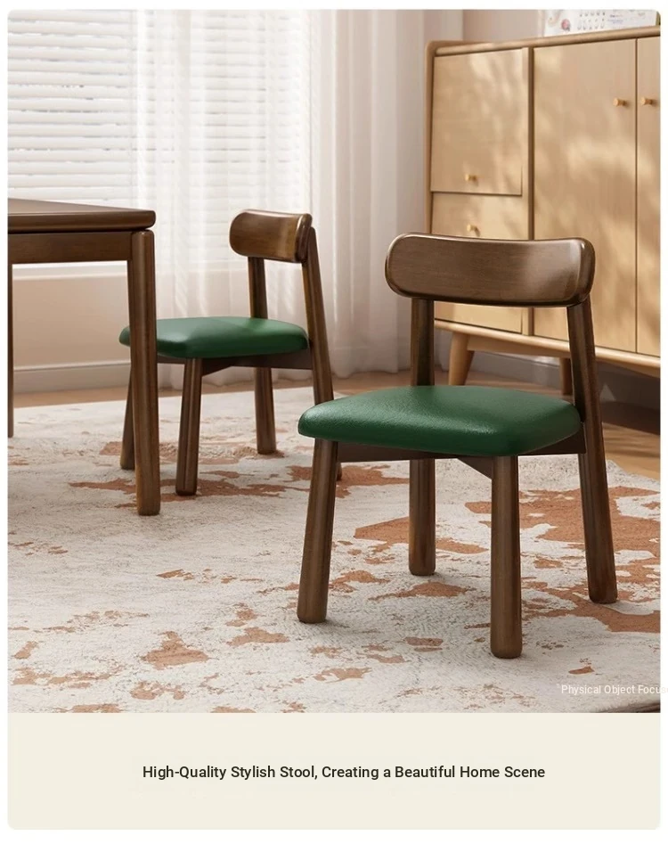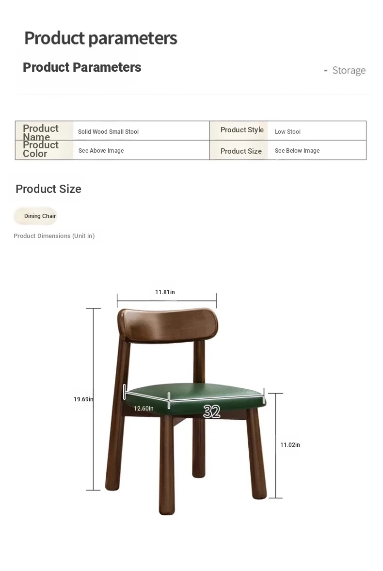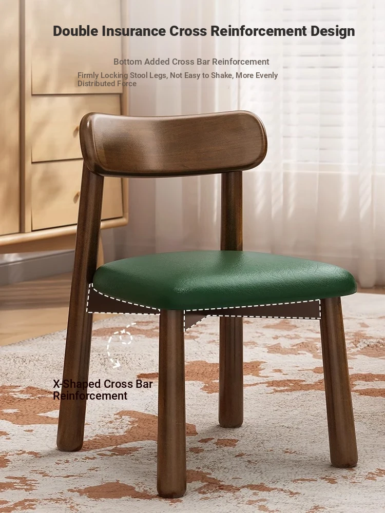Solid Wood Small Stool with Backrest - Versatile Low Chair for Home Use, Ideal for Children's Dining, Bedroom Vanity, and Living Room Lounge. Stylish Retro Design with Soft Cushioning for Ultimate Comfort.
