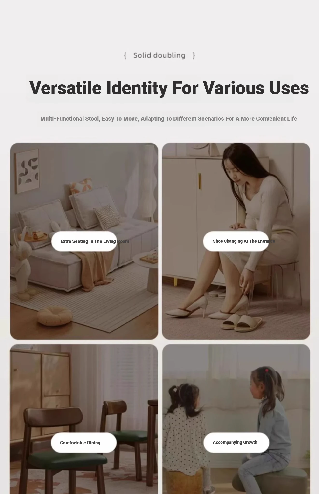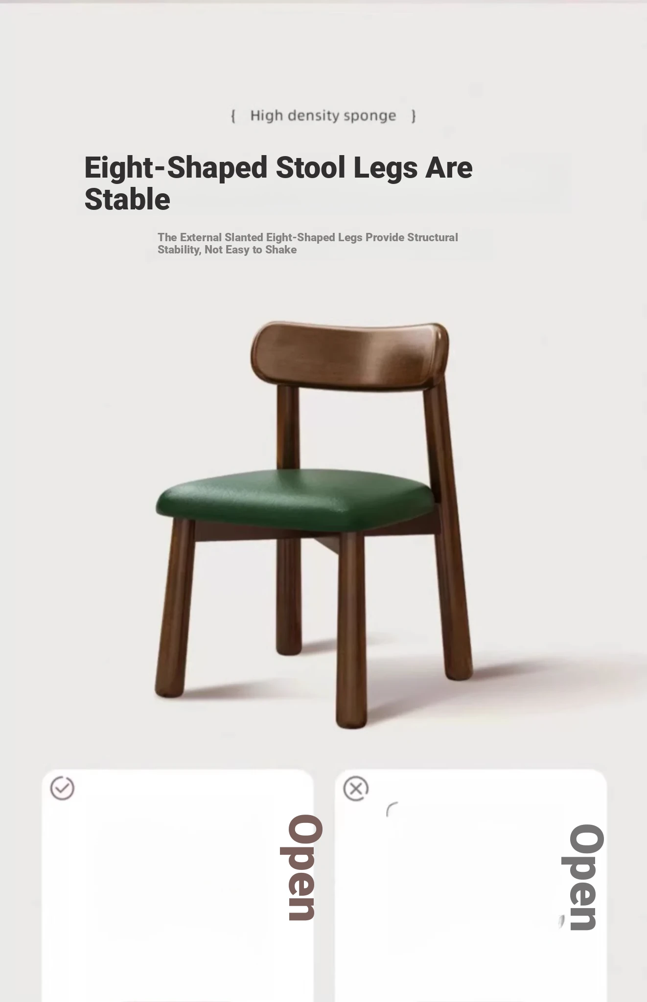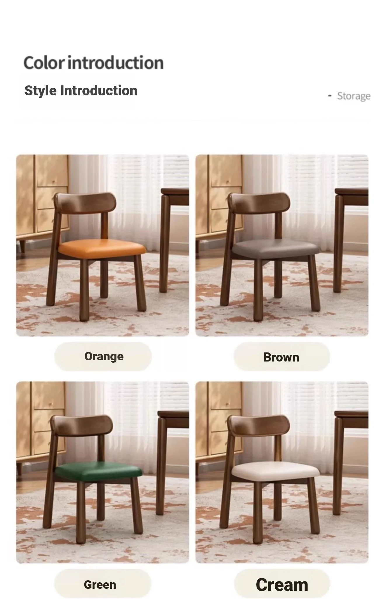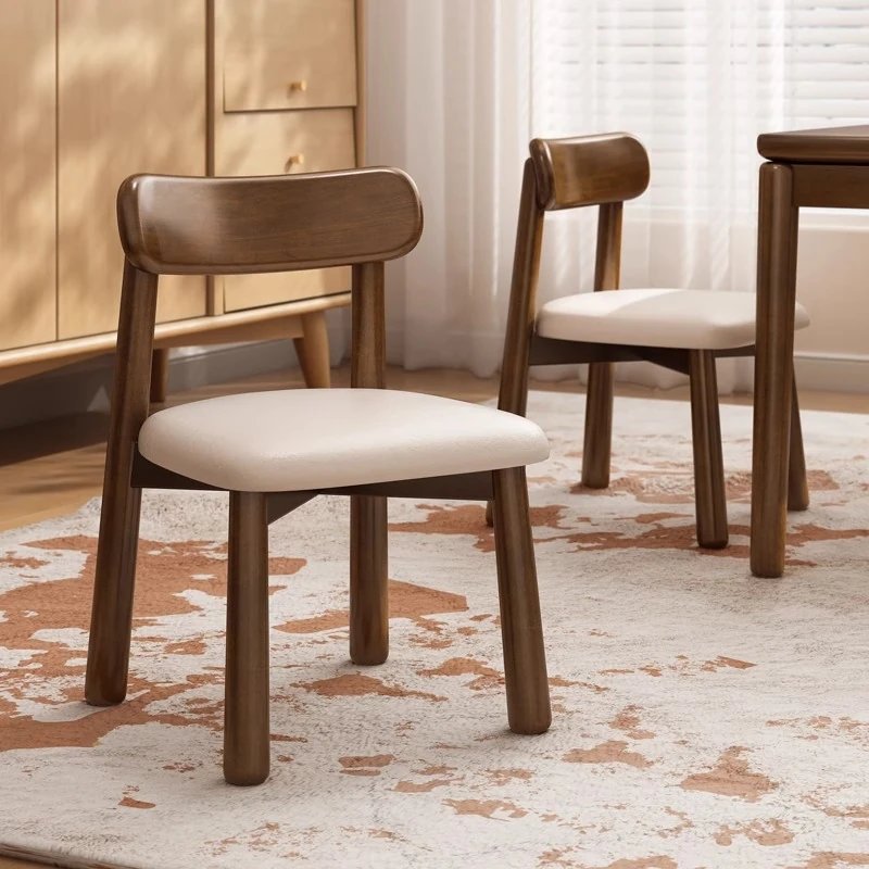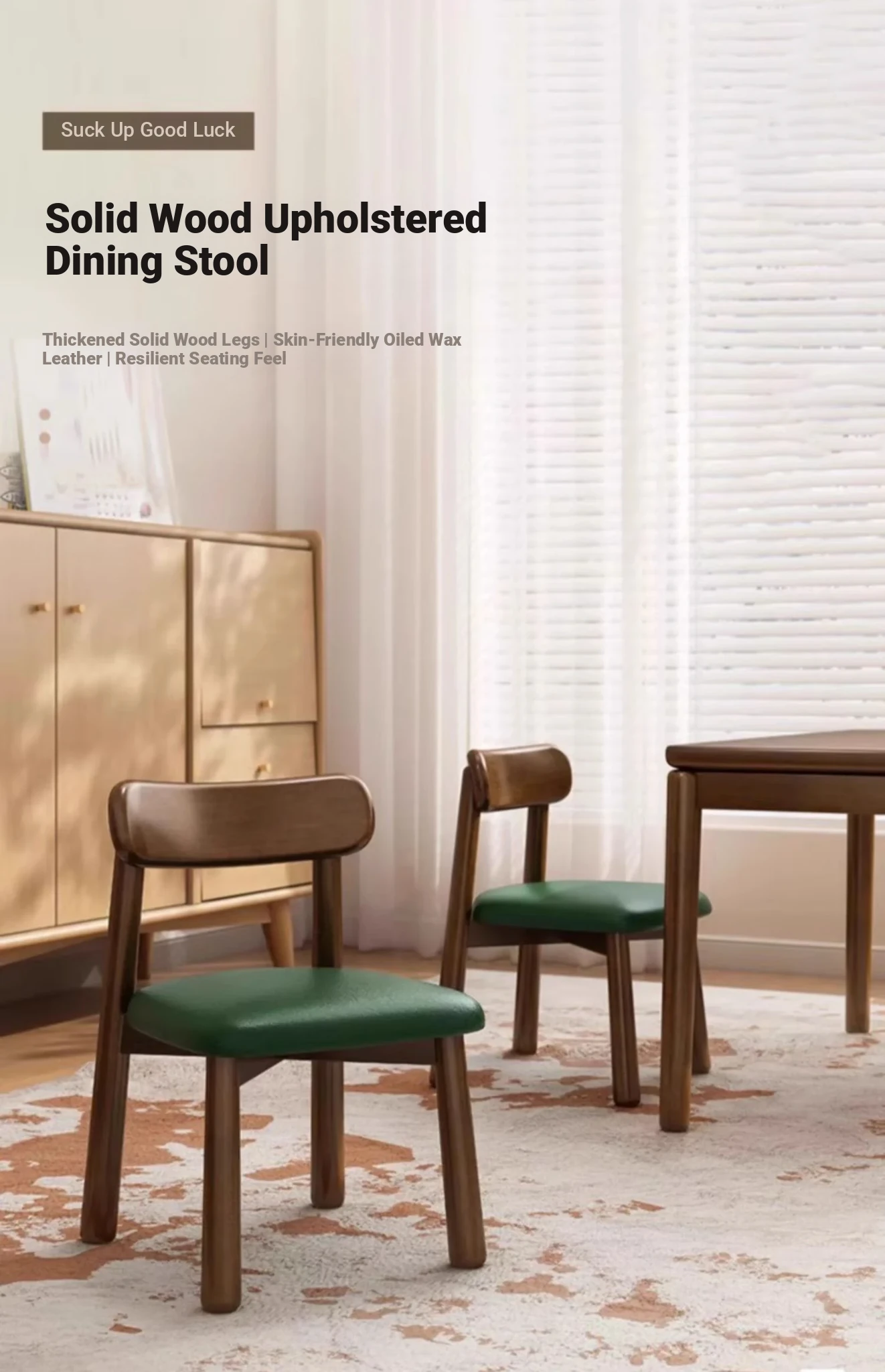 Solid Wood Small Stool with Backrest - Versatile Low Chair for Home Use, Ideal for Children's Dining, Bedroom Vanity, and Living Room Lounge. Stylish Retro Design with Soft Cushioning for Ultimate Comfort.