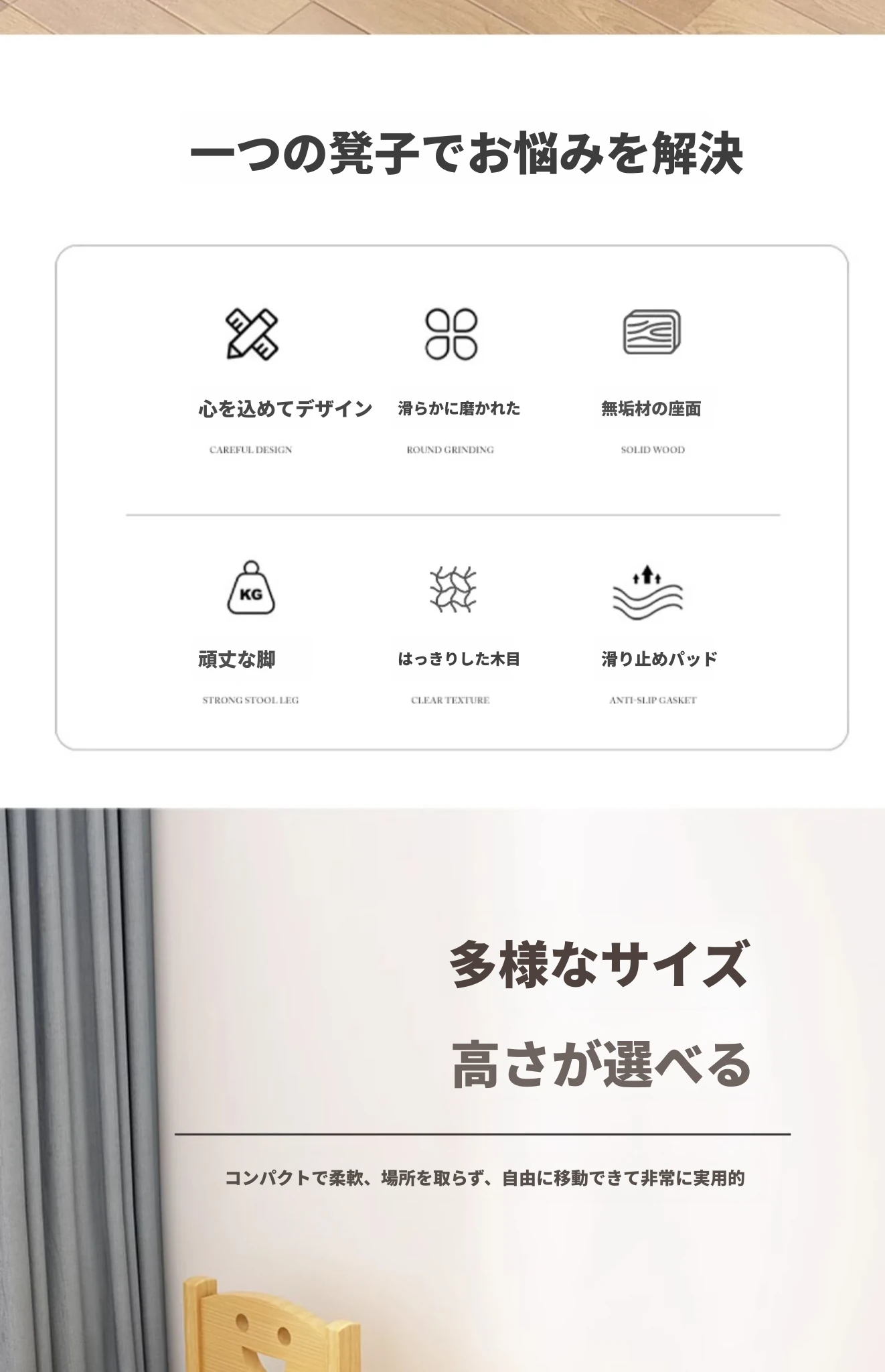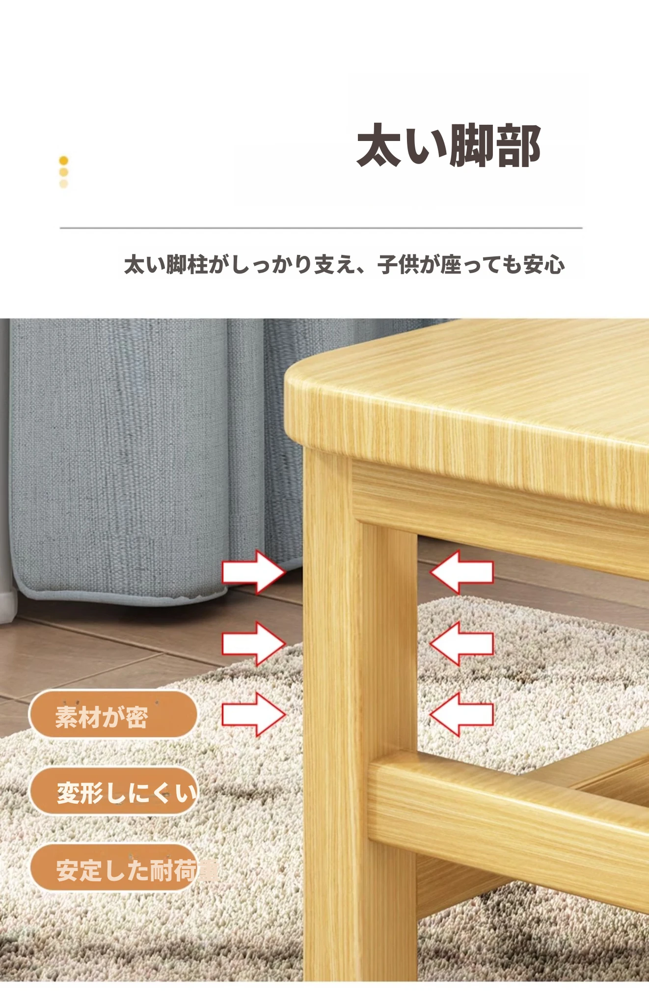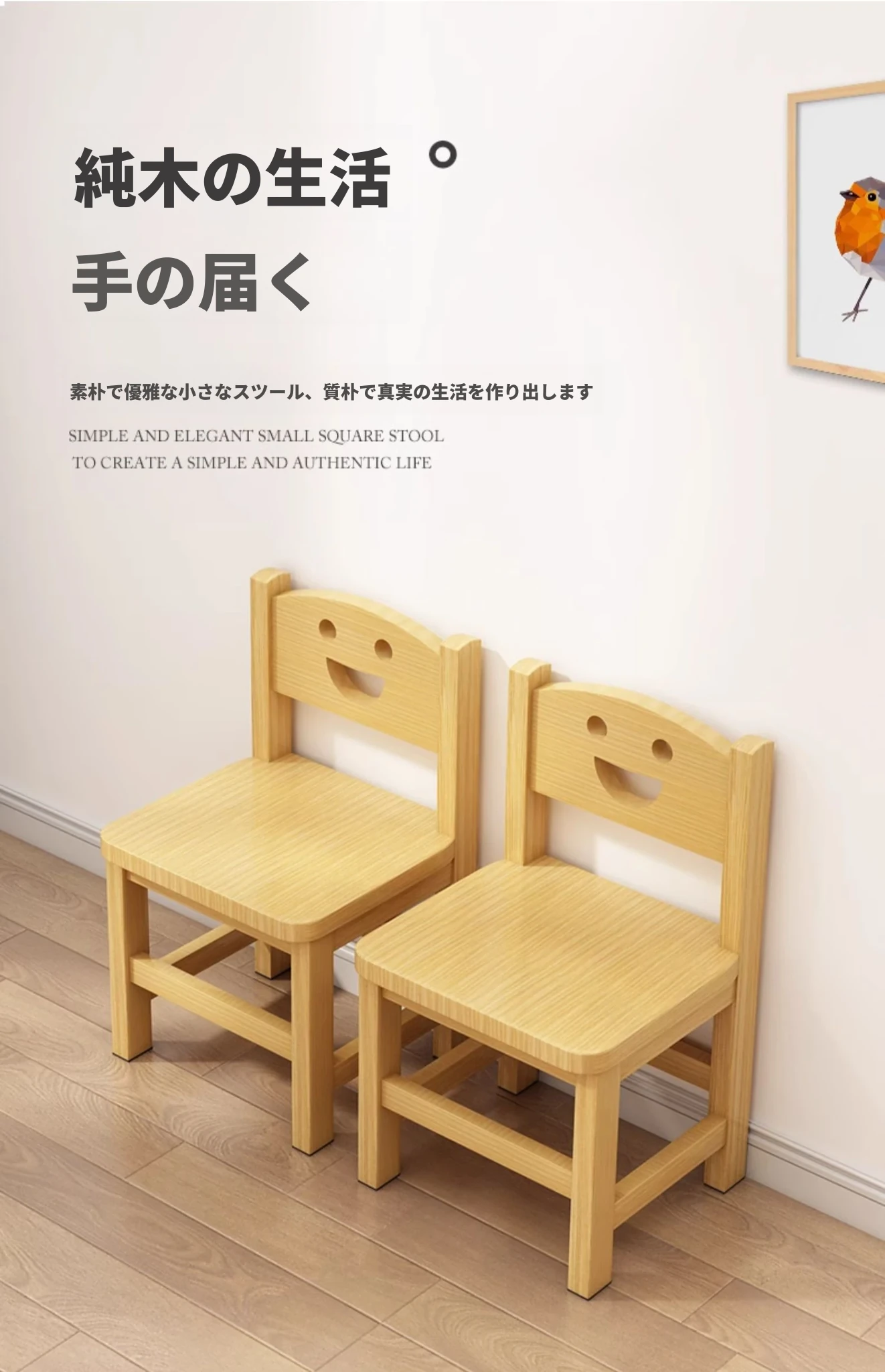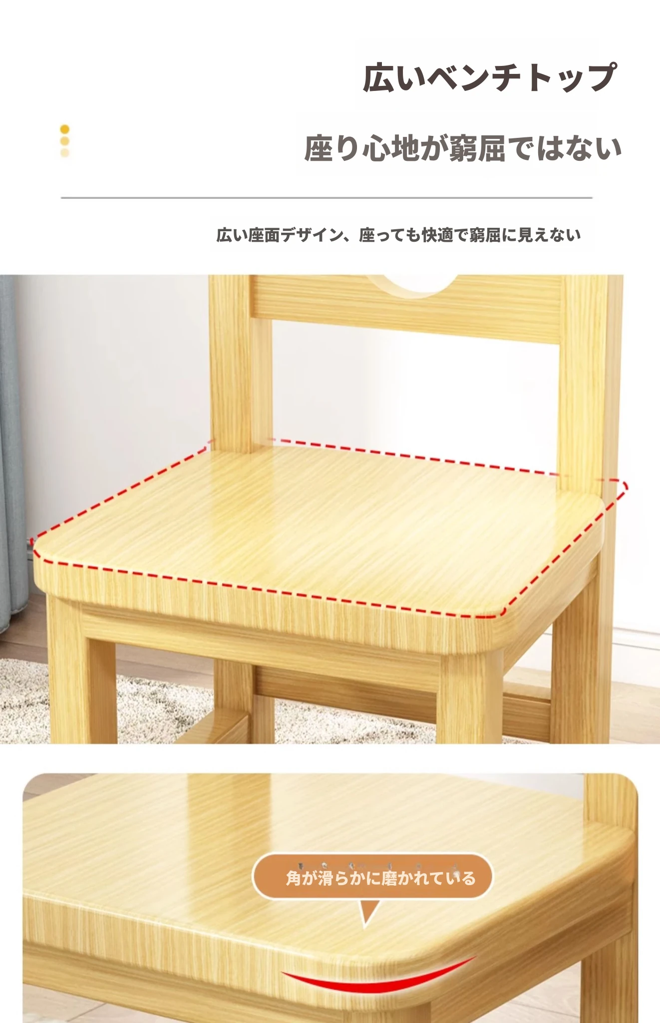 頑丈な無垢材使用!家庭用小さなベンチ - リビングや玄関に最適な低いスツール。靴を履き替える時にも便利!背もたれ付きで、子供にも安心な小椅子。長く使える耐久性抜群のアイテムです!