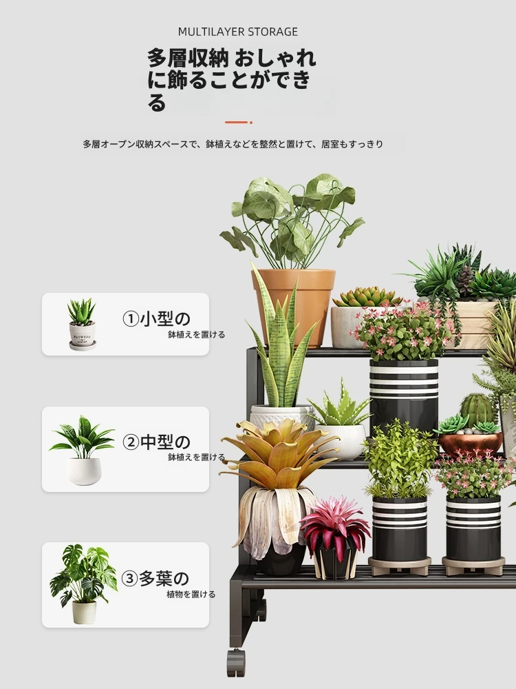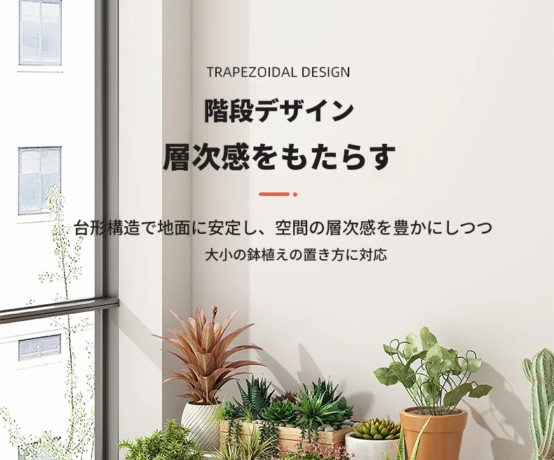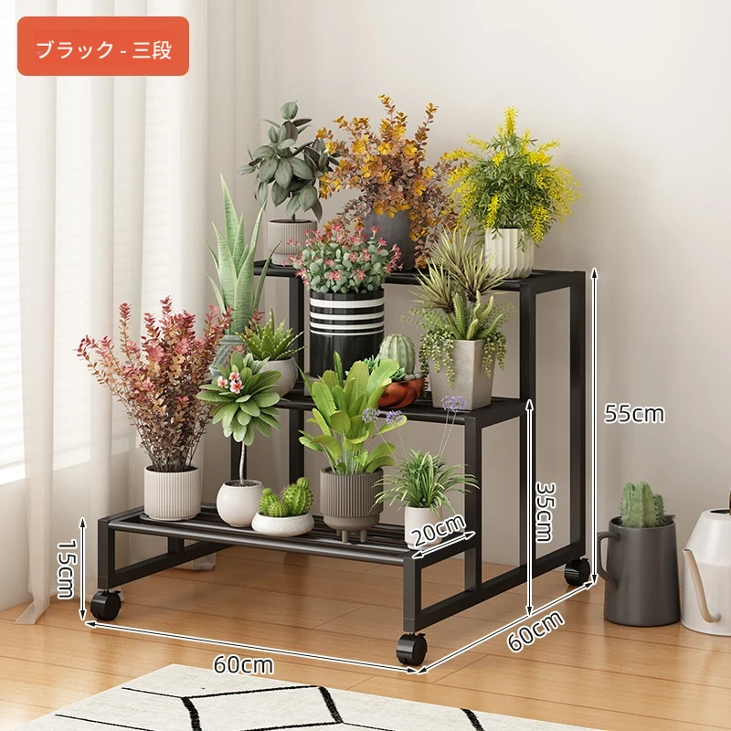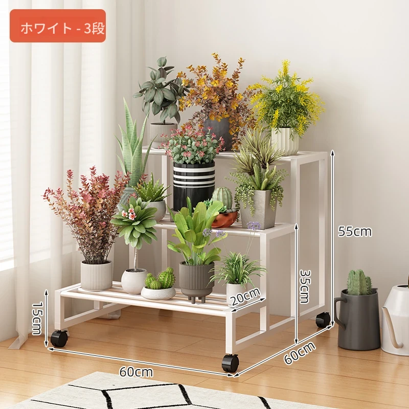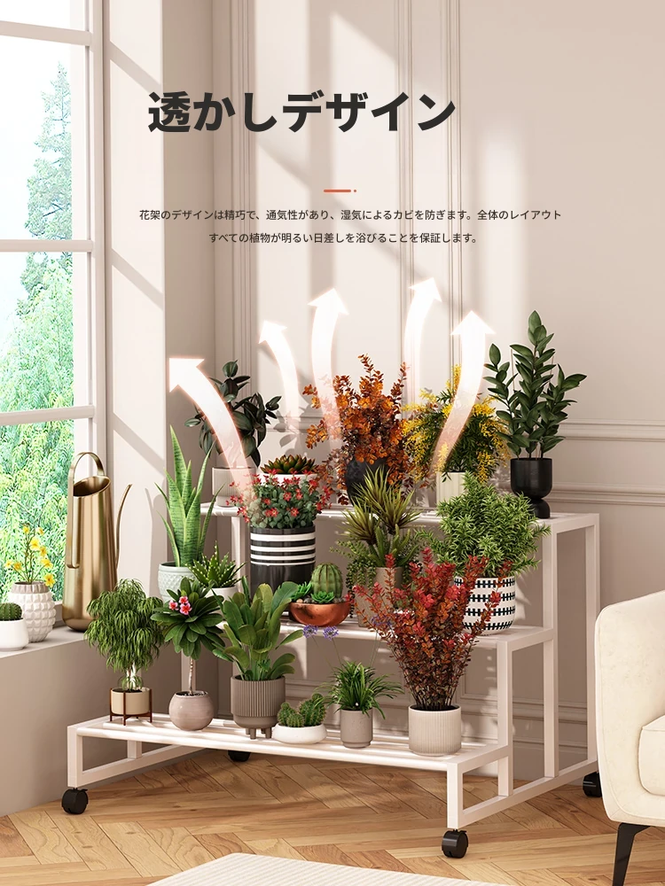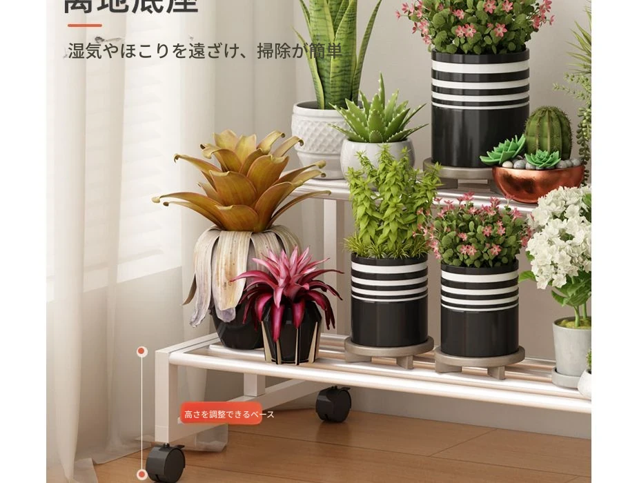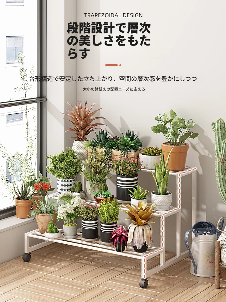 ステンレス製の花台!アウトドアやバルコニーに最適なアイアン製の多段階プランターラック。リビングルームでも移動可能なフロアスタンド。おしゃれで機能的なデザインで、あなたのスペースを美しく演出します!