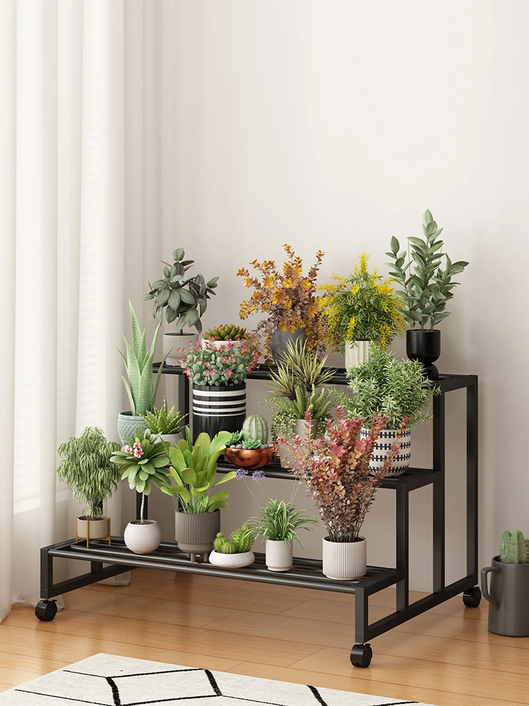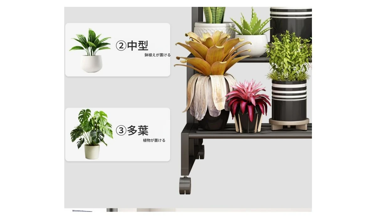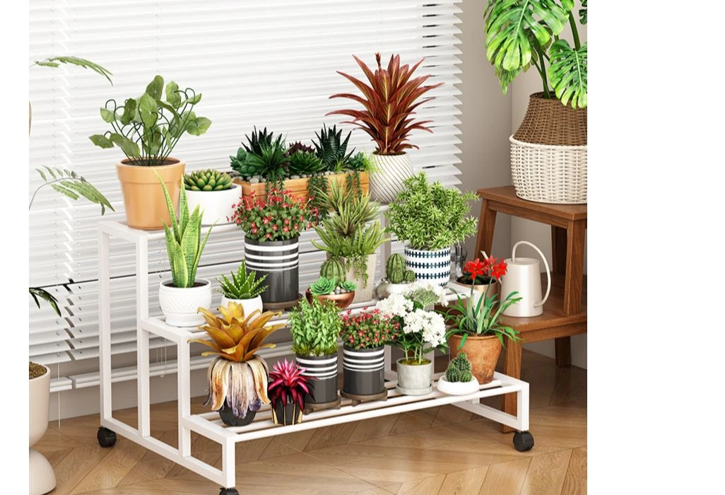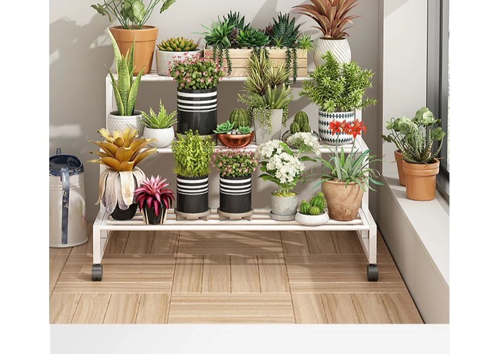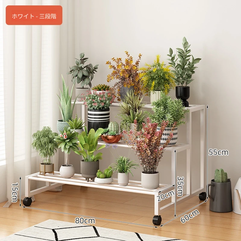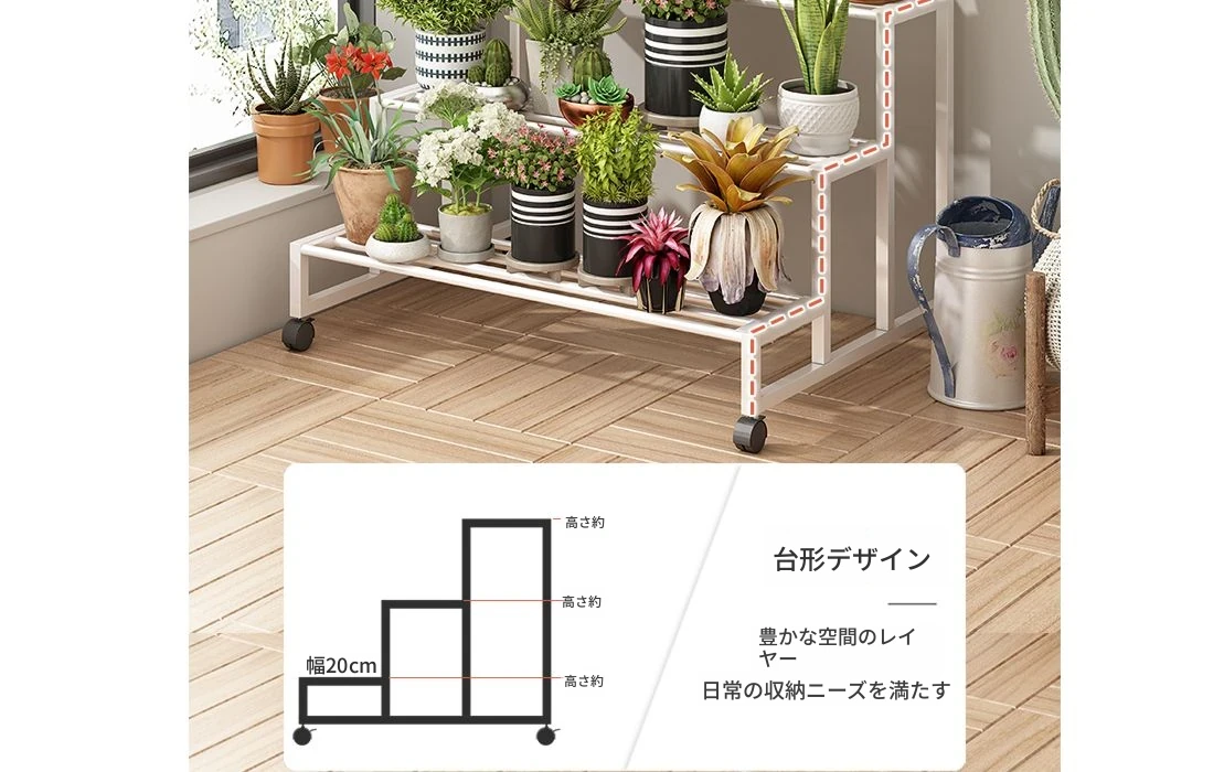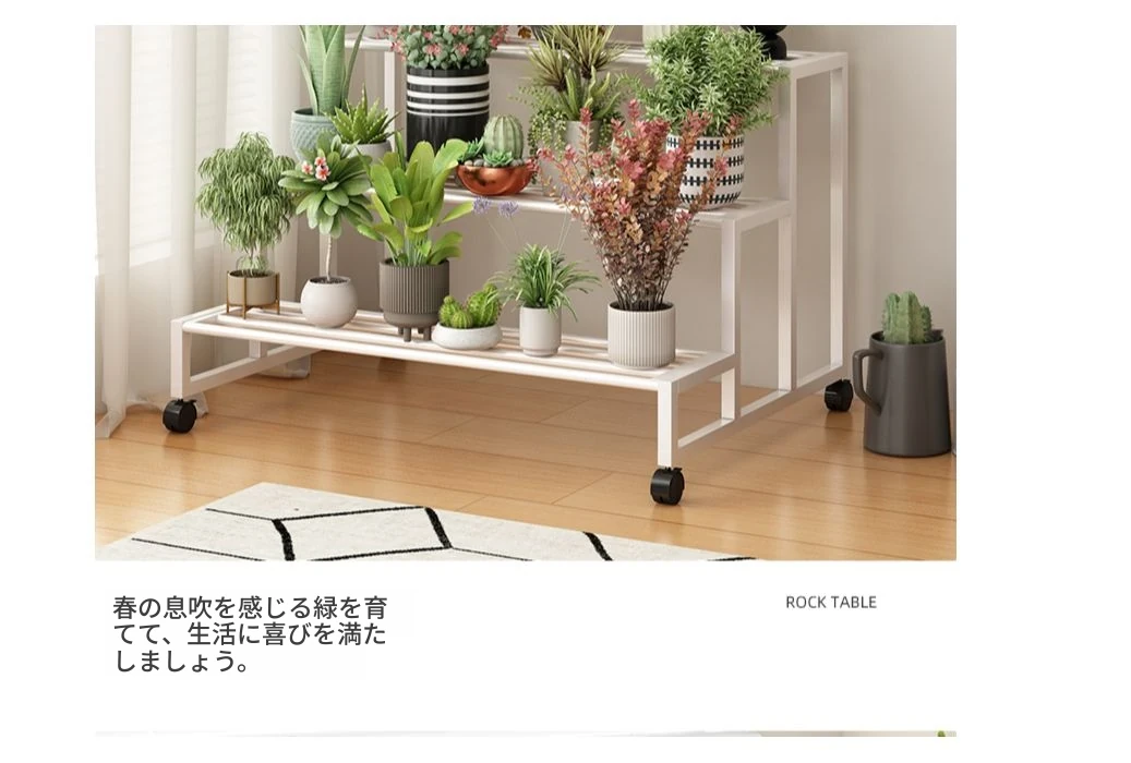 ステンレス製の花台!アウトドアやバルコニーに最適なアイアン製の多段階プランターラック。リビングルームでも移動可能なフロアスタンド。おしゃれで機能的なデザインで、あなたのスペースを美しく演出します!