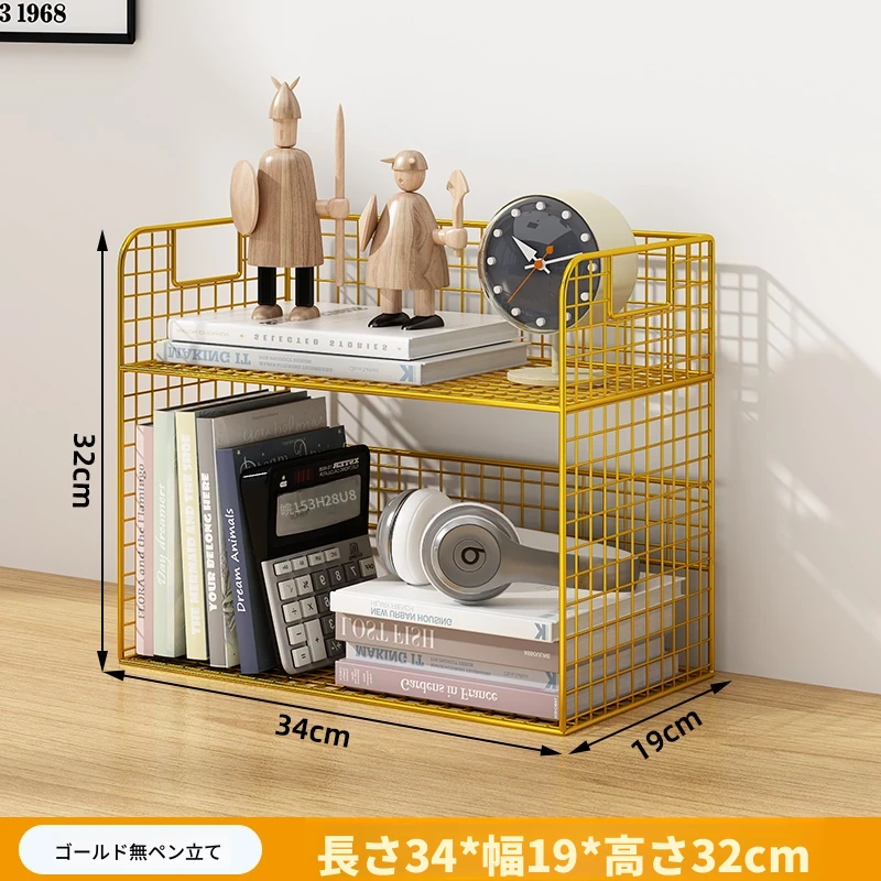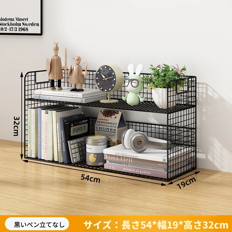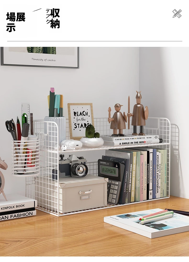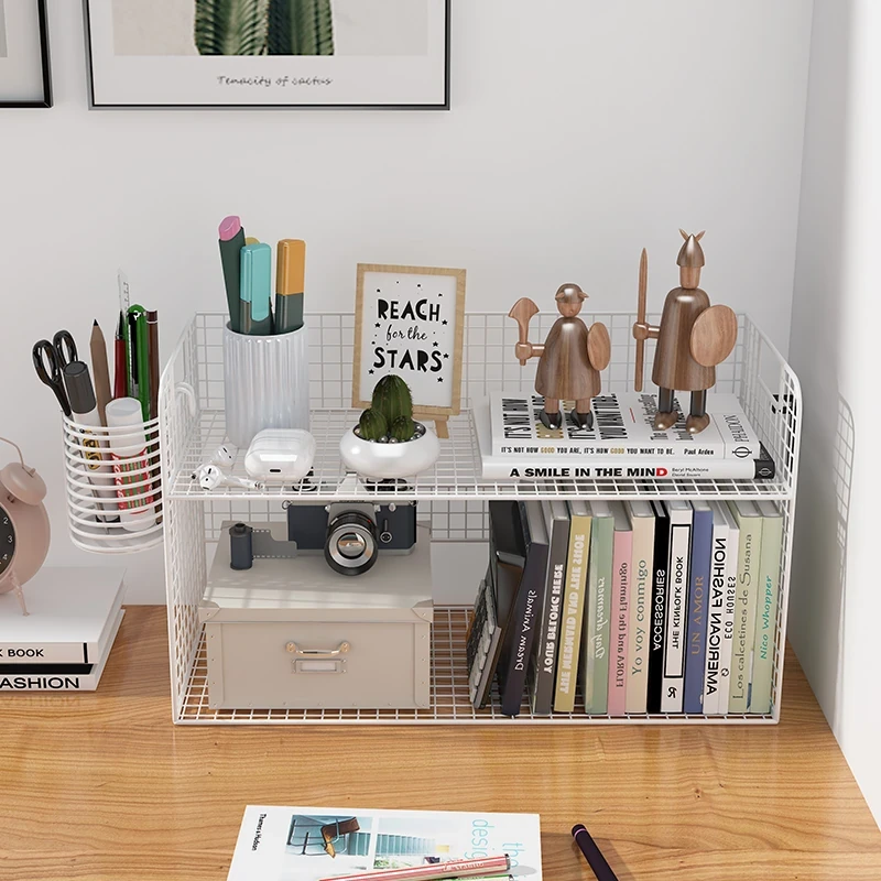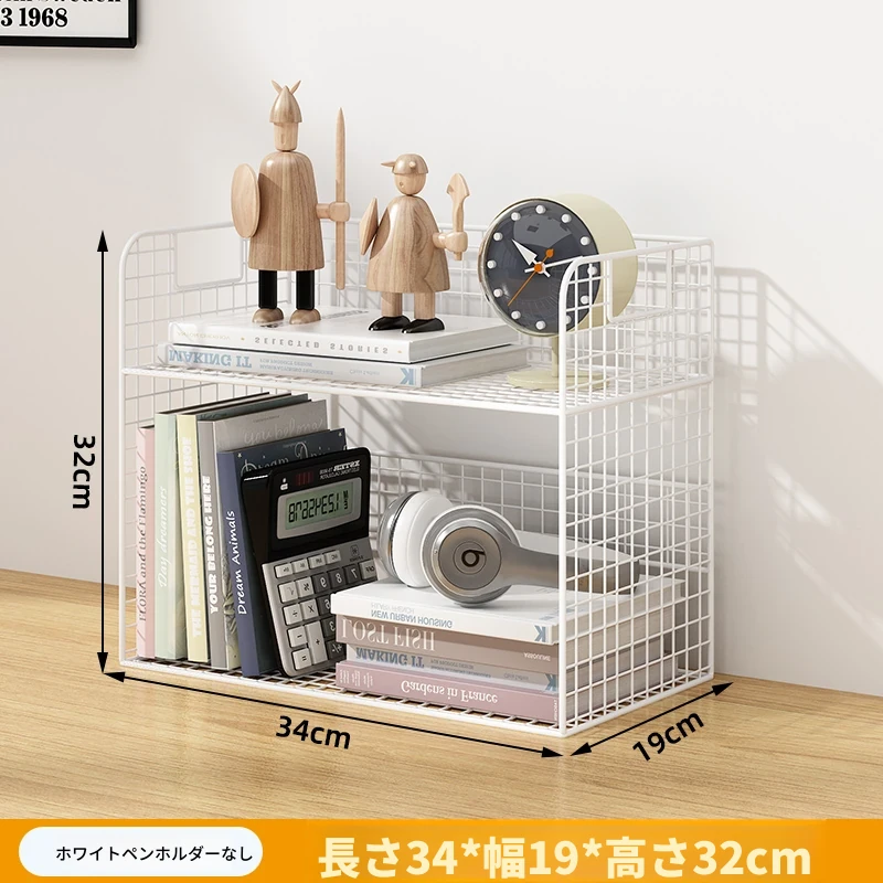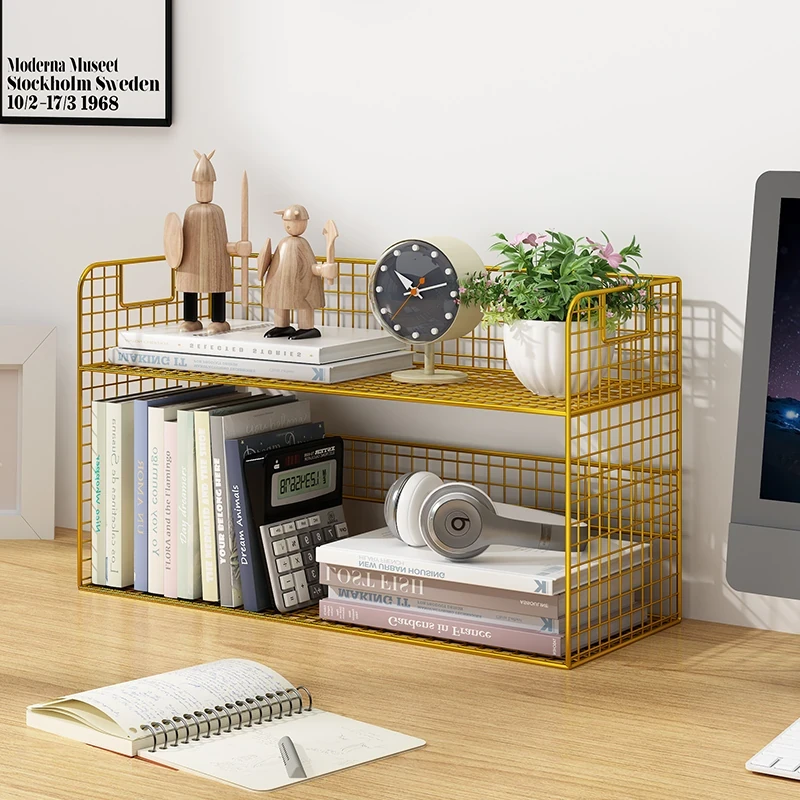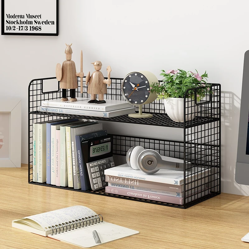 デスク用2段式書棚 - 学生に最適なシンプルな本収納ラック!オフィスや子供部屋にぴったりなアイアン製のスタイリッシュな書棚で、スッキリとしたデスク環境を実現。おしゃれで実用的な収納をお楽しみください!