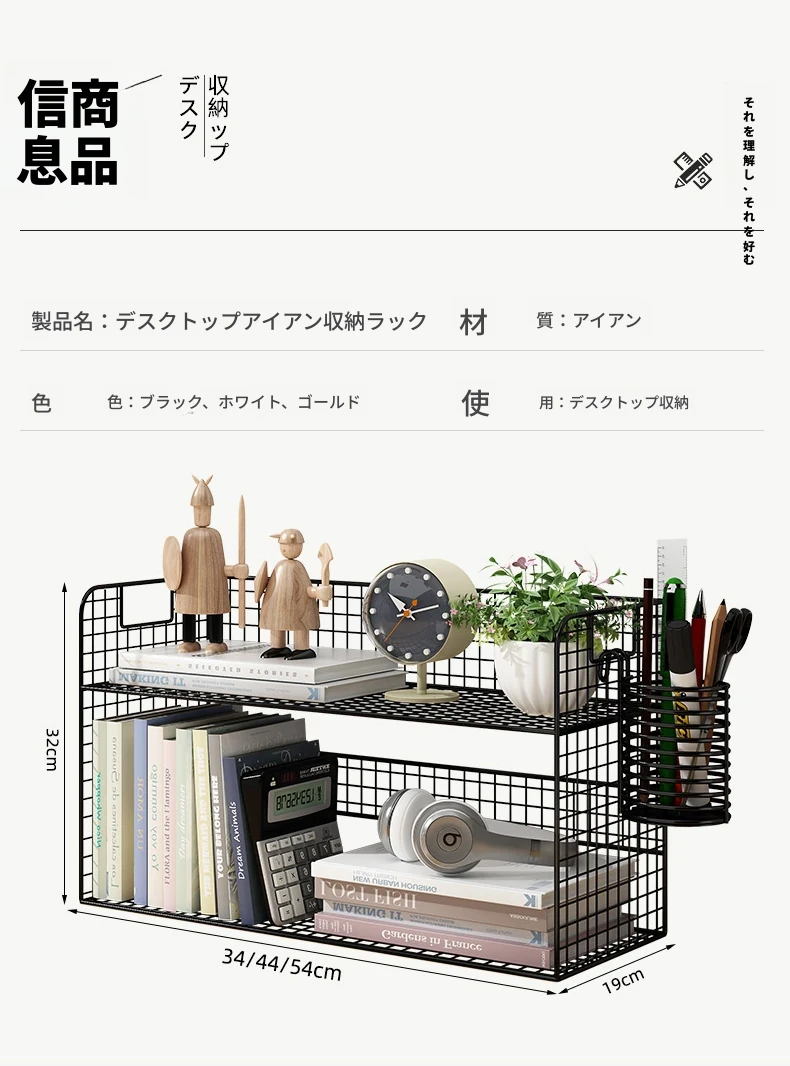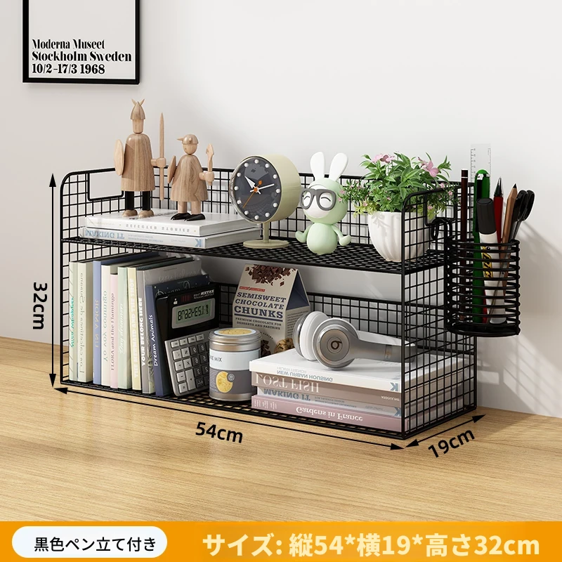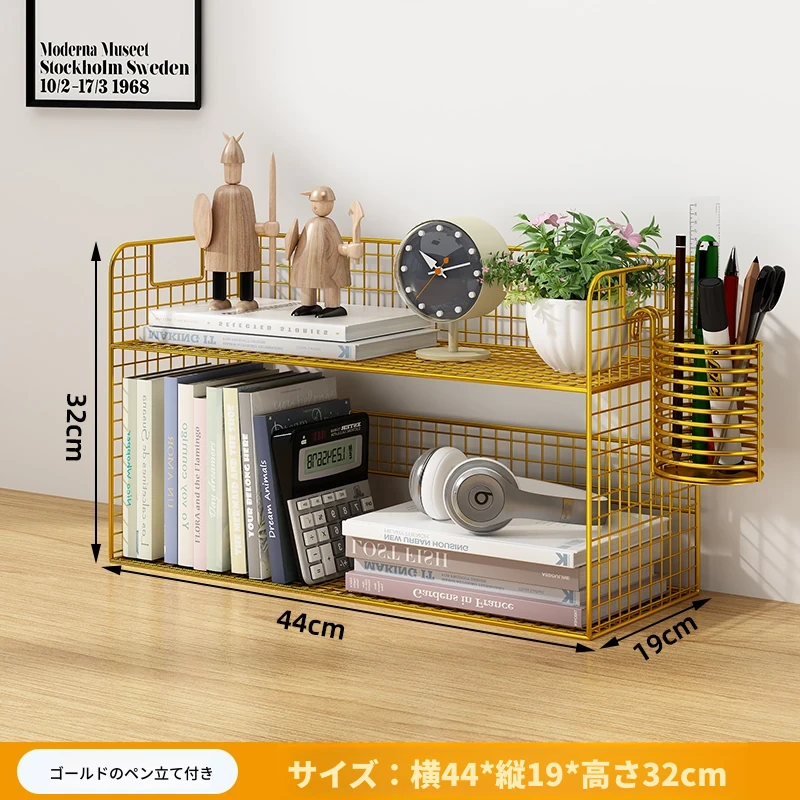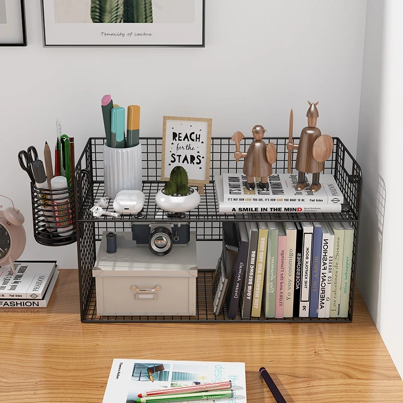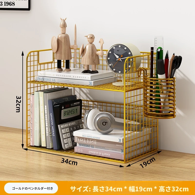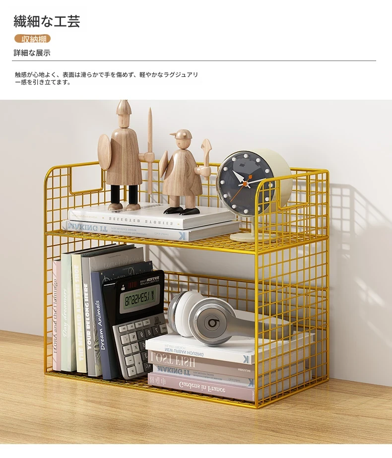 デスク用2段式書棚 - 学生に最適なシンプルな本収納ラック!オフィスや子供部屋にぴったりなアイアン製のスタイリッシュな書棚で、スッキリとしたデスク環境を実現。おしゃれで実用的な収納をお楽しみください!