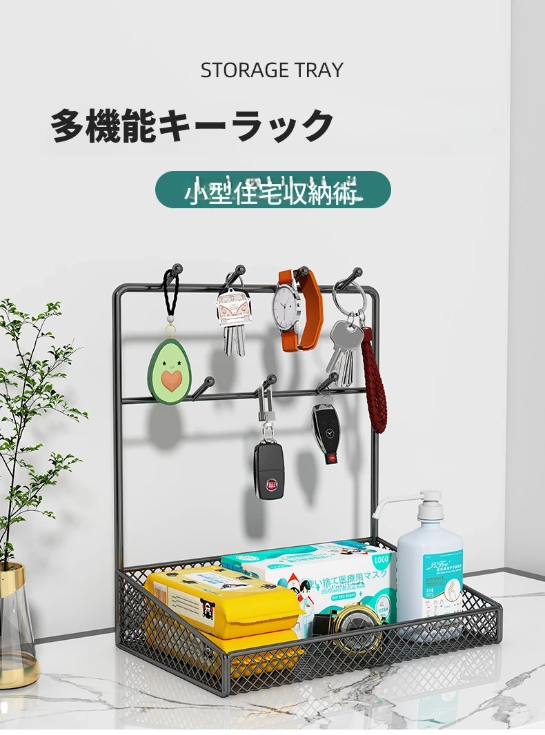 玄関の鍵掛けオーナメント - マスクや小物を収納できるスタイリッシュな置物ラック!シューズキャビネットの上に最適なデスクトップ収納ボックスで、整理整頓もおしゃれに!