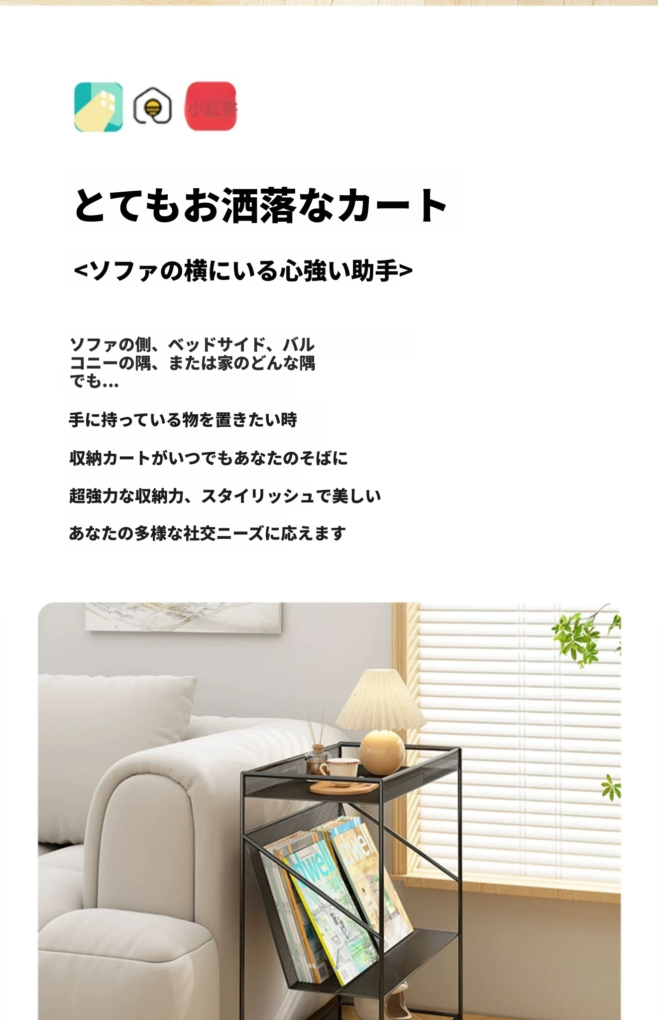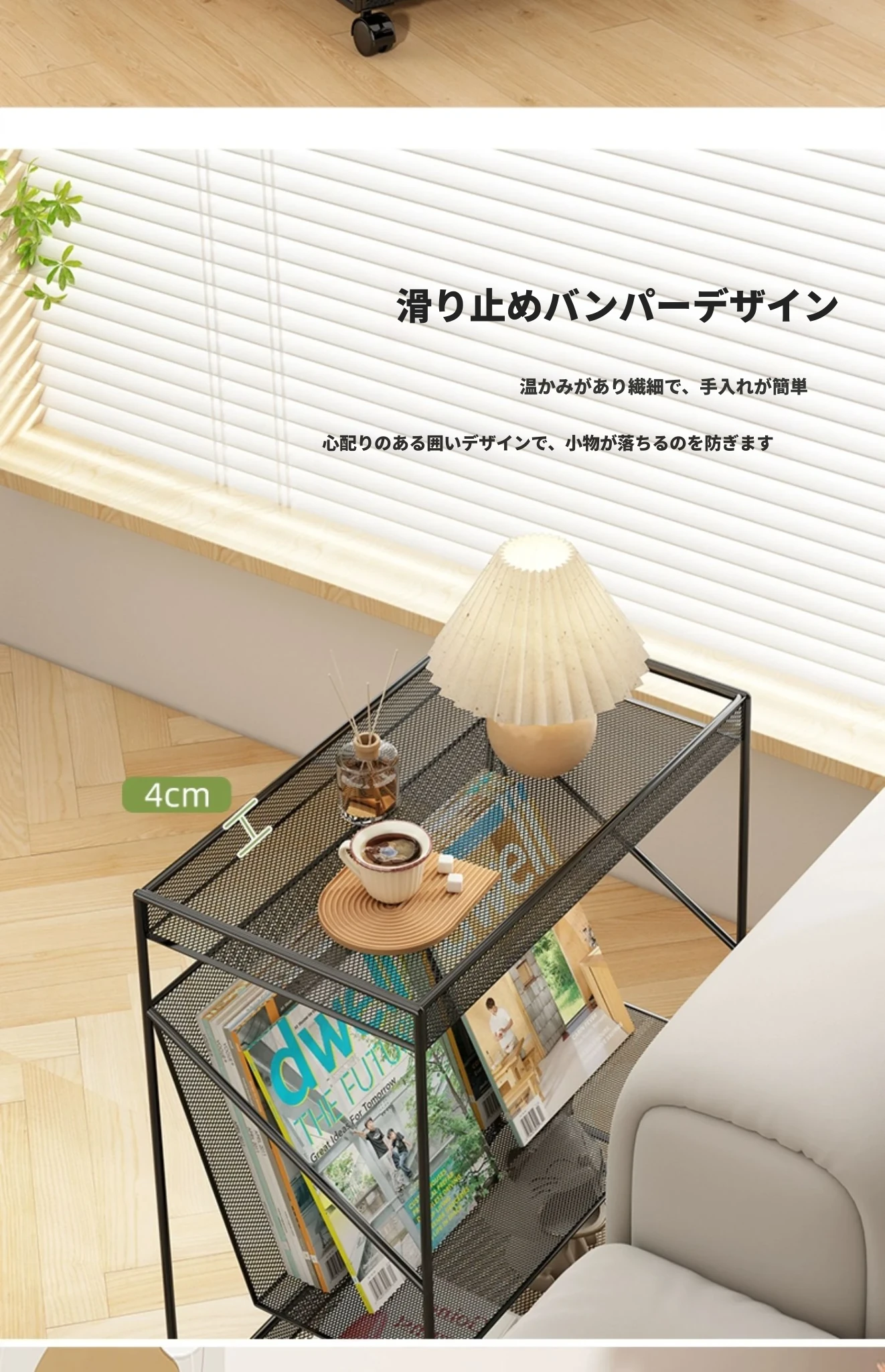 リビングにぴったり!移動可能な小さなサイドテーブル&ベッドサイド収納ラック - おしゃれなアイアン製で、スペースを有効活用!整理整頓をサポートし、どんな部屋にもマッチします。
