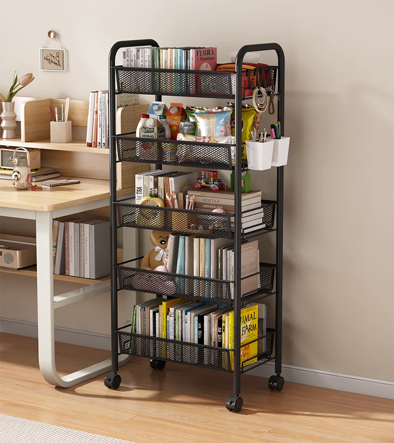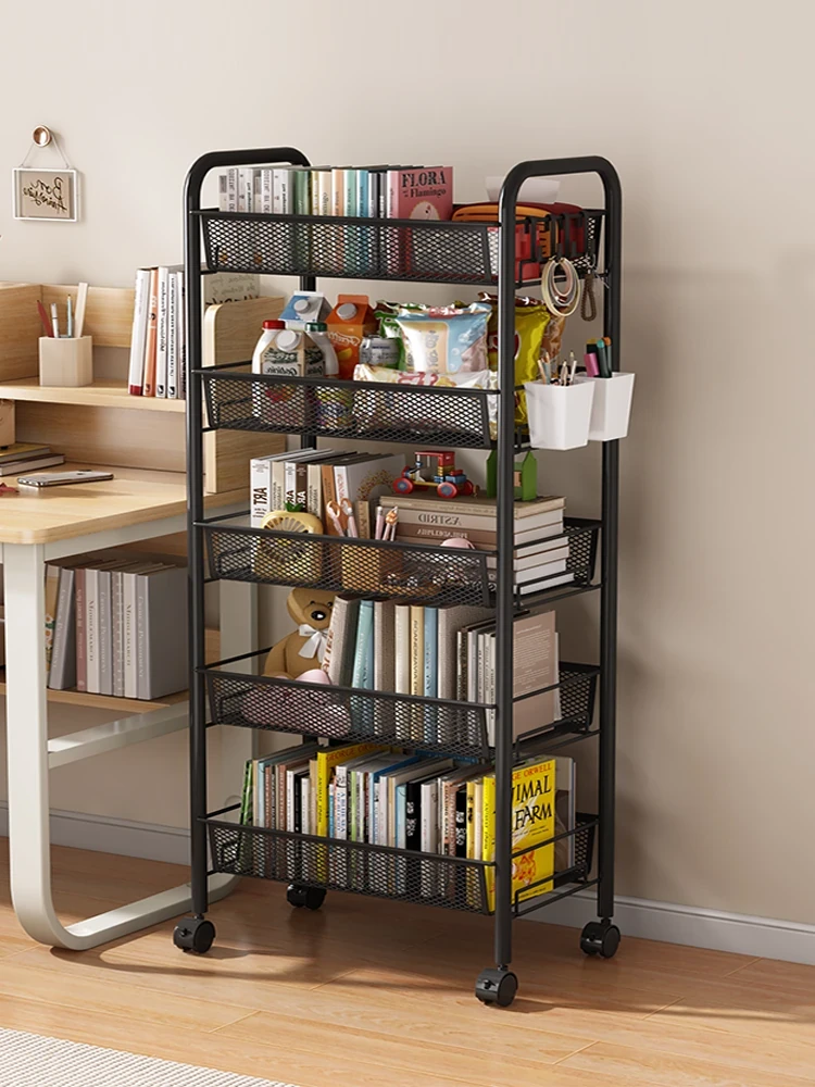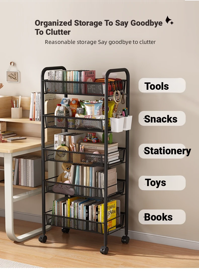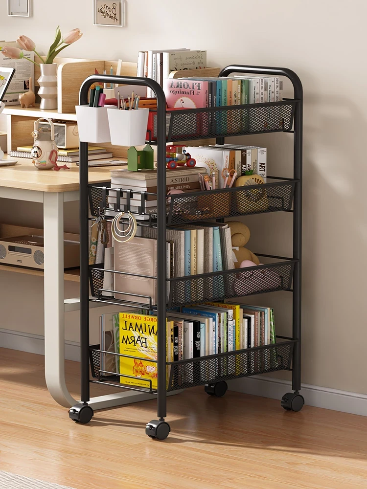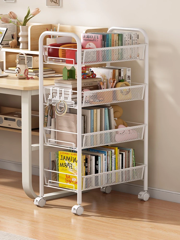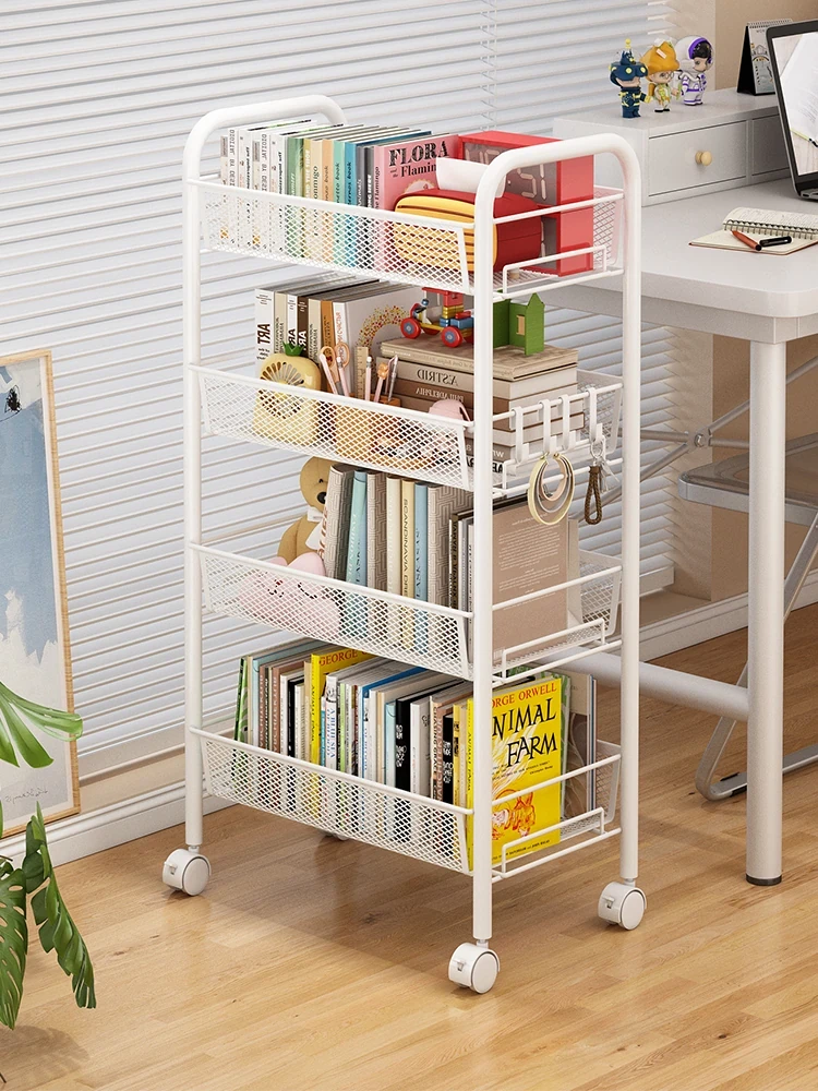 Stylish Rolling Bookshelf and Snack Cart - Movable Storage Rack with Wheels for Living Room, Perfect for Students' Books and Easy Organization!
