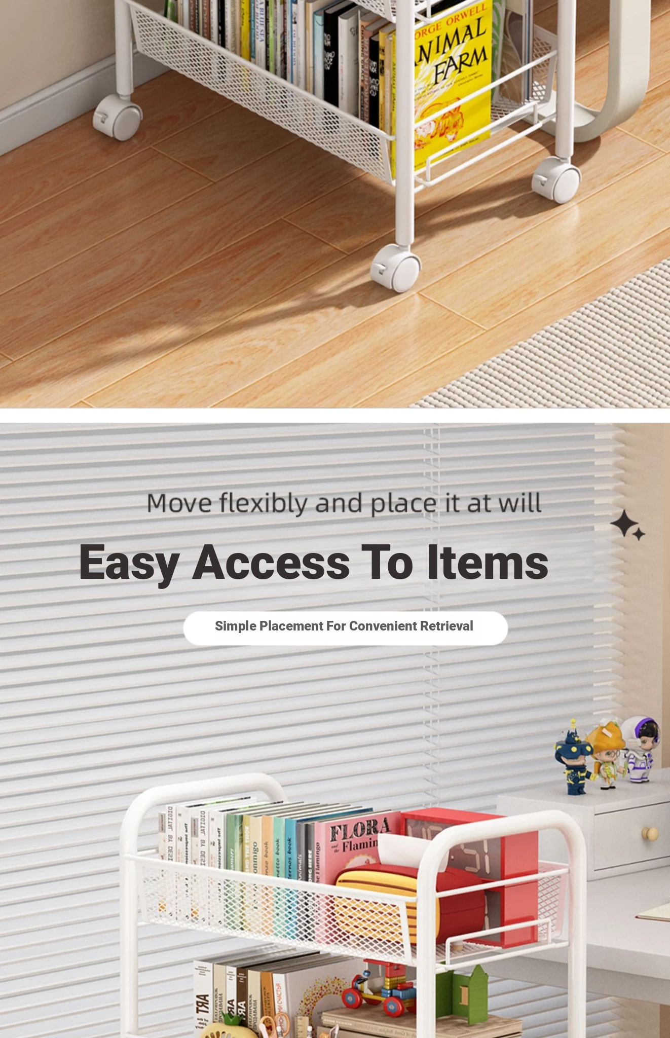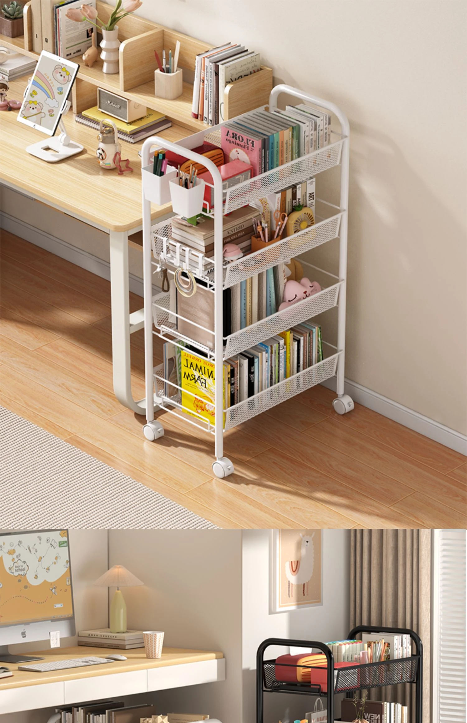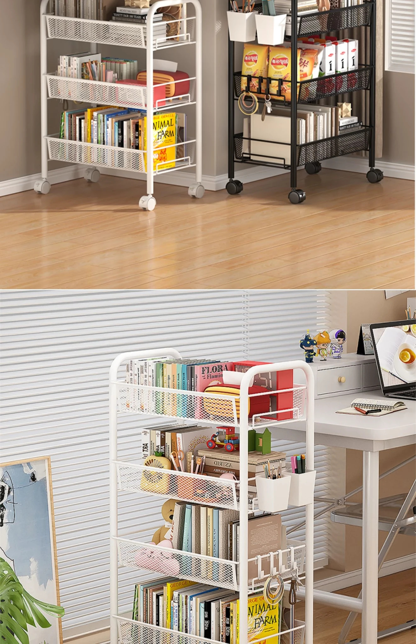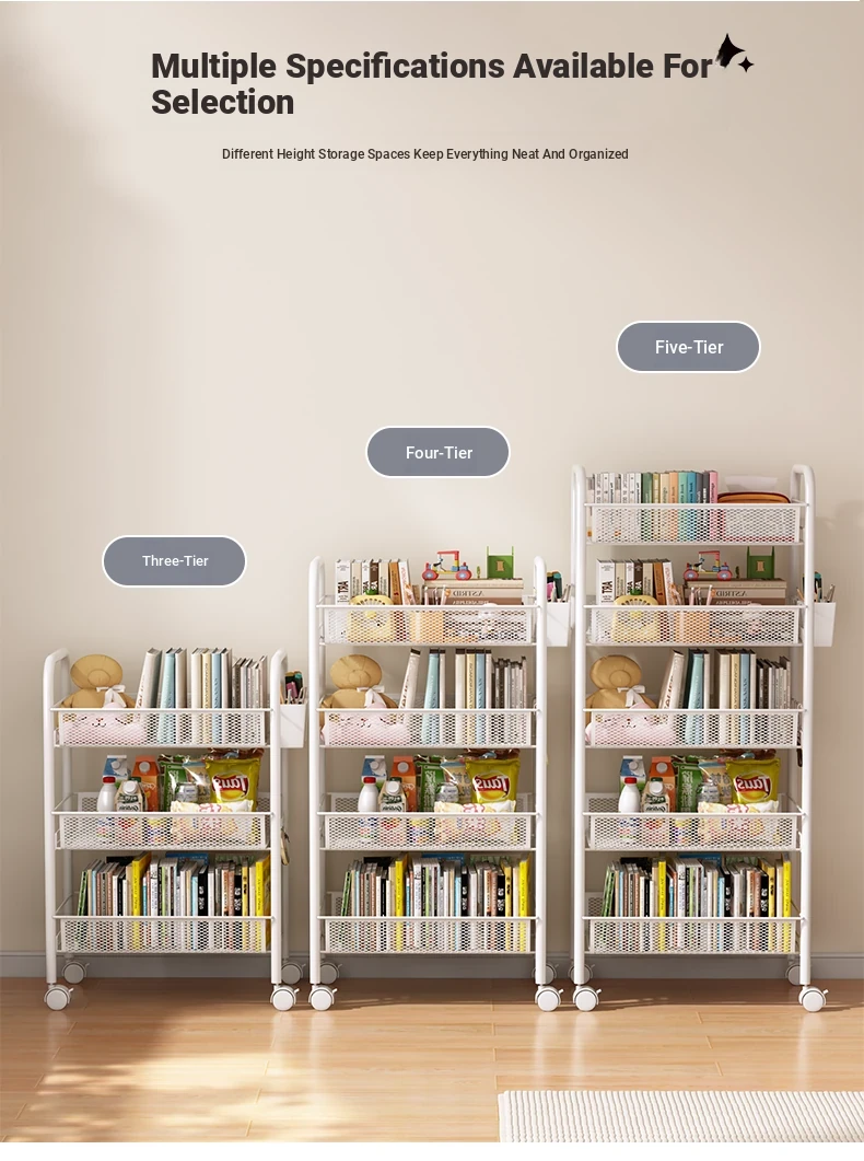 Stylish Rolling Bookshelf and Snack Cart - Movable Storage Rack with Wheels for Living Room, Perfect for Students' Books and Easy Organization!