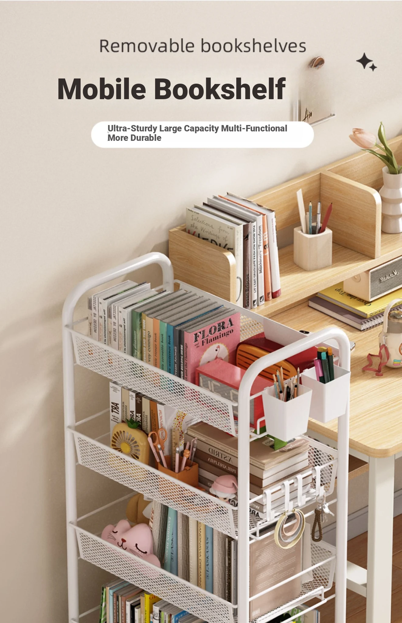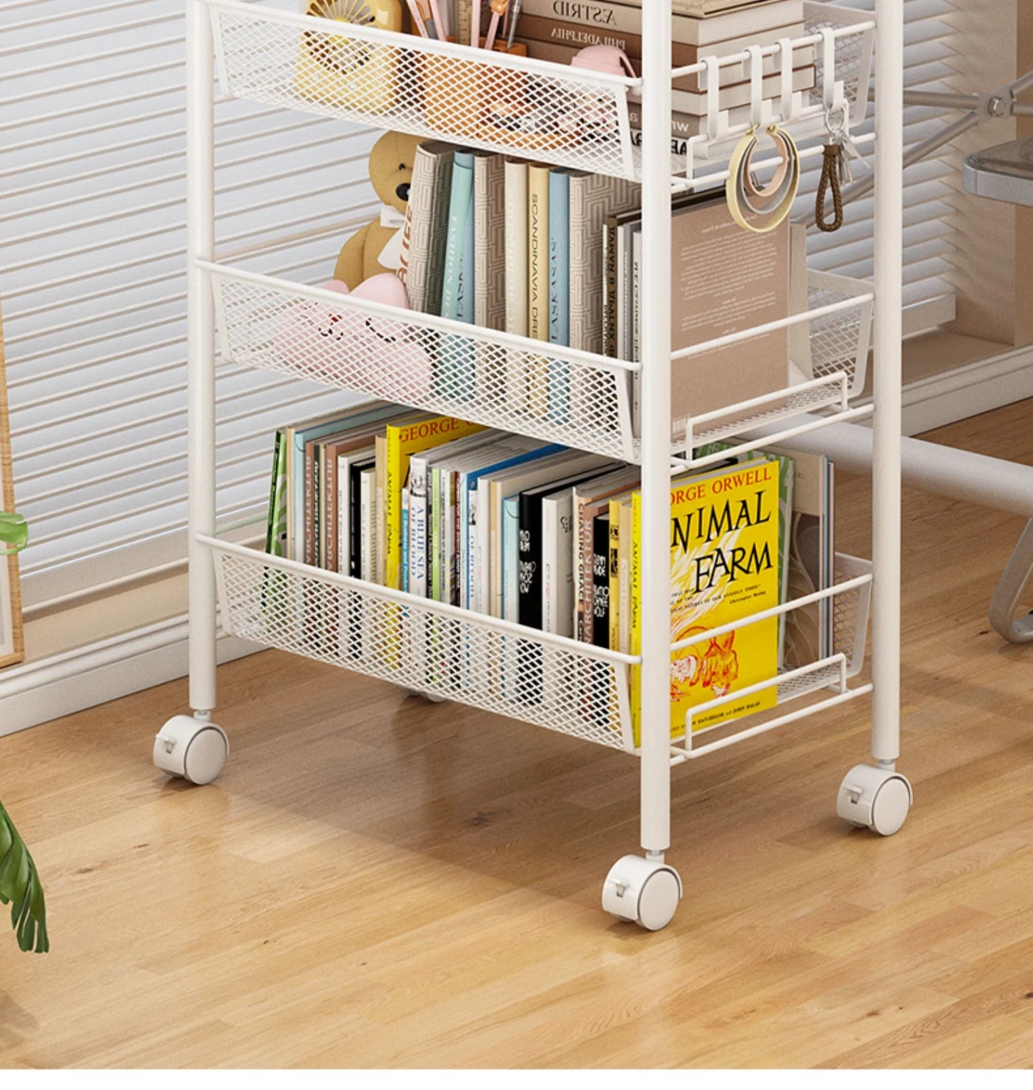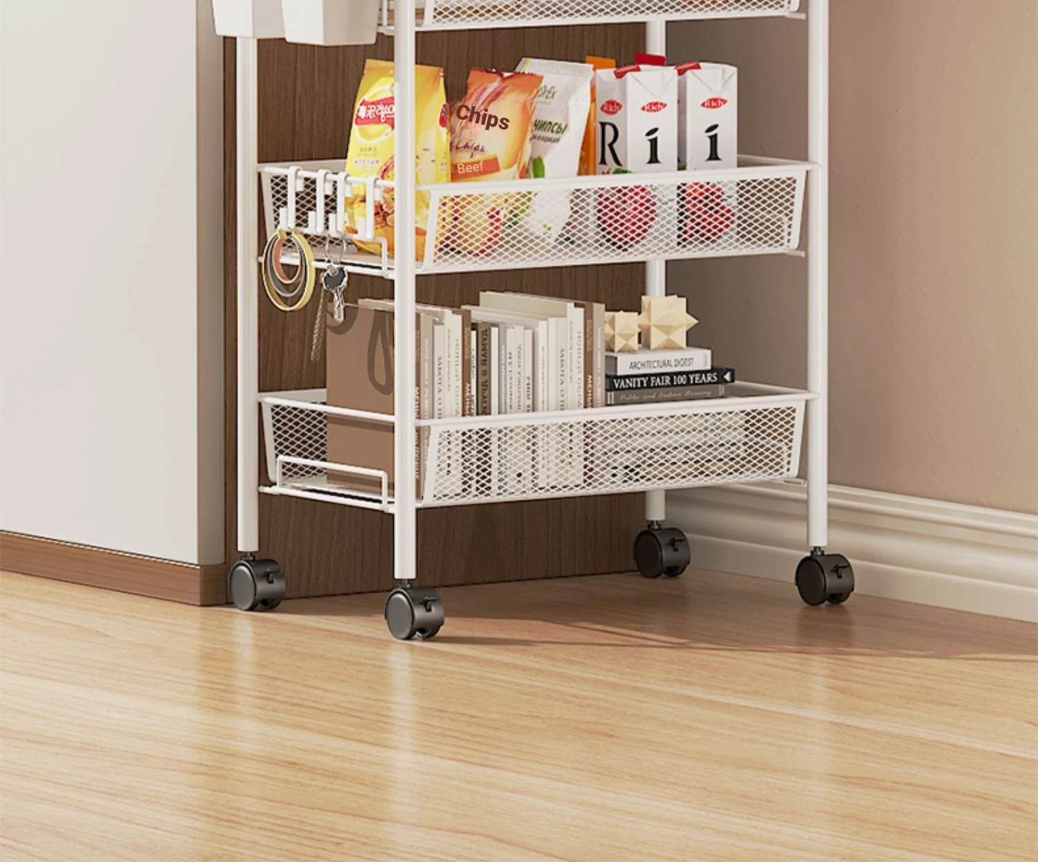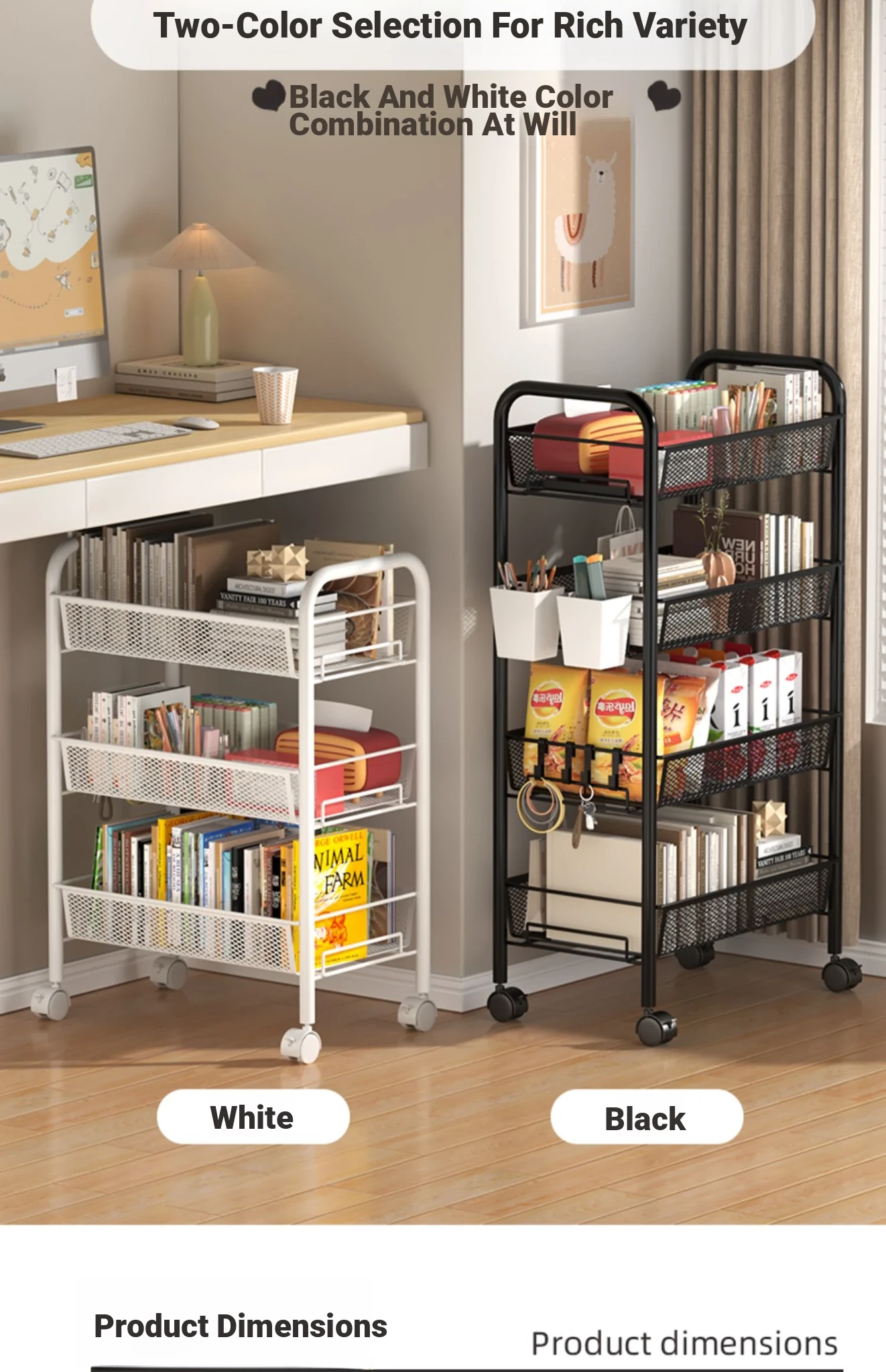 Stylish Rolling Bookshelf and Snack Cart - Movable Storage Rack with Wheels for Living Room, Perfect for Students' Books and Easy Organization!