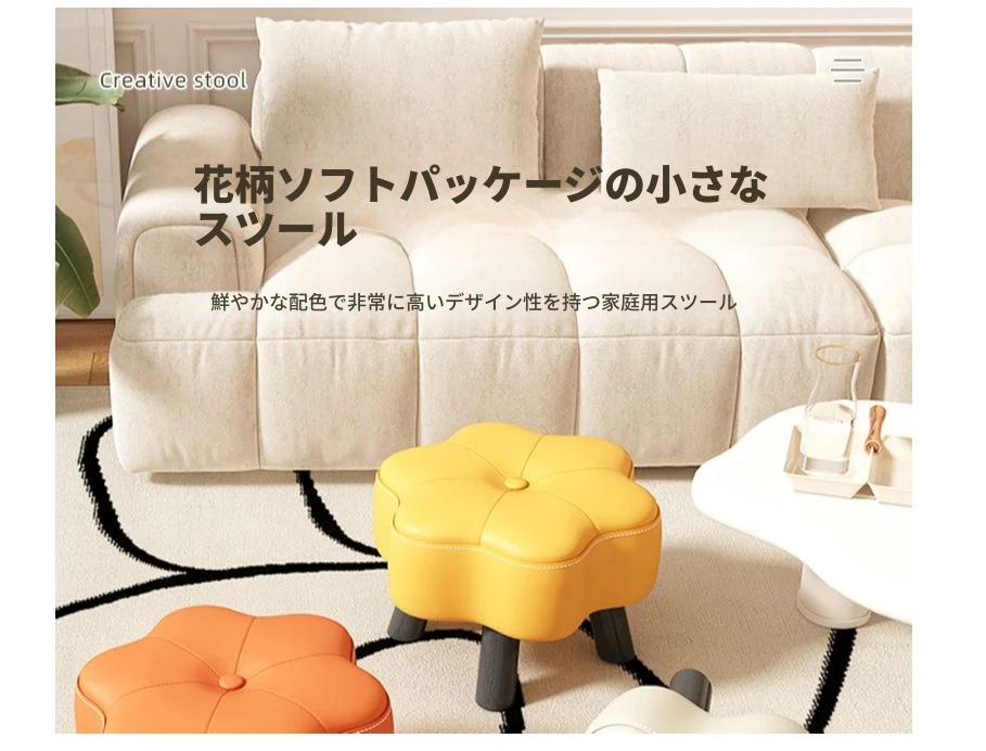おしゃれなリビング用小さなスツール|軽量で使いやすい|靴を履き替える時に便利|ソファやテーブルに最適|柔らかいクッション付き|子供にもぴったりなクリエイティブデザイン|快適な座り心地をお楽しみください!