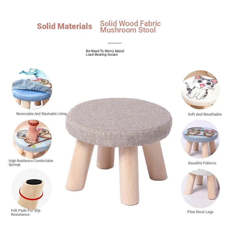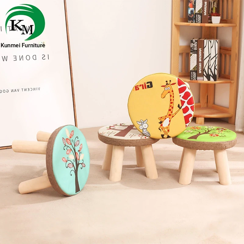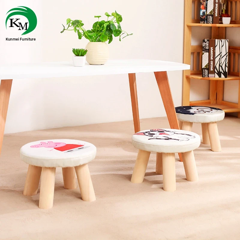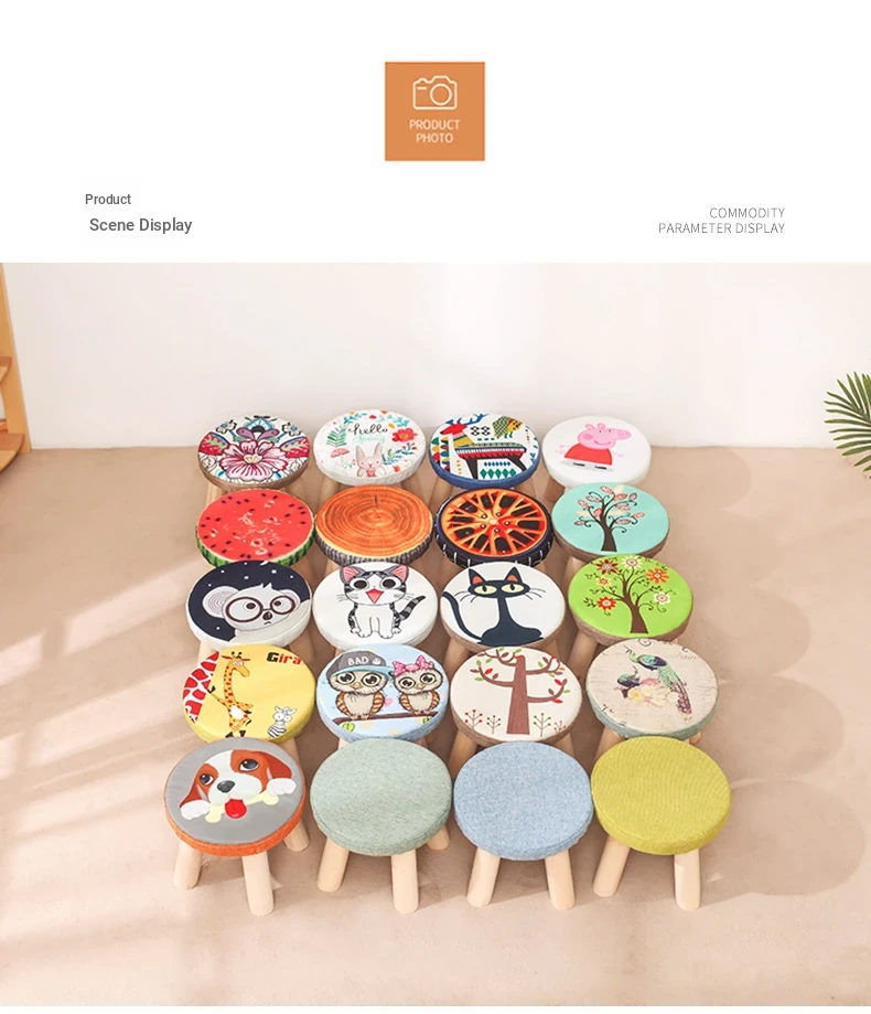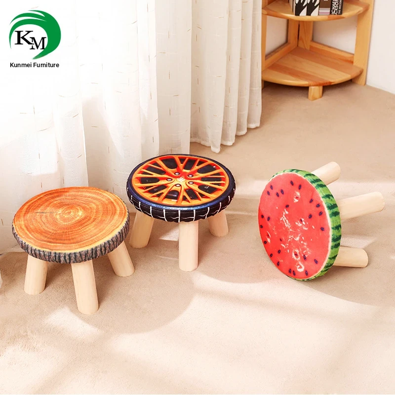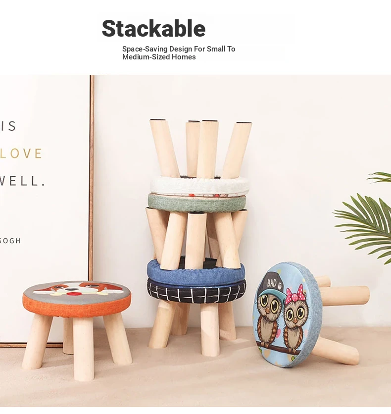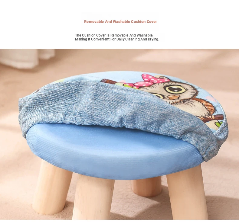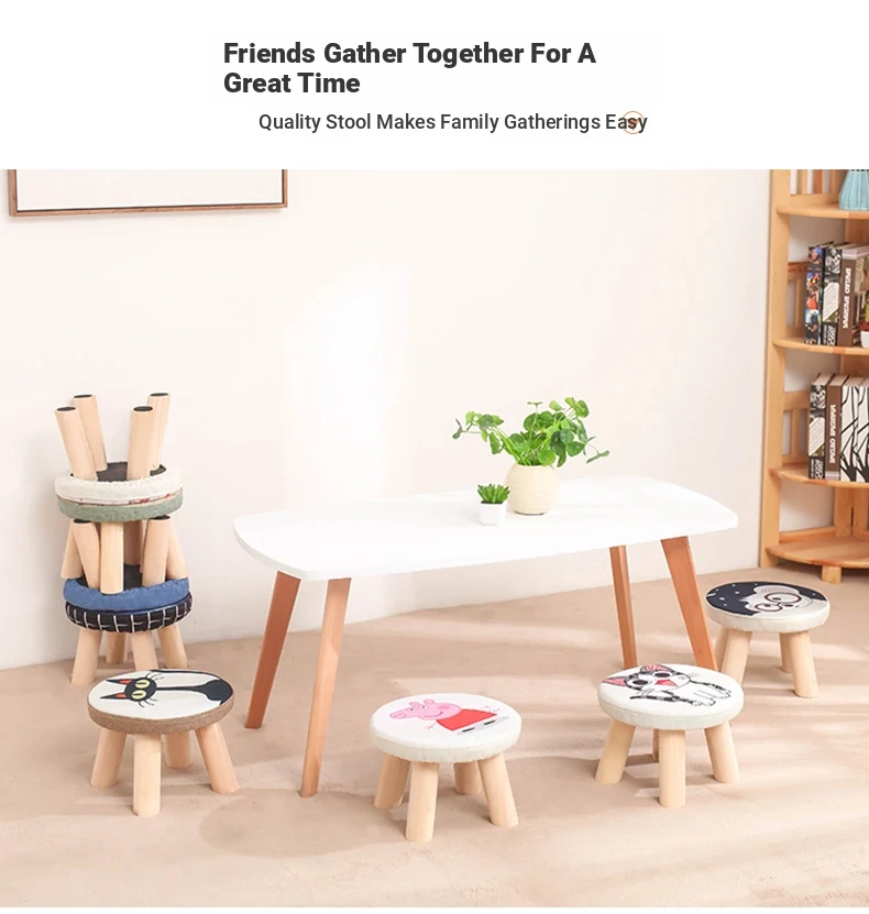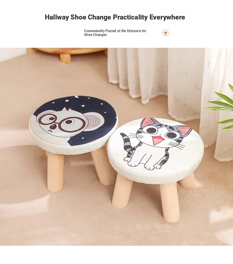 Stylish Solid Wood Stool for Home Use - Cute Round Stool for Kids, Creative Cartoon-Inspired Small Bench, Perfect for Children's Sofa and Play Areas