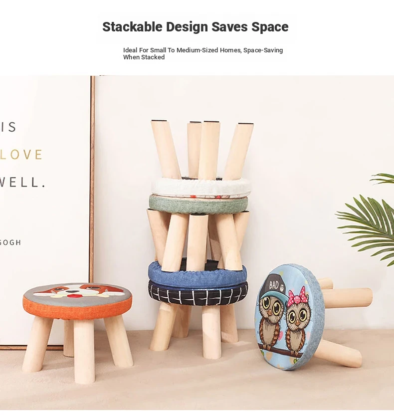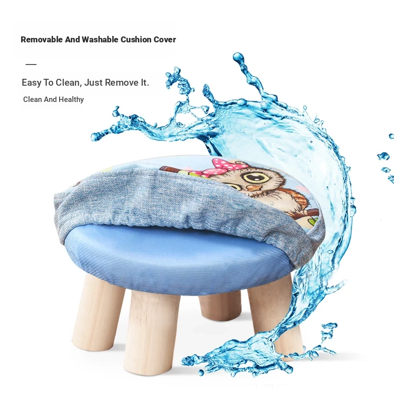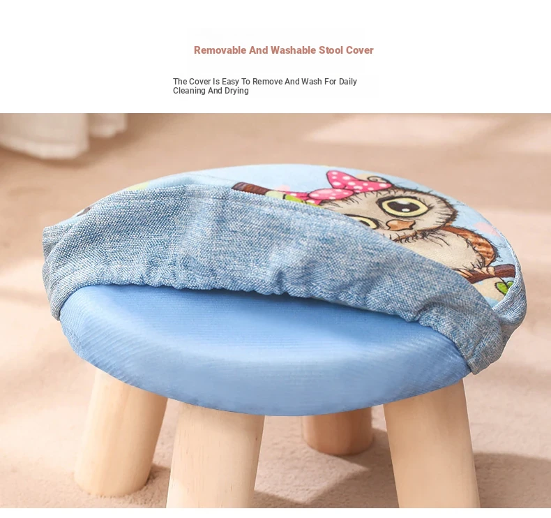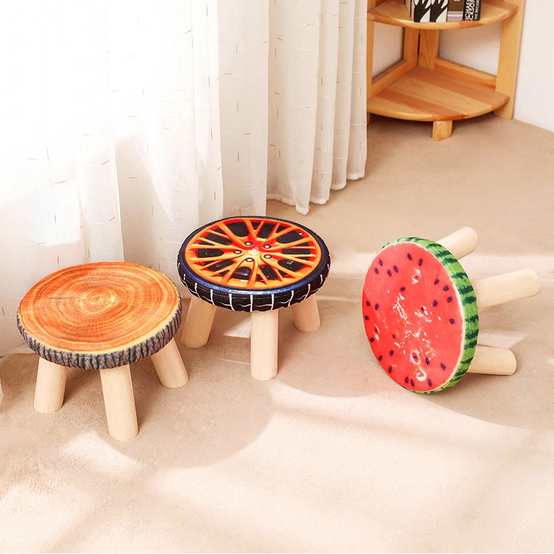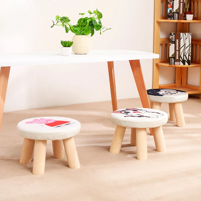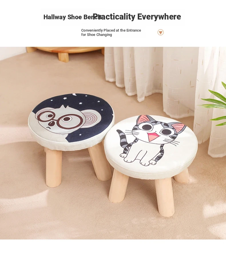 Stylish Solid Wood Stool - Versatile Low Shoe Bench, Round Seat for Adults, Creative Cartoon Design, Perfect for Living Room and Entryway