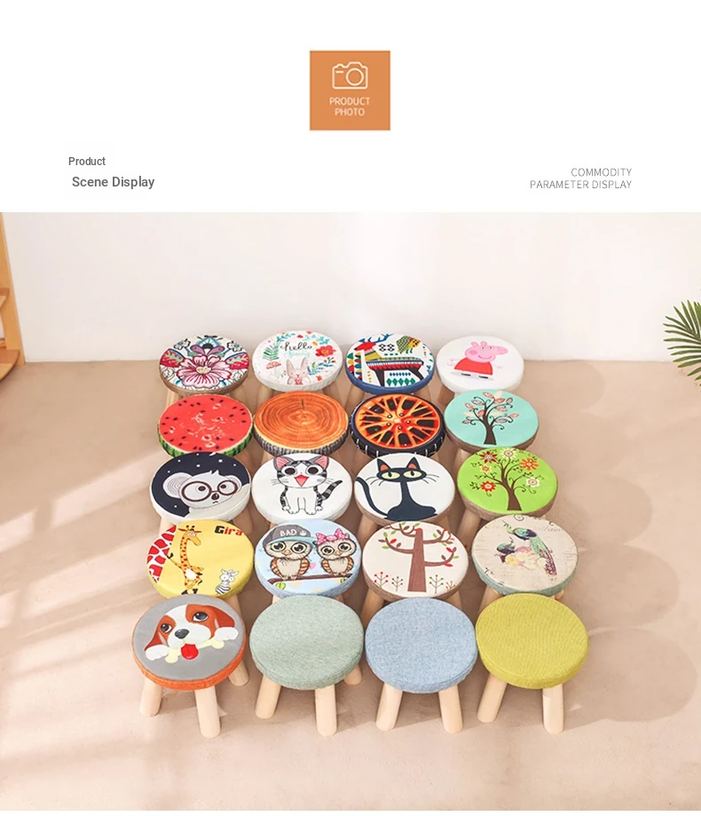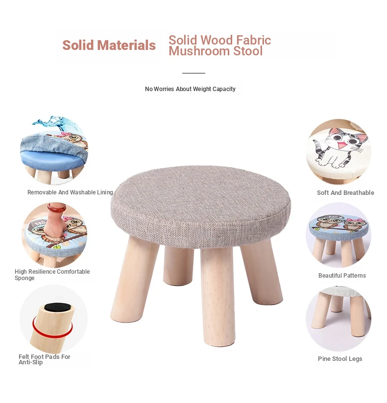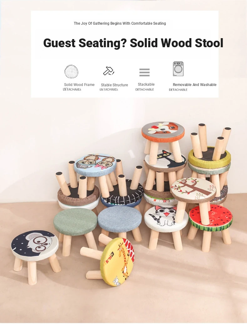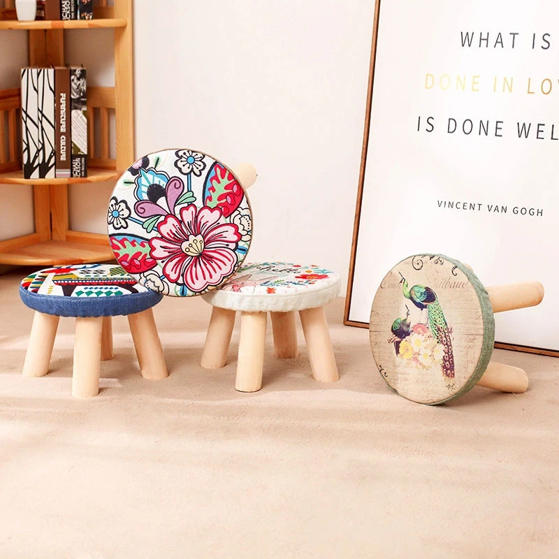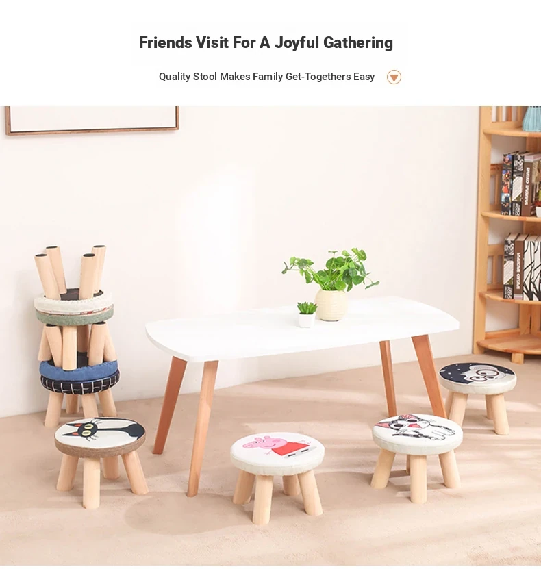 Stylish Solid Wood Stool - Versatile Low Shoe Bench, Round Seat for Adults, Creative Cartoon Design, Perfect for Living Room and Entryway