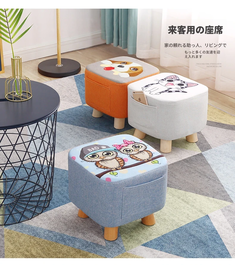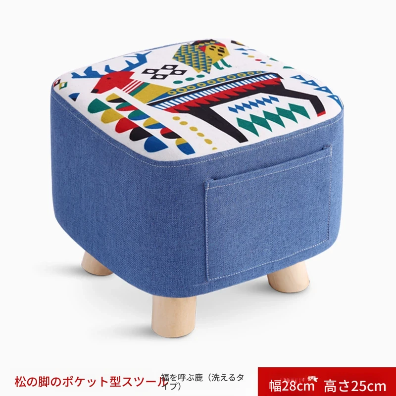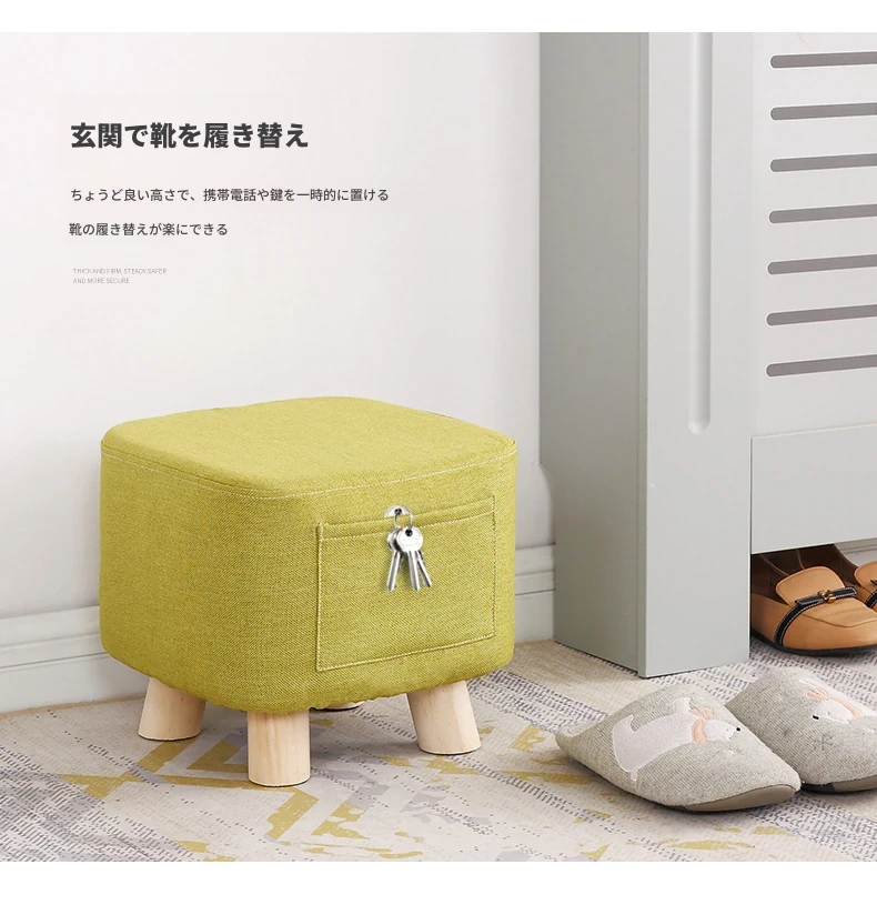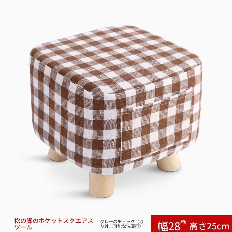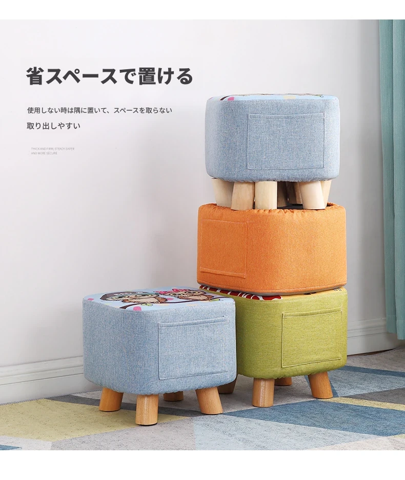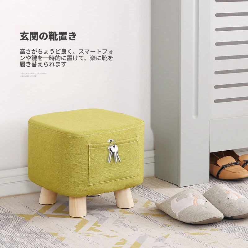 おしゃれなリビング用木製スツール - ソファの下に置けるシンプルな靴置きにも最適!大人も使える布製のかわいいスツール。どんなインテリアにもマッチするデザインで、快適な座り心地を提供します。