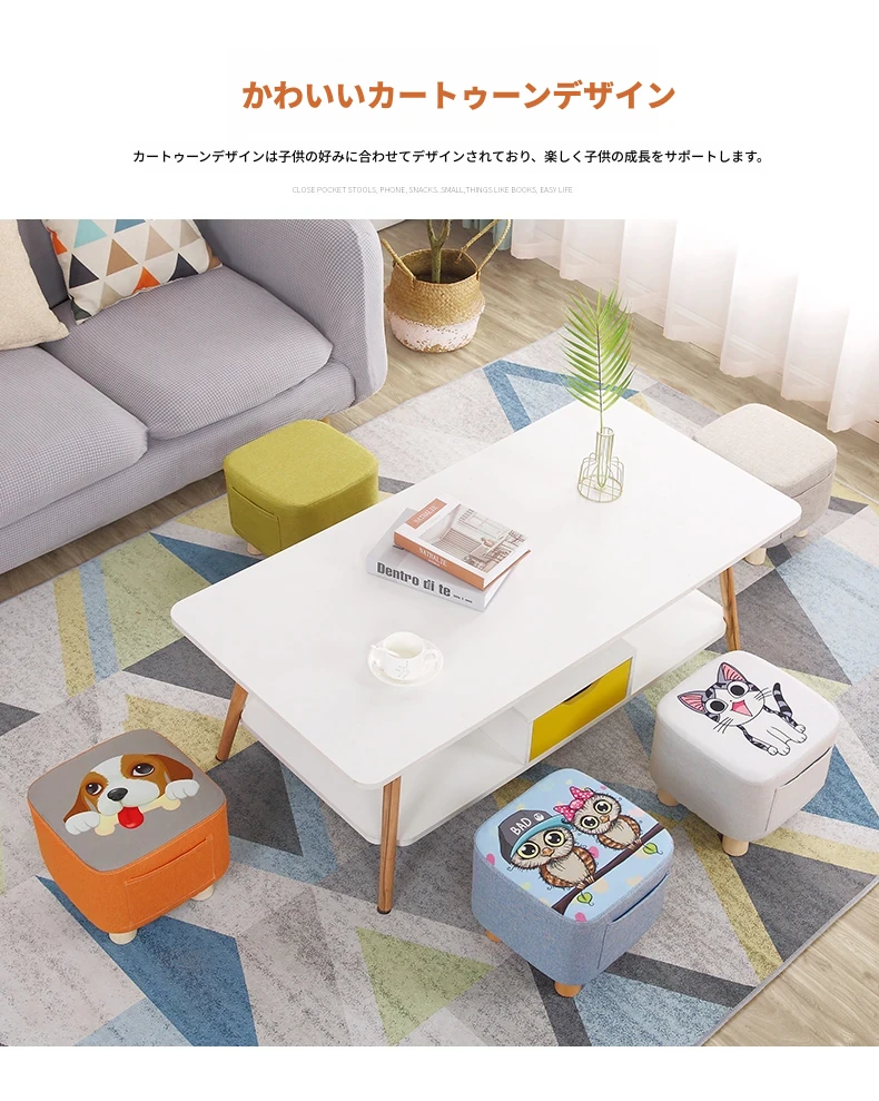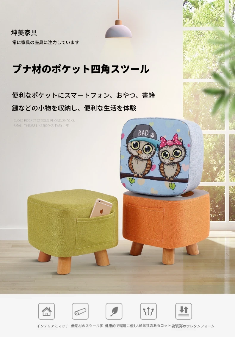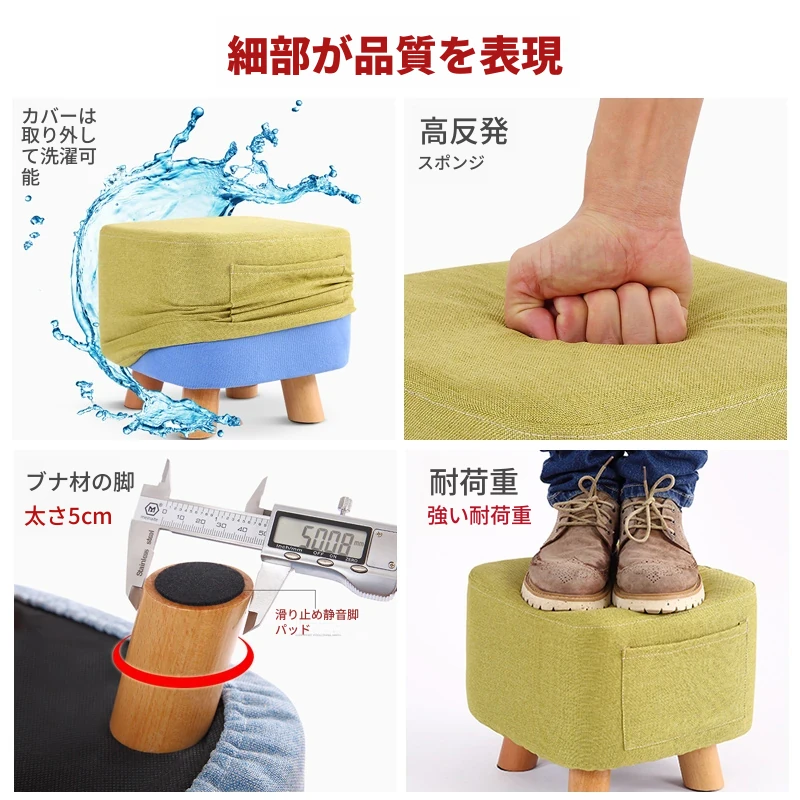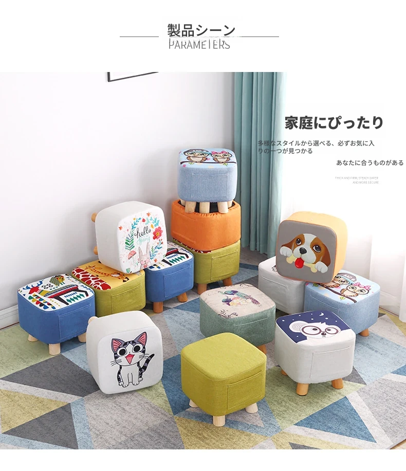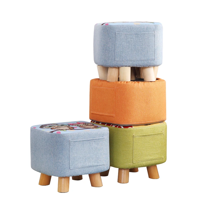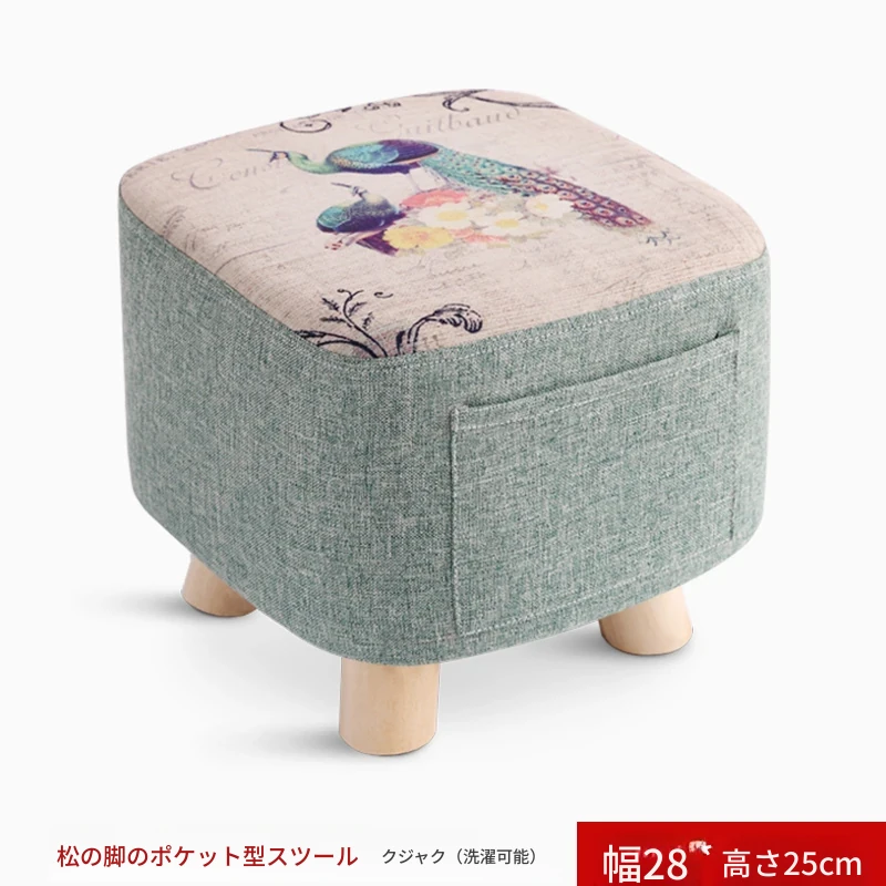 おしゃれなリビング用木製スツール - ソファの下に置けるシンプルな靴置きにも最適!大人も使える布製のかわいいスツール。どんなインテリアにもマッチするデザインで、快適な座り心地を提供します。