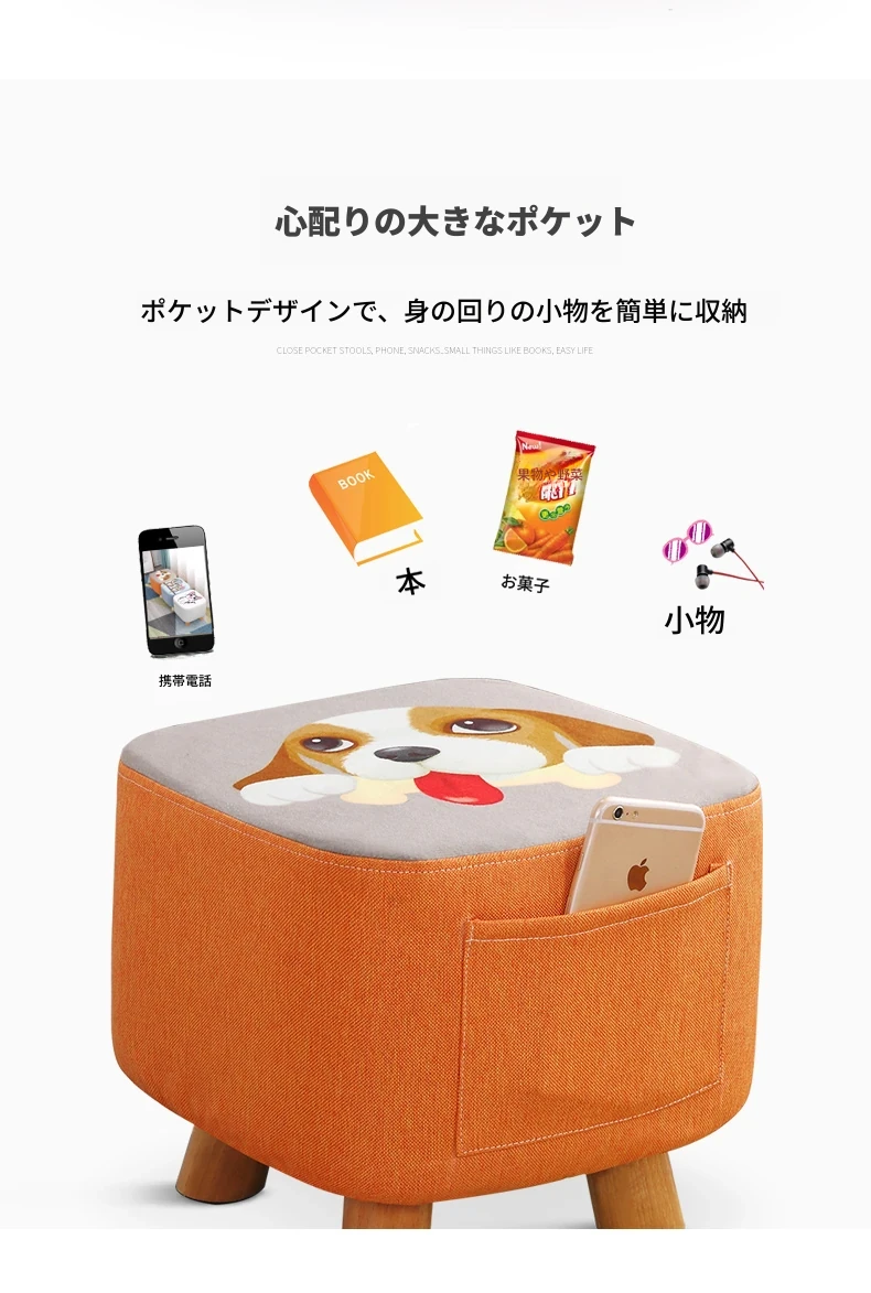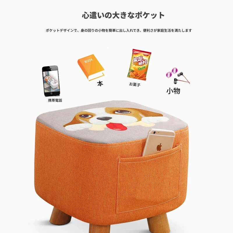 松の脚-ポケットスクエアスツール-かわいい犬-カバーは取り外し可能