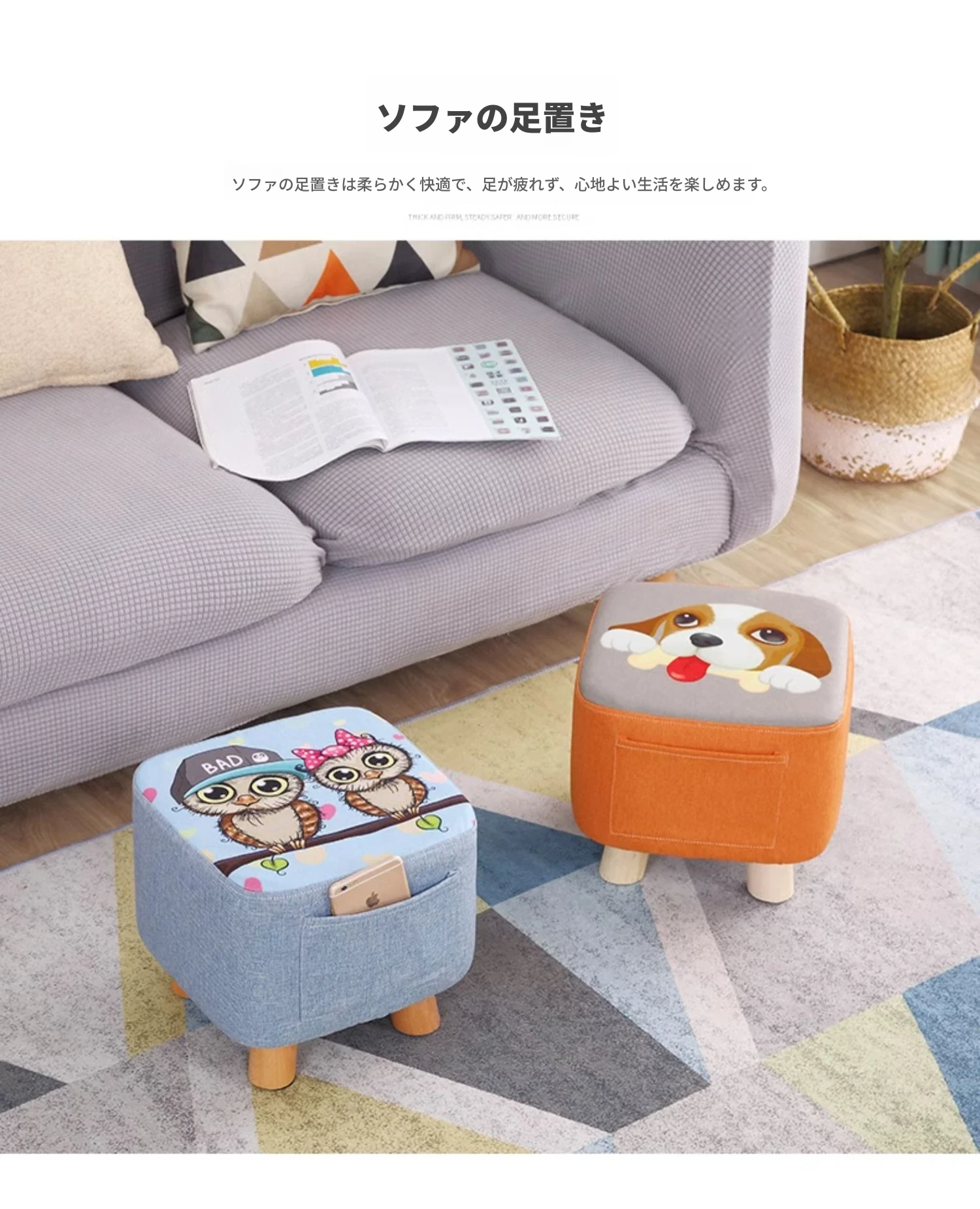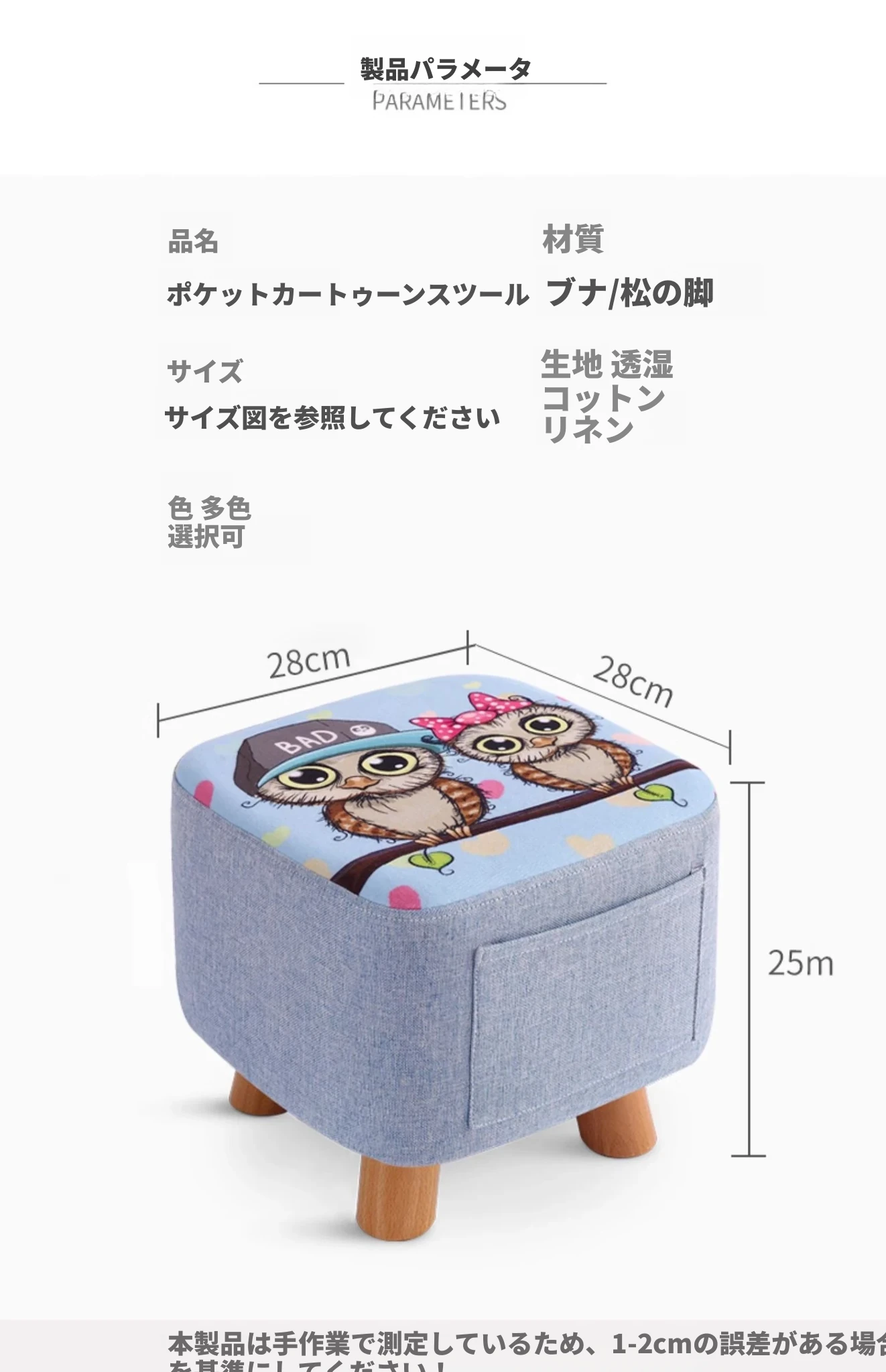 松の脚-ポケットスクエアスツール-フクロウ-カバーは取り外し可能