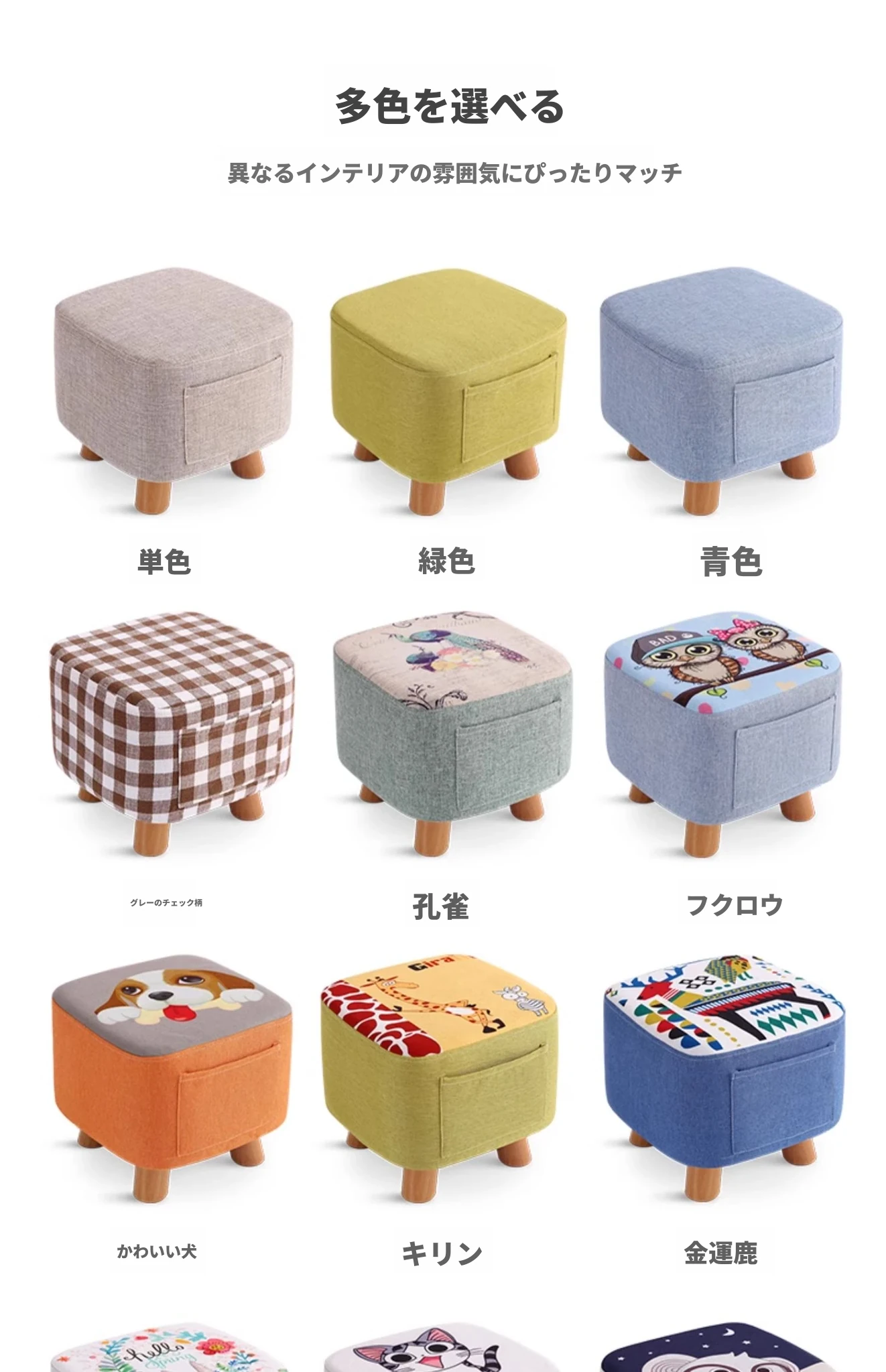 松の脚-ポケットスクエアスツール-キリン-カバーは取り外し可能
