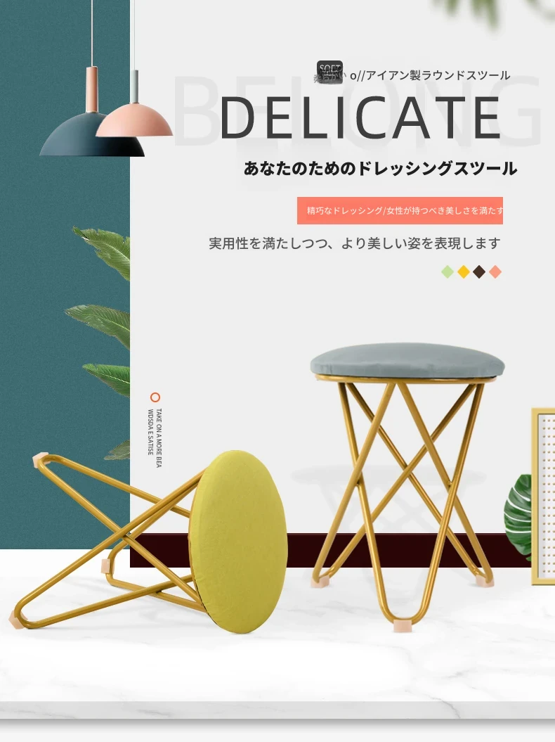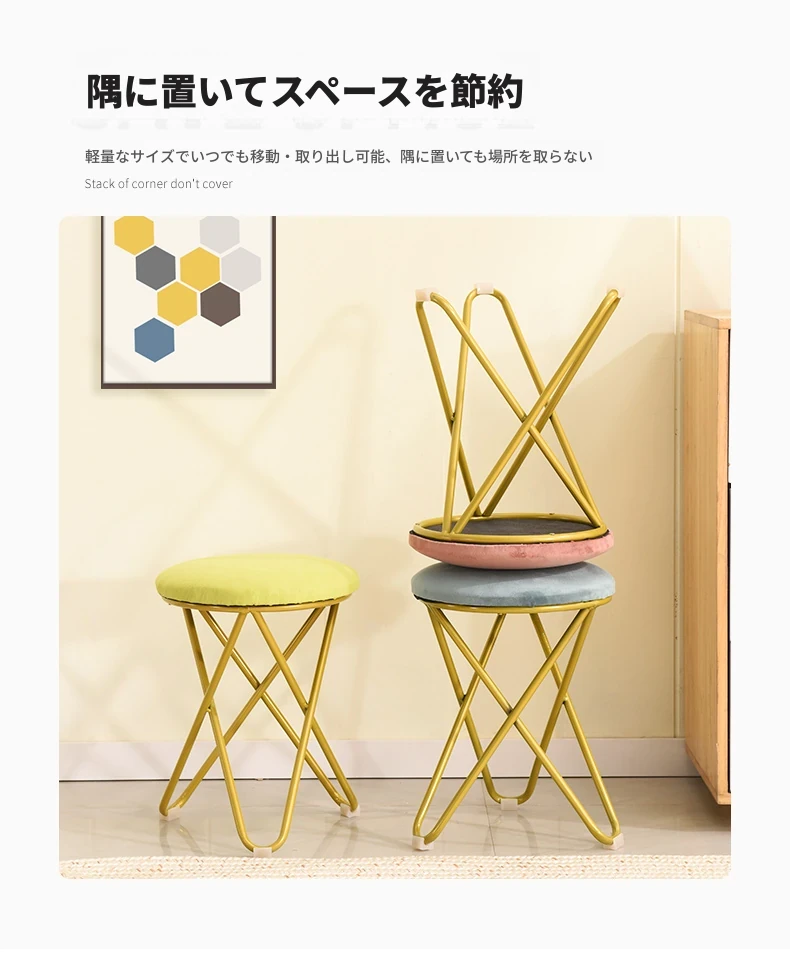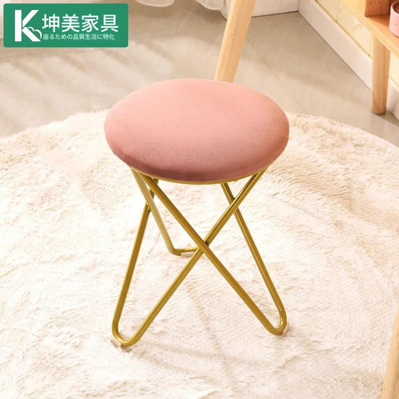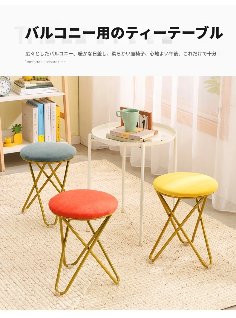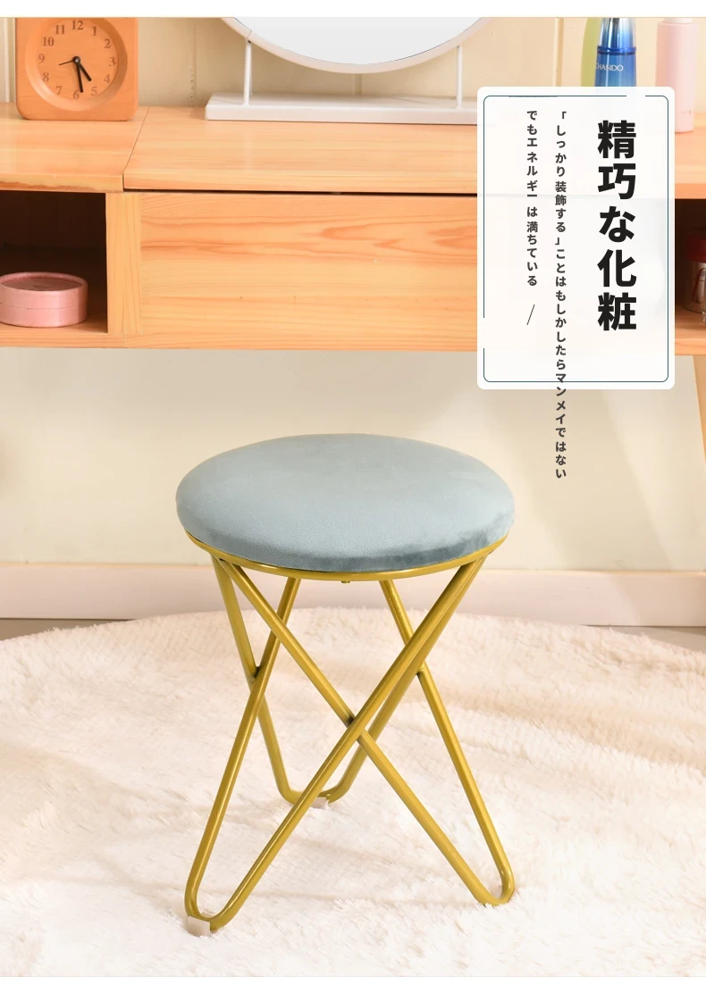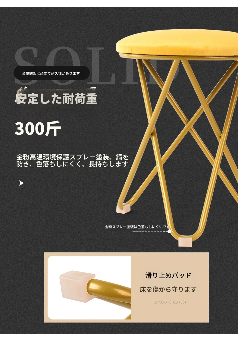 おしゃれなメイク用スツール|可愛いインテリアに最適|北欧デザインの軽やかな化粧台|女子力アップ!自宅でのネイルやメイクにぴったりな金属製スツール!