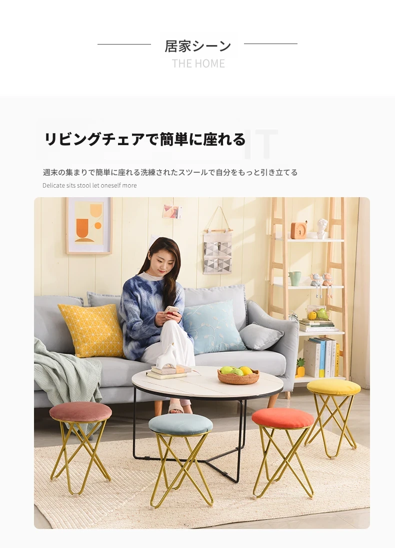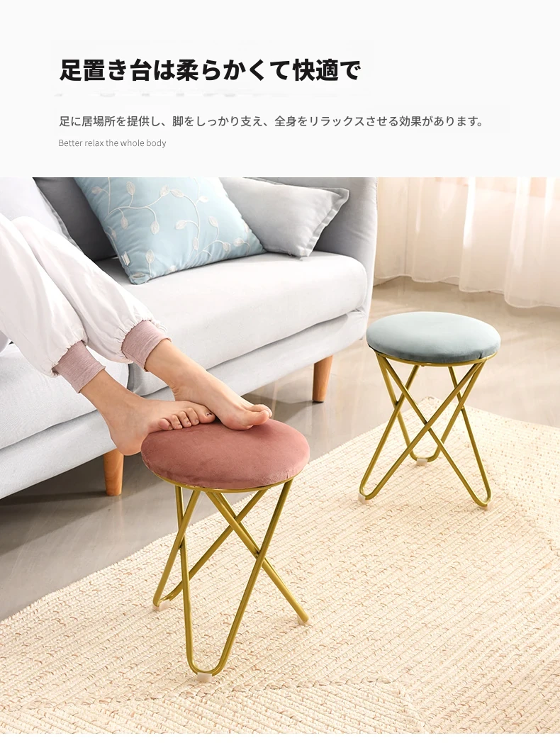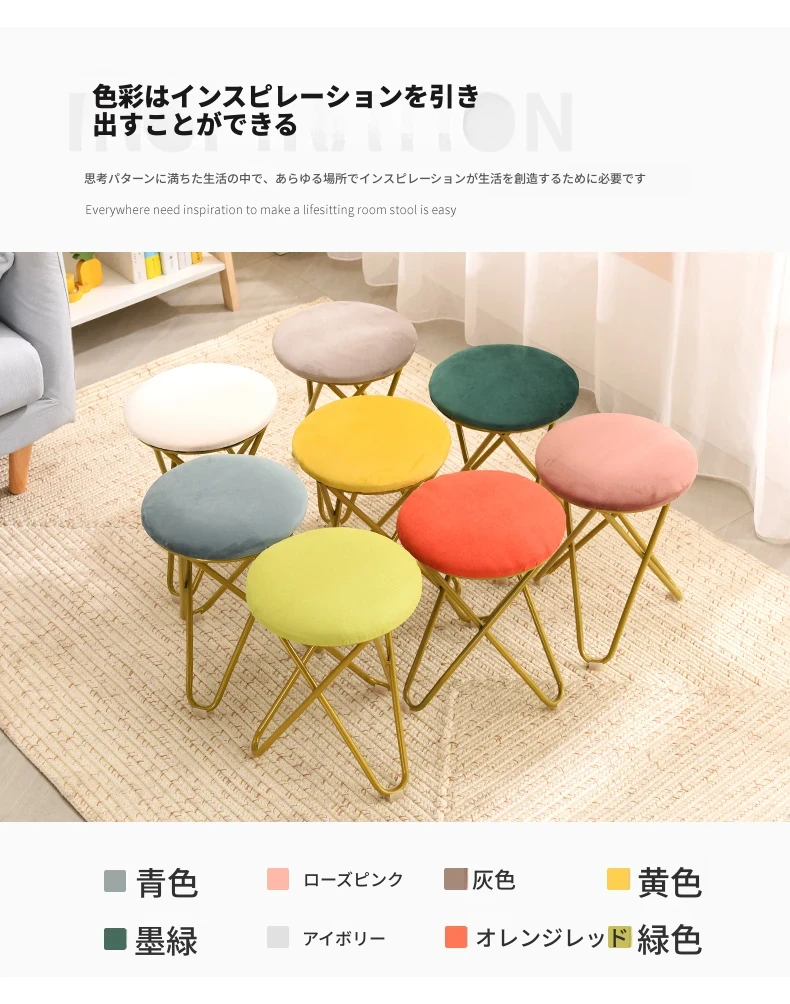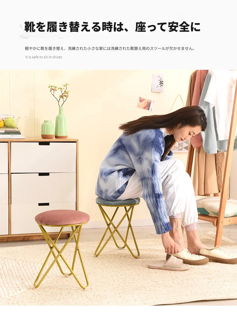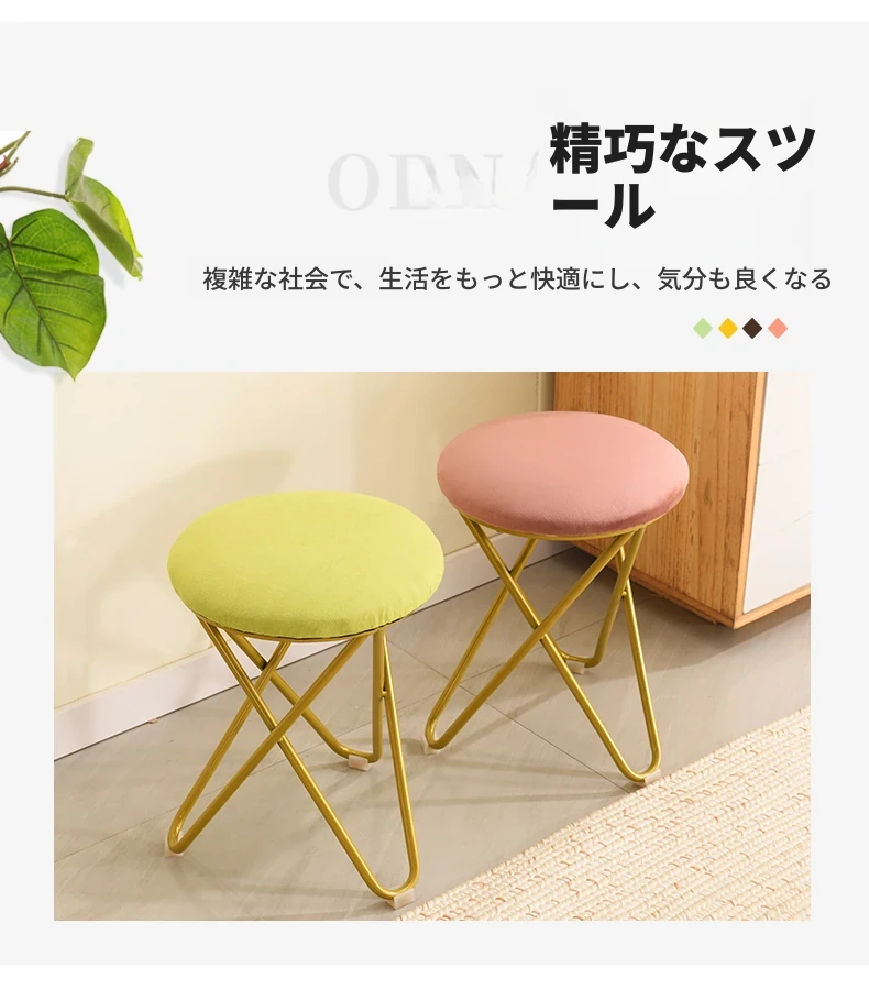 おしゃれなメイク用スツール|可愛いインテリアに最適|北欧デザインの軽やかな化粧台|女子力アップ!自宅でのネイルやメイクにぴったりな金属製スツール!