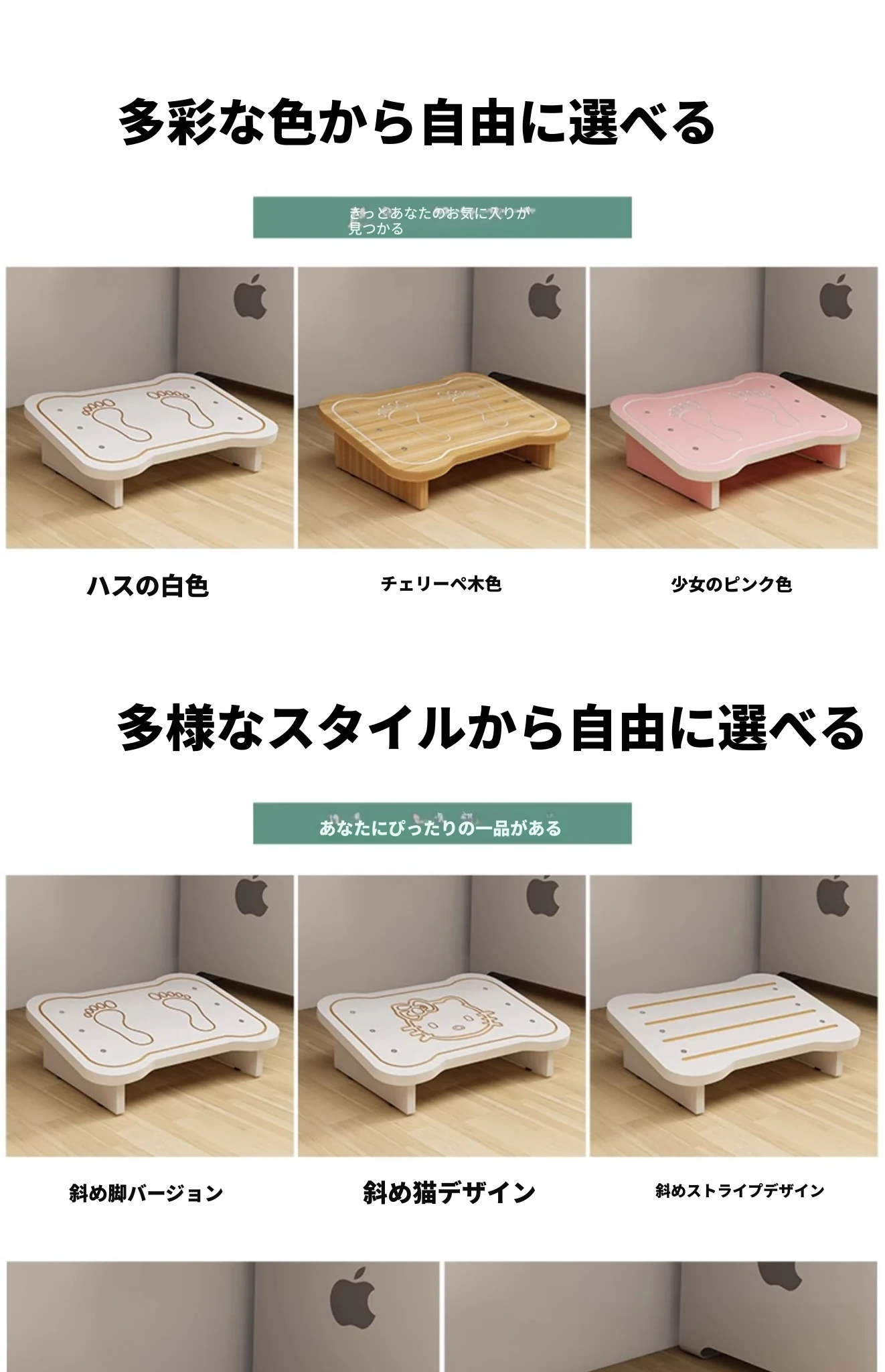 【無垢材】少女ピンク足跡-スラント-大サイズ