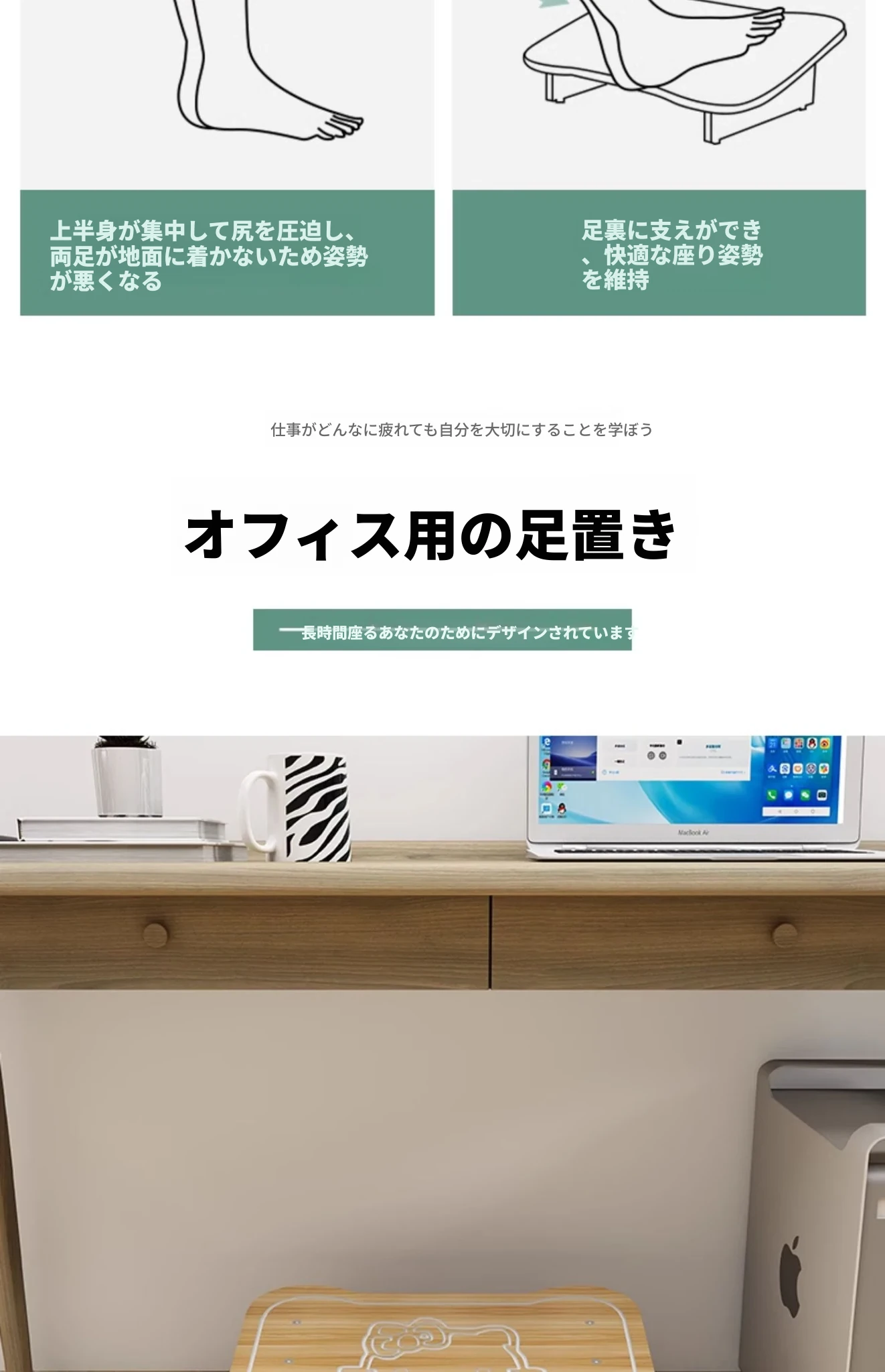 デスク下フットレスト オフィス用 つま先を横にするのを防ぐ神アイテム!話題の足置き台で快適な姿勢をサポート。トイレでも使える便利なフットペダル!足の疲れを軽減し、仕事やリラックスタイムをもっと楽に!