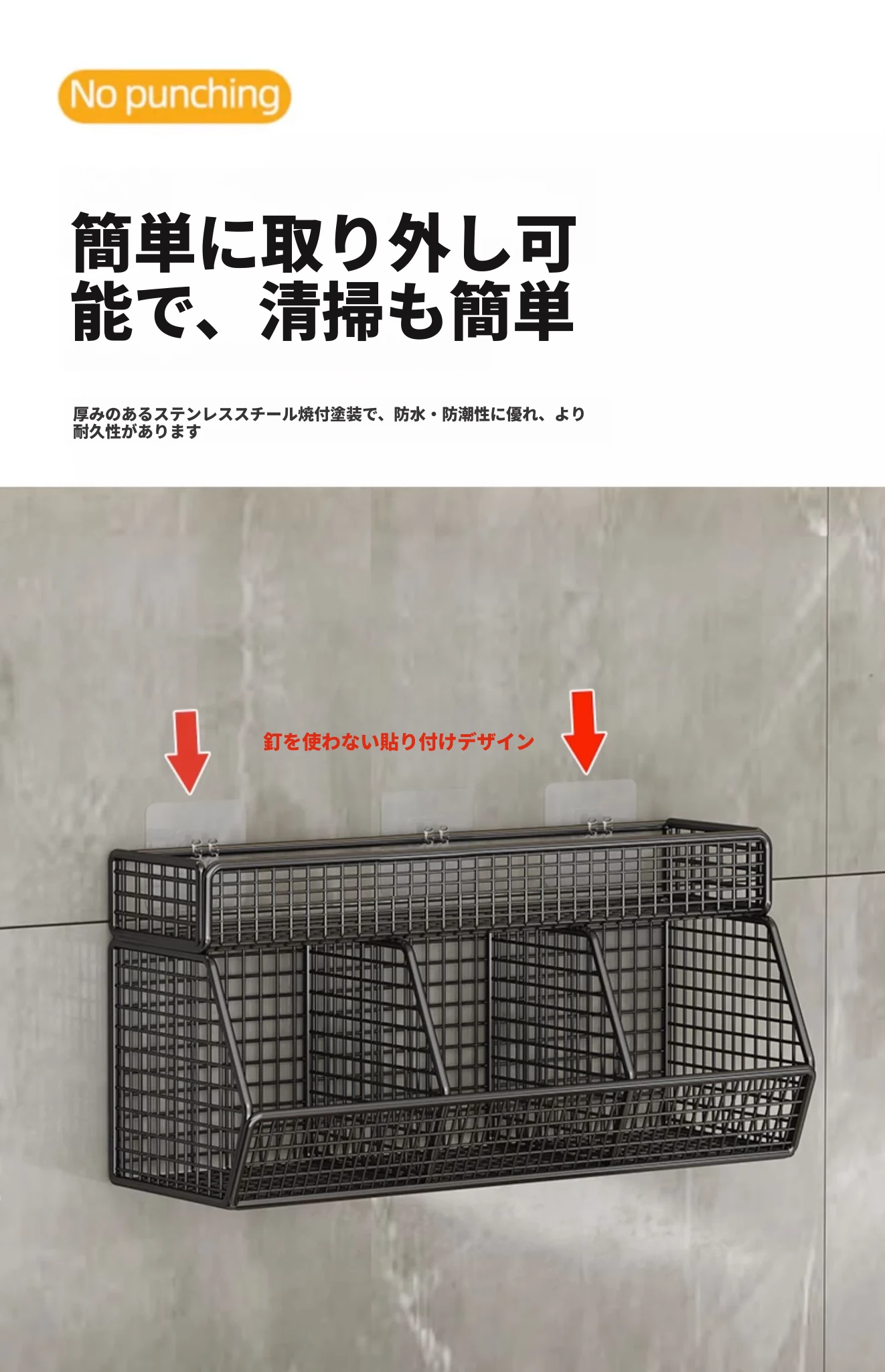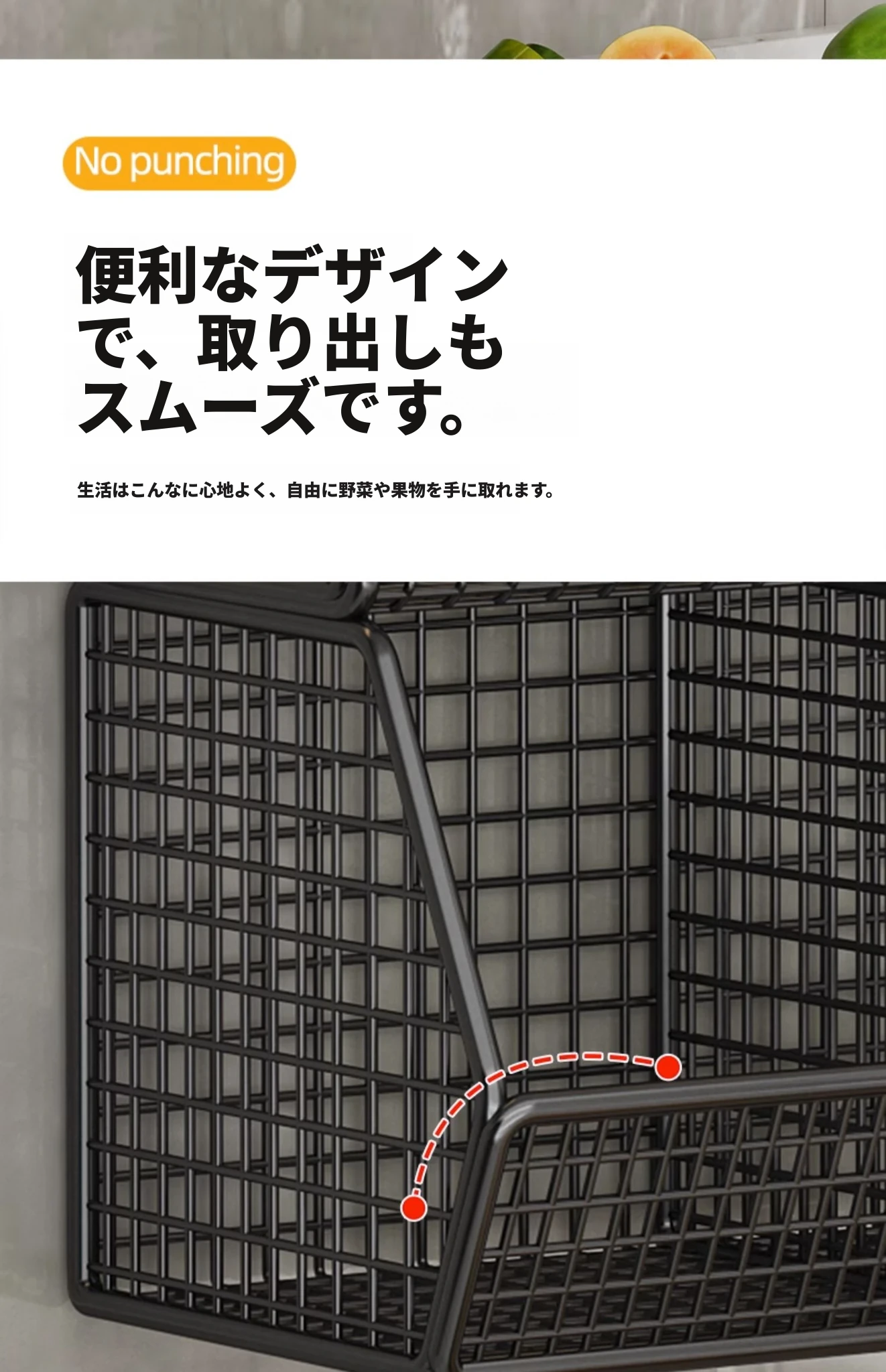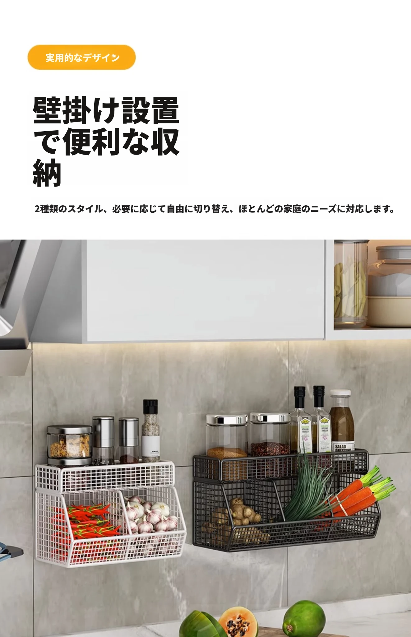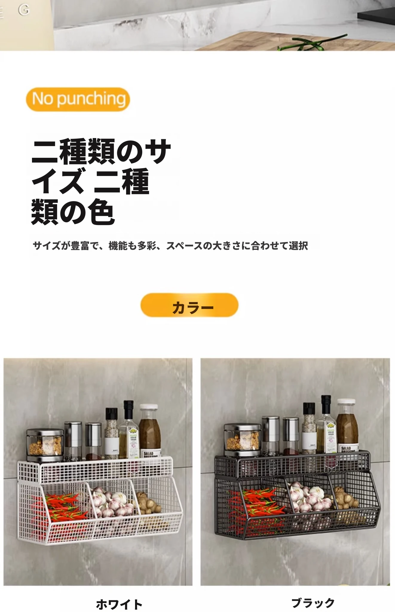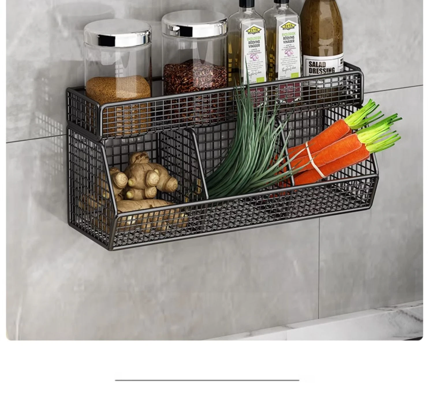 キッチン壁掛け多機能収納ラック - ネギ、生姜、ニンニク専用!壁に穴を開けずに取り付け可能な調味料ボトル収納バスケットで、整理整頓もおしゃれに!