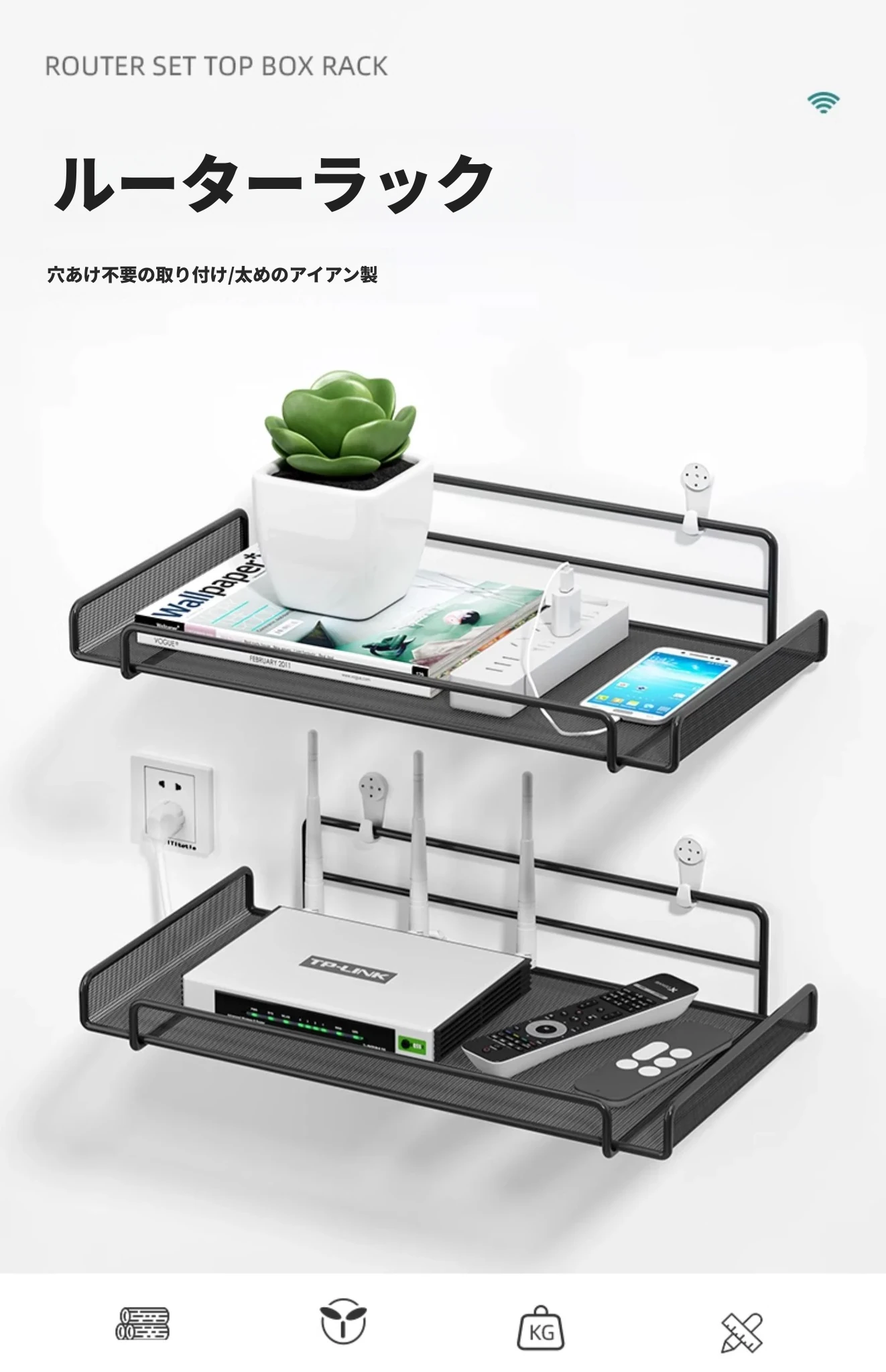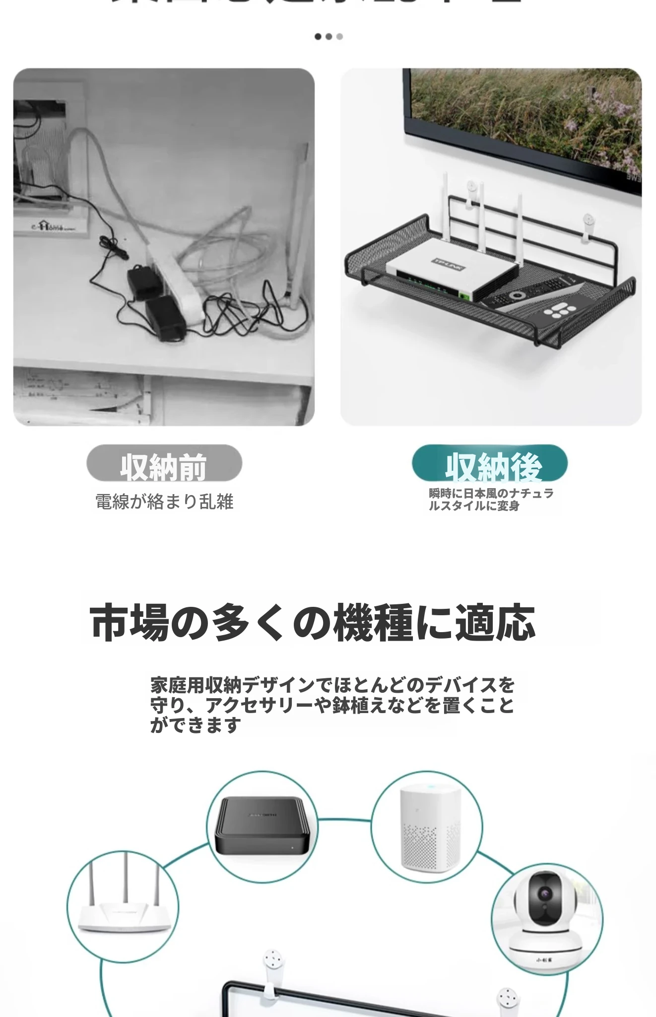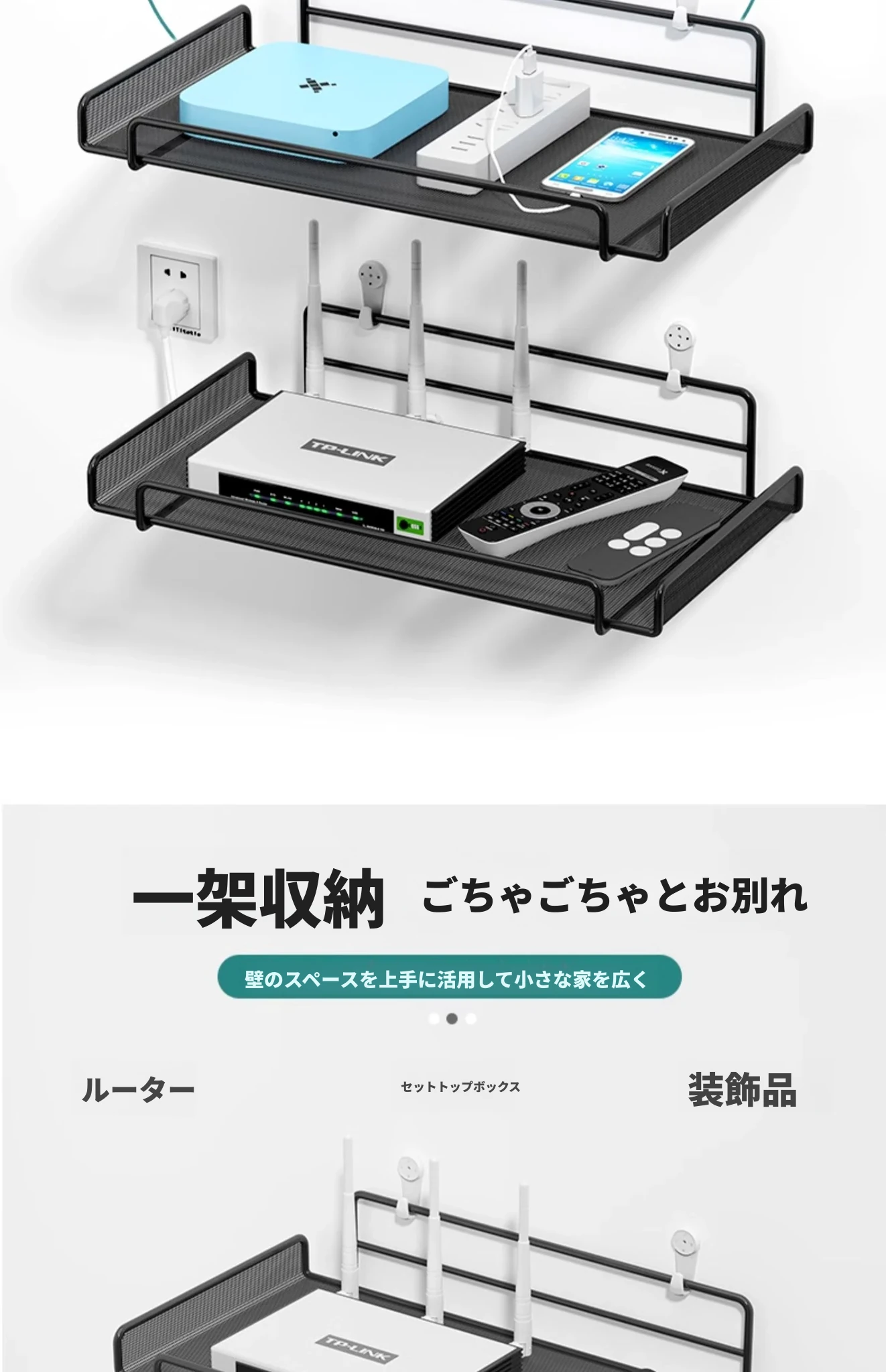 壁掛けルーター収納ラック - 簡単取り付けで壁に穴を開けずに、テレビボックスやWi-Fiルーターをスッキリ収納!リビングを美しく整頓し、快適なネット環境を実現します。