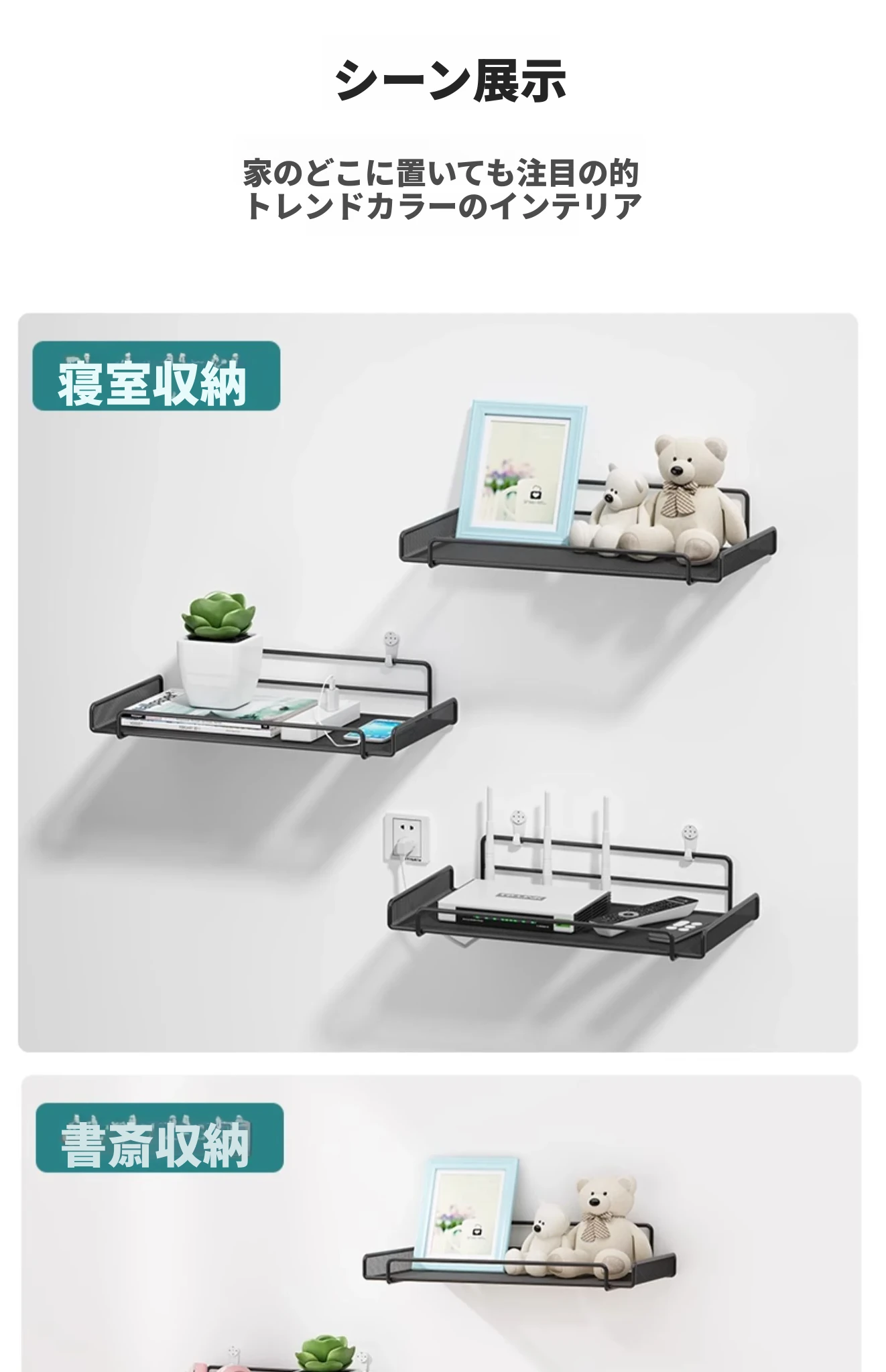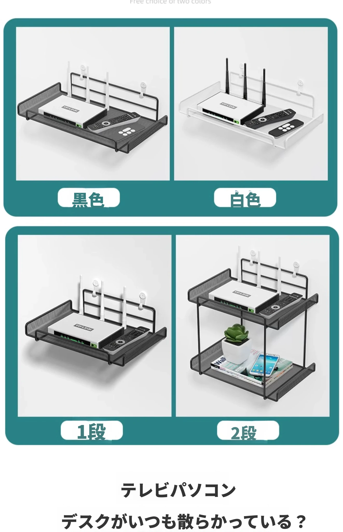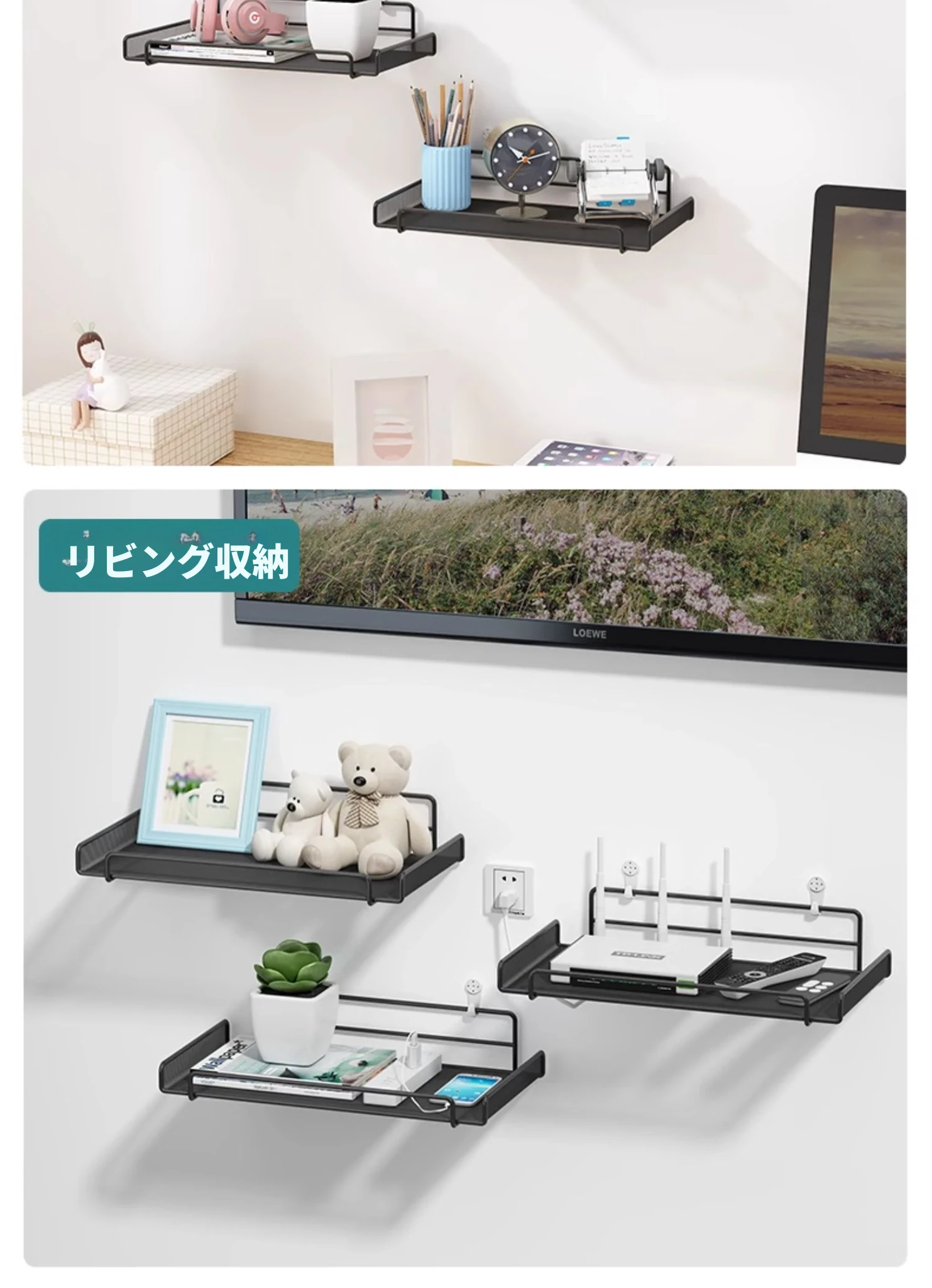 壁掛けルーター収納ラック - 簡単取り付けで壁に穴を開けずに、テレビボックスやWi-Fiルーターをスッキリ収納!リビングを美しく整頓し、快適なネット環境を実現します。