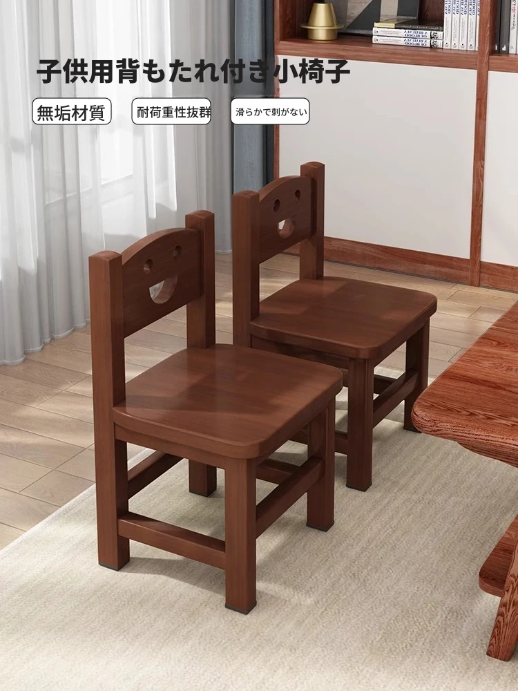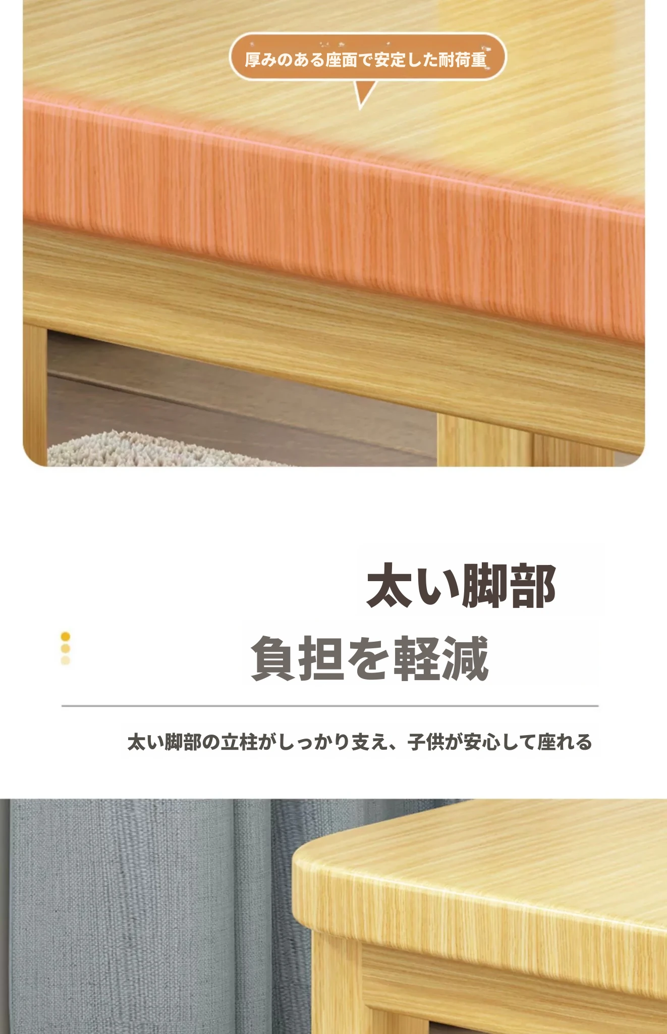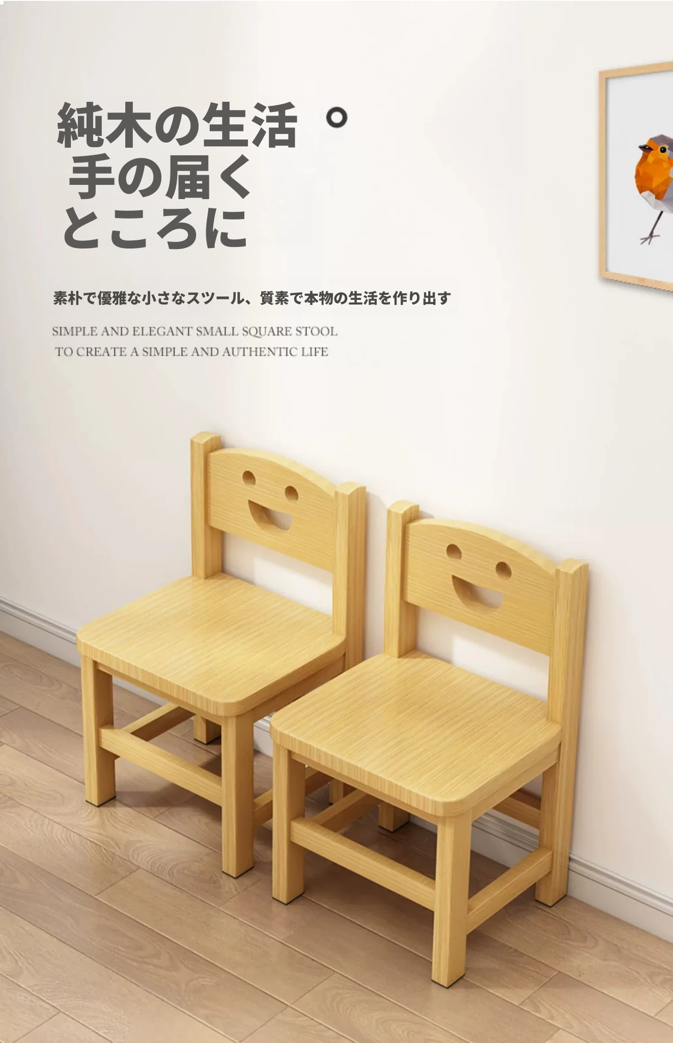 木製の背もたれ付きベンチ - 笑顔のデザインで子供たちを魅了!幼稚園や家庭での学習、食事に最適なコンパクトなチェア。安心の素材で、楽しい時間をサポートします!