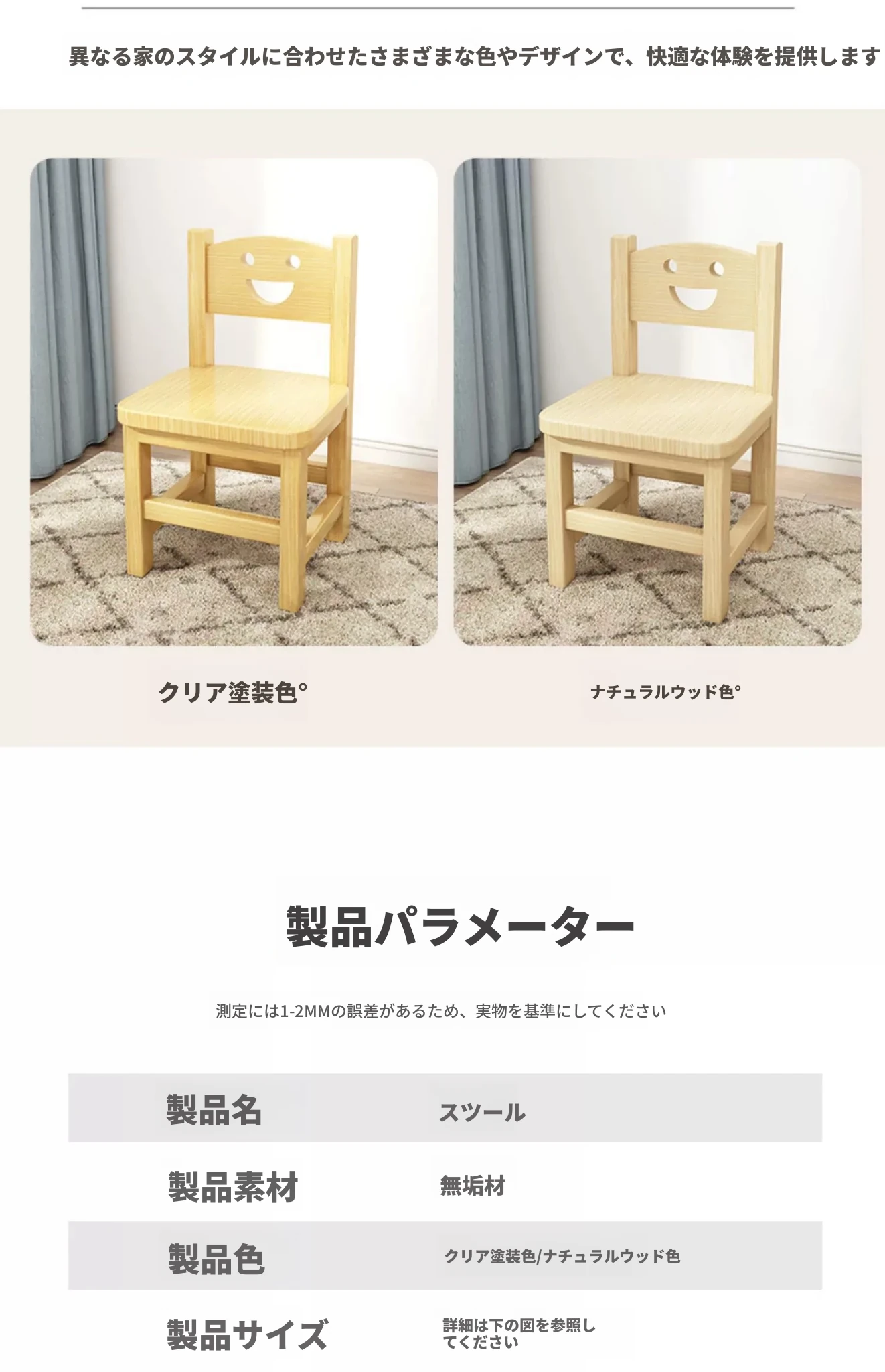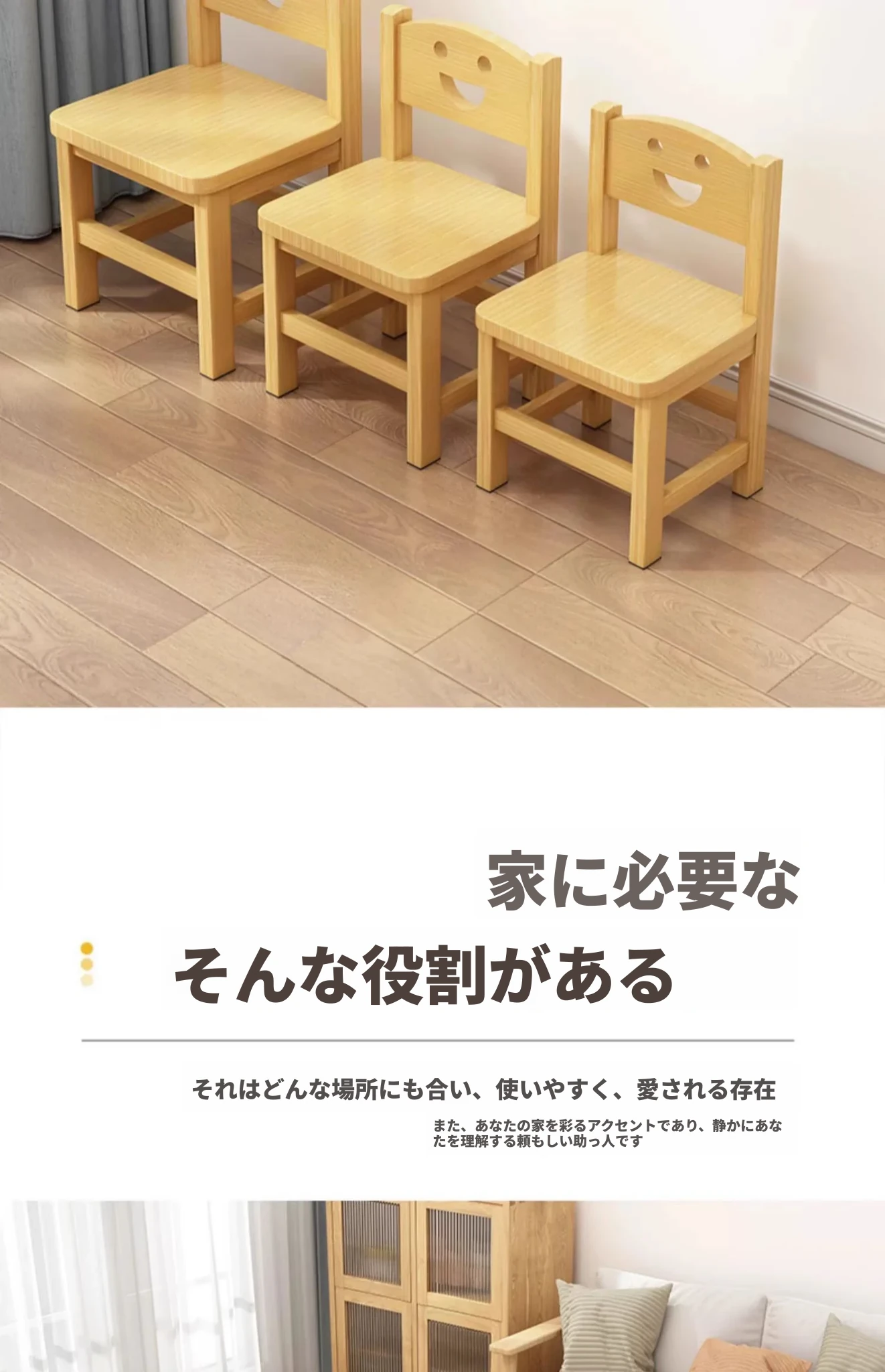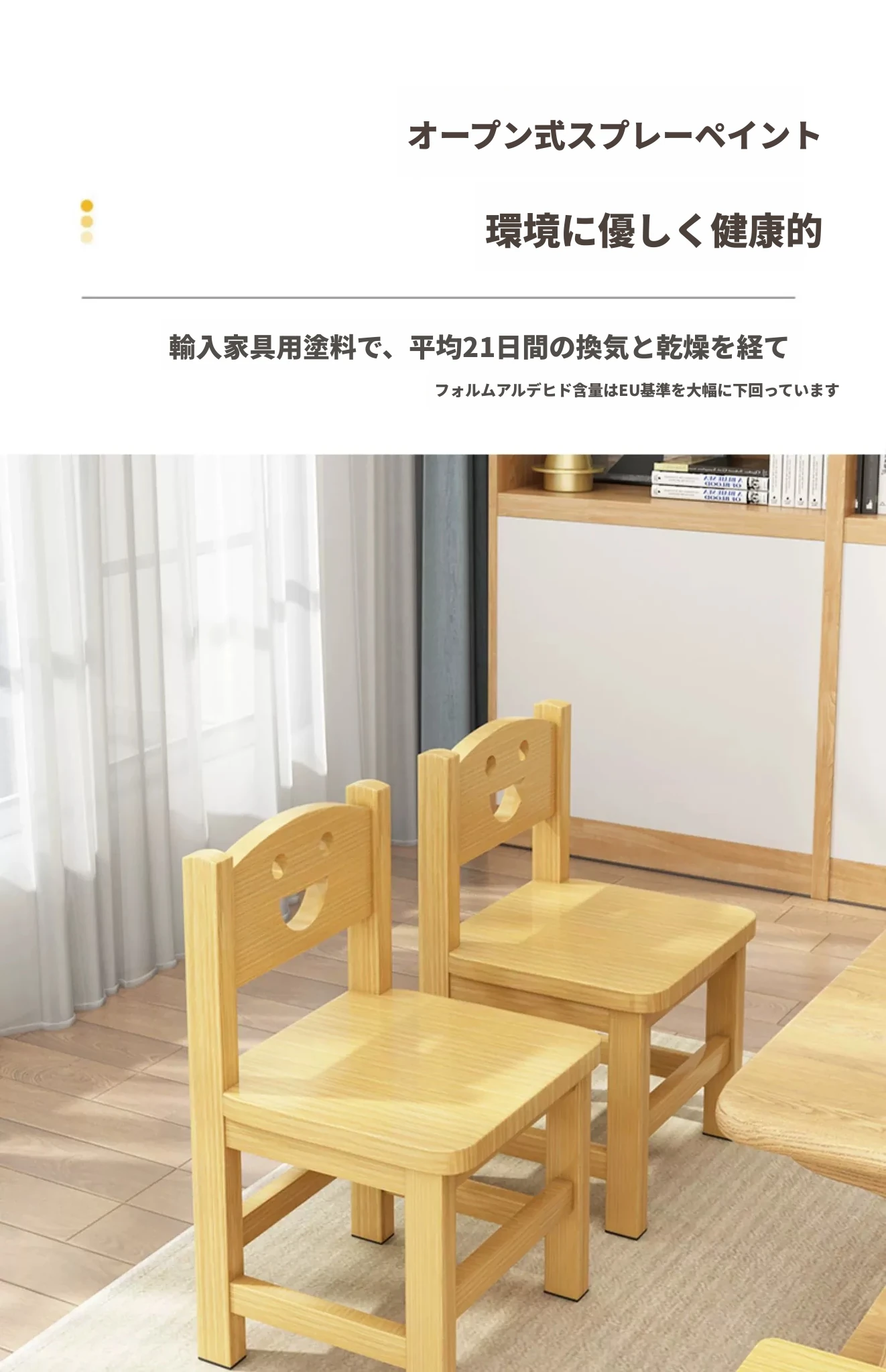 木製の背もたれ付きベンチ - 笑顔のデザインで子供たちを魅了!幼稚園や家庭での学習、食事に最適なコンパクトなチェア。安心の素材で、楽しい時間をサポートします!