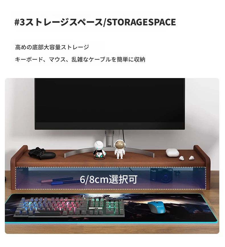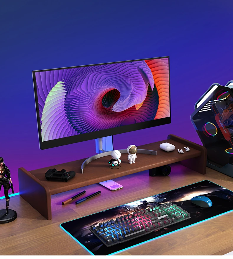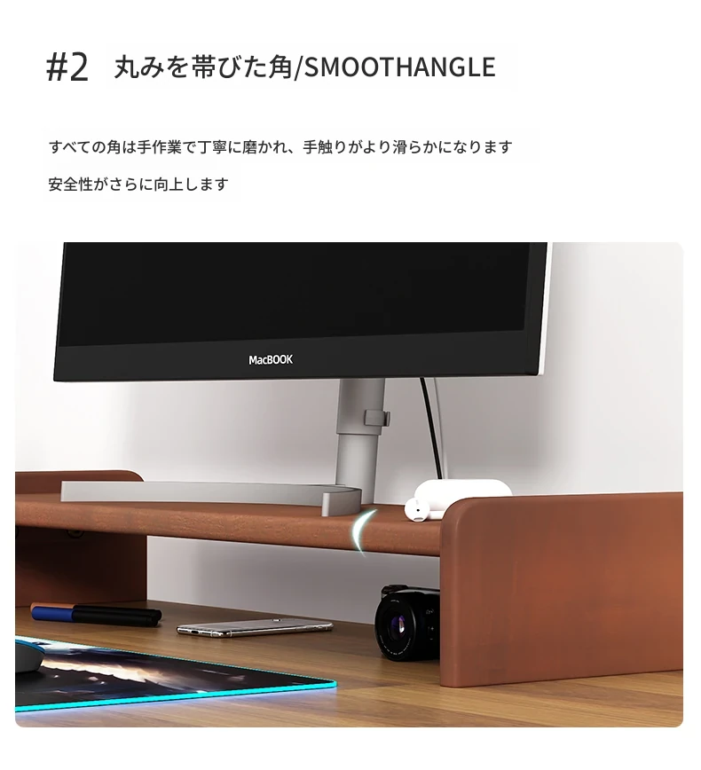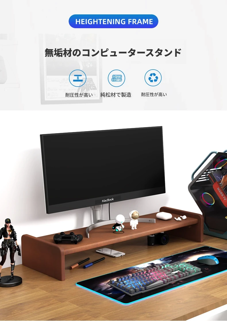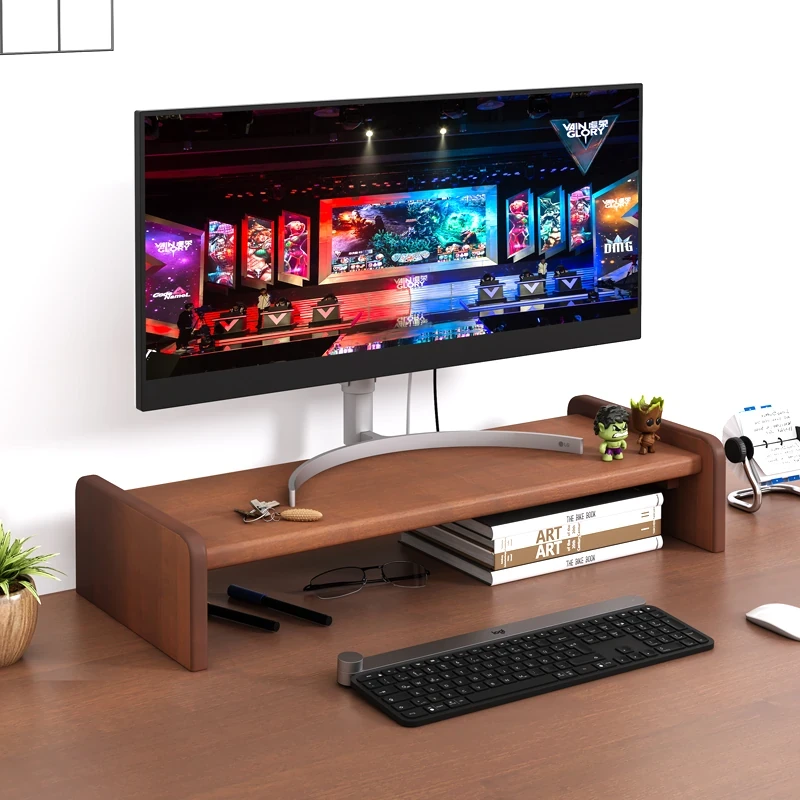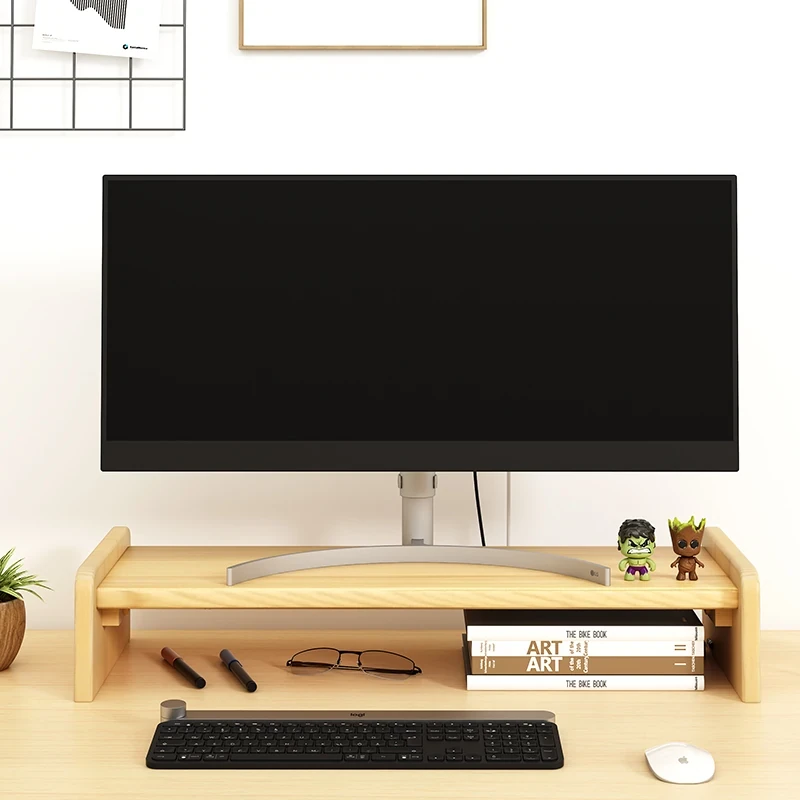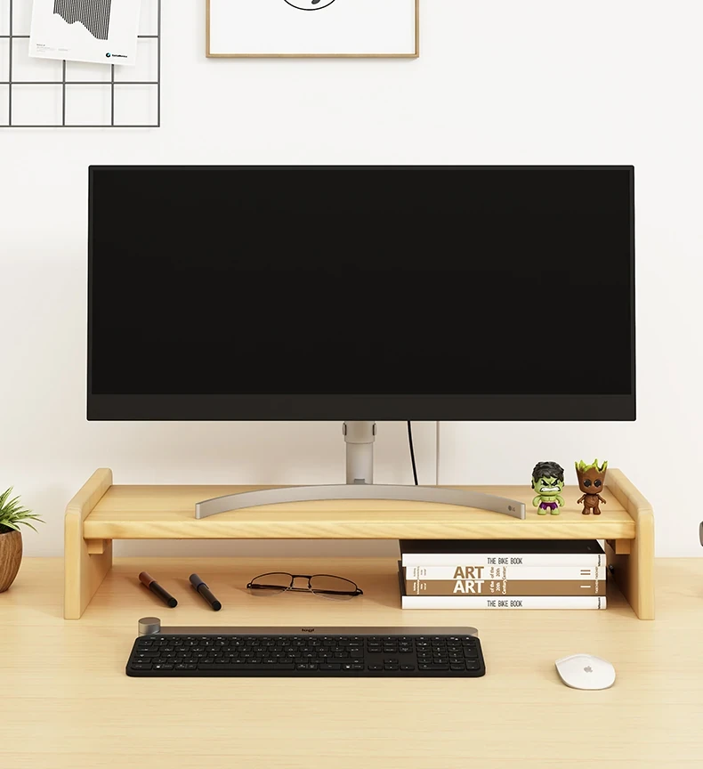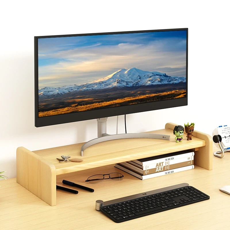 デスクトップモニター用木製スタンド - 作業スペースを整理し、快適な視界を実現!パソコン画面を高くして姿勢を改善する収納ラック。デザイン性と機能性を兼ね備えたオフィス必需品!