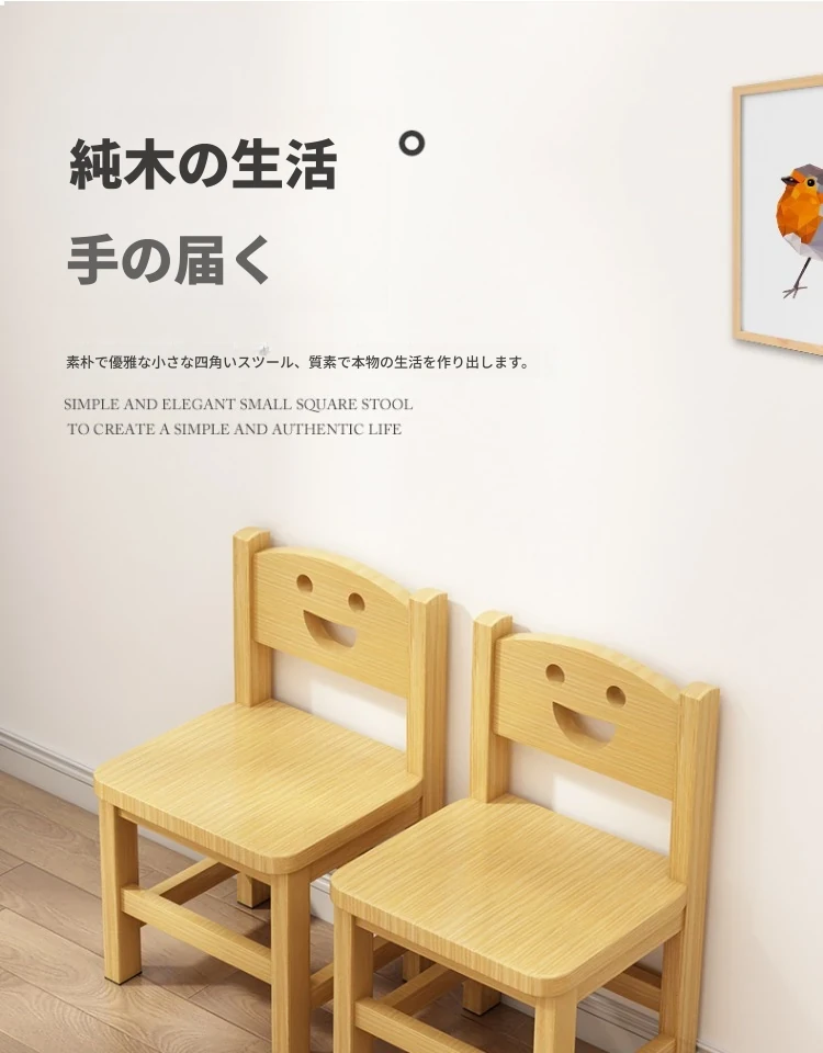 おしゃれで実用的!無垢材の小さな背もたれ付き椅子 - 家庭用、リビングにぴったりな子供用や低いスツール。快適な座り心地で、どんなインテリアにもマッチします!