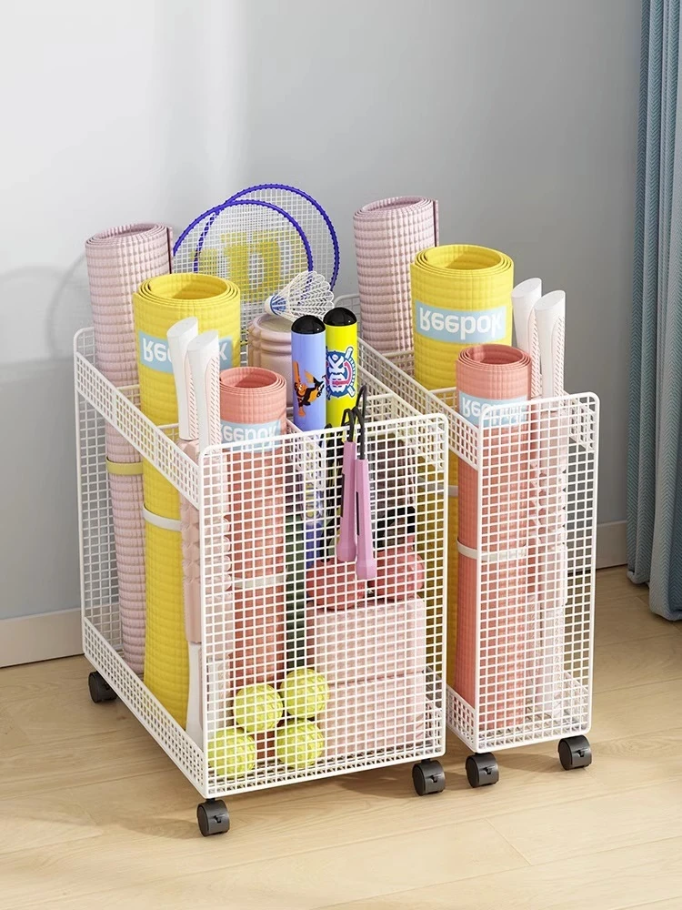 ヨガ収納バスケット 車輪付きフィットネス器具収納ラック フォームローラー用ツールバスケット 家庭用折りたたみスリム棚 すっきり整理して、快適なトレーニングスペースを実現!