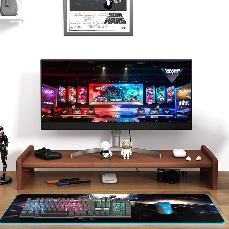 デスクトップモニター用木製スタンド - 作業スペースを整理し、快適な視界を実現!パソコン画面を高くして姿勢を改善する収納ラック。デザイン性と機能性を兼ね備えたオフィス必需品!