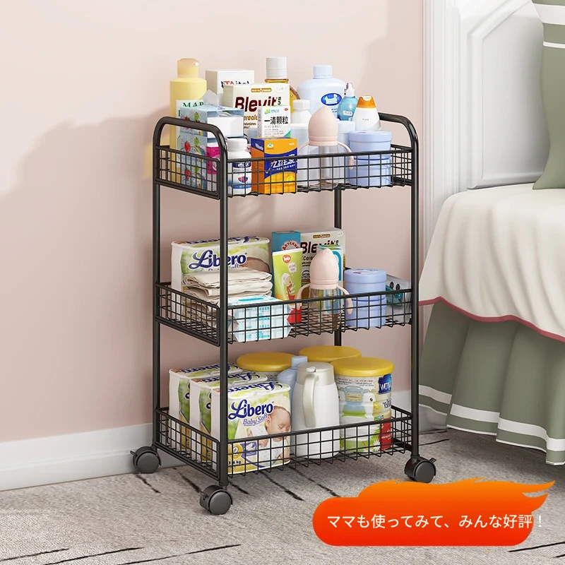 赤ちゃん用品収納棚 新生児用の小型移動式ベビーカー 多段ベッドサイドの赤ちゃんミルクやおむつ収納に便利なラック!お部屋をスッキリ整理して、育児のストレスを軽減します。