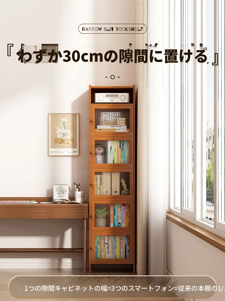 壁際コーナー立て棚 書棚 扉付き 防塵 高さのあるスリムな木製書架 収納キャビネット 一体型フロア置き棚 - スペースを有効活用し、おしゃれなインテリアを実現!