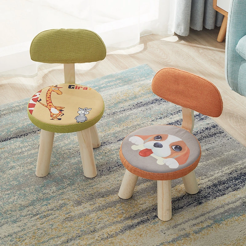 可愛くておしゃれな家用背もたれ付き小椅子!リビングにぴったりなデザインで、創造的な低いスツール。柔らかな布製クッション付きで、靴を履く時も快適!お部屋のインテリアに最適な一品です。