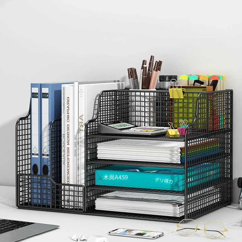 多機能オフィスデスク収納ラック | 大容量ファイルスタンド | 整理整頓に最適なデスクトップ書棚 | 使いやすさとスタイリッシュさを兼ね備えた!