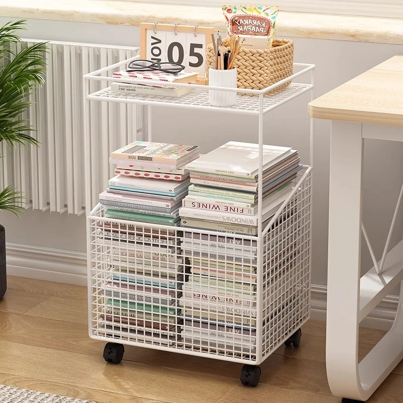 キャスター付き移動式ブックシェルフ!子供部屋のデスク下にぴったりな本収納キャビネット。リュックサックや小物も整理整頓できる、シンプルで使いやすい家庭用フロアブックケースです。